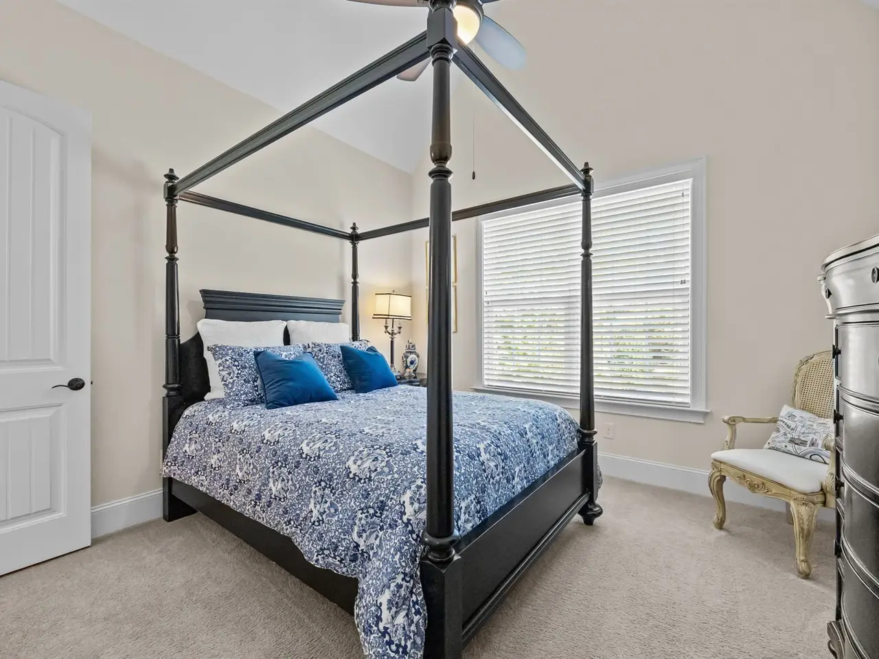 This stunning 1.5-story home lives like a ranch offering the primary suite and two additional bedrooms on the main floor. Perfectly positioned on a beautifully landscaped lot in The Hamptons at Umstead, this property combines elegance, comfort, and thoughtful design. Step into the welcoming foyer flanked by a private home office on one side and a formal dining room on the other. The dedicated office features glass French doors and a full wall of built-ins - ideal for today's work-from-home lifestyle. A tray ceiling and gorgeous millwork accentuate the dining room. The spacious family room impresses with 14-foot ceilings, a wall of windows that flood the space with natural light, and a stunning stacked-stone fireplace with gas logs. The gourmet kitchen is a chef's delight, featuring a gas cooktop, wall oven, large center island, and an expansive walk-in pantry. The primary suite is tucked privately at the rear of the home and offers a generous walk-in closet with custom shelving and direct access to the laundry room. Upstairs you'll find a fourth bedroom, full bath, and a versatile bonus/media room - plus three large unfinished storage areas kept comfortable year-round by spray foam insulation. Enjoy crisp fall evenings on the screened porch with its soaring ceiling or fire up the grill on the deck with a dedicated gas line. Both spaces overlook the fenced, flat backyard surrounded by lush landscaping.Additional highlights include a three-car garage, extensive custom millwork, a sealed crawlspace, and access to community amenities such as a clubhouse and pool. Enjoy easy access to Umstead State Park trails just steps away from your front door. This one is truly a charmer - don't miss it!