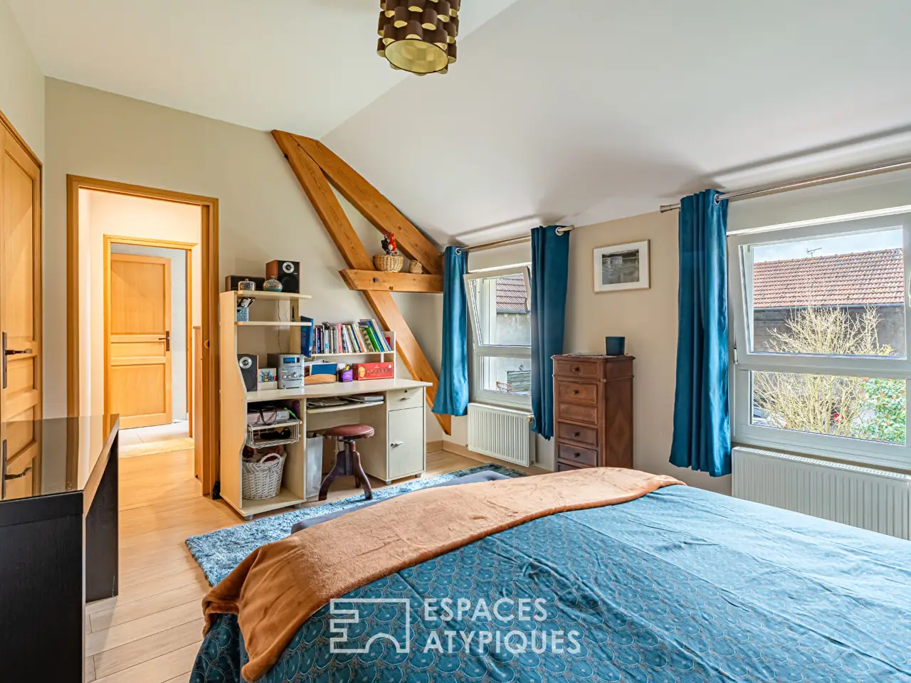 Just steps from the lively town center of Rambouillet and in the immediate vicinity of the train station, this superb renovated farmhouse with 320 sqm of living space offers a unique living environment, combining old-world charm, spacious spaces, and easy access to amenities. This atypical complex consists of a spacious 150 sqm main house, a functional 90 sqm office space, and two 45 sqm apartments, offering numerous layout possibilities. Its U-shaped layout creates an intimate and friendly atmosphere, ideal for a large family or a home-based professional. From the entrance, the main house seduces with its vast living room, enhanced by a distinctive staircase and bathed in light thanks to large openings. The fully equipped kitchen opens onto a verdant terrace, perfect for relaxing outdoors. On this level, a first master suite, a laundry room, and a separate toilet complete the amenities. Upstairs, a second master suite with a shower room and dressing room is accompanied by three spacious bedrooms, a bathroom with a whirlpool bath and shower, a separate toilet, and a beautiful space with exposed beams offering various layout possibilities. The top level houses an office space as well as a beautiful attic space that can be converted. Located in the courtyard, the independent offices offer a pleasant working environment and constitute a real blank slate in terms of layout. As for the two carefully designed one-bedroom apartments, they guarantee comfort and autonomy to their occupants. An 83sqm barn and a 50sqm hangar complete this unique property. The prime location of this property allows easy access to transport and shops, thus facilitating daily life. Estimated average annual energy costs for standard use, established using energy prices for the years 2021, 2022, 2023: between EUR3,570 and EUR4,930. Additional information * 12 rooms * 9 bedrooms *1 bathroom * 5 shower rooms * Outdoor space : 858 SQM * Property tax : 4 000 €