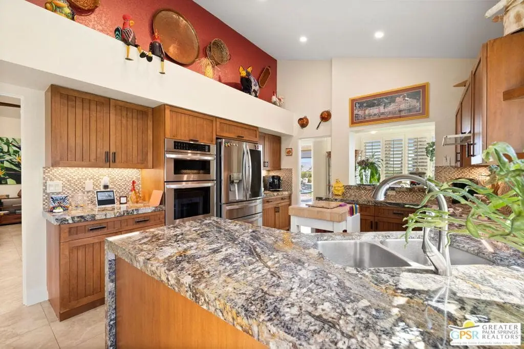 ANOTHER Price improvement ~ So far down $300,000. by this Seller who has purchased another property. Coveted and secluded ~ Gated Mirage Cove, where privacy abounds. Only 69 homes terraced on the hillside with 360-degree mountain views and city lights. This home offers three bedrooms, including two ensuite primary suites, plus three recently upgraded baths (Two En~Suite and 1 bath with walk-in shower. Approximately 2,750 square feet (per assessor). Private driveway to attached oversized two-car two garage Plus with two additional parking spaces. Gated, free on-site RV parking lot ~ Leaded glass double-door entry. Neutral ceramic tile flooring. Bathrooms with travertine flooring. Ensuite bedrooms feature newer carpet. All NEWER energy-efficient windows and glass doors recently replaced. The spacious kitchen has granite counters, custom cabinetry, and newer stainless appliances. Large living room with adjoining semi-formal dining area. Separate Family/Media room. Oversized .40-acre site with saline swimming pool and spa. Property has been updated over the last 1.5 years, addressing nearly all surfaces including quartz counters, cabinetry, windows, sliding doors with screens, HVAC and attic ducting, and roof servicing. Some furnishings available. Mirage Cove community offers an almost Olympic-size pool, spa, tennis courts, and pickleball courts. This gated hillside neighborhood consists of just 69 homes ranging from 2,200 to over 3,000 square feet on terraced, pool-size lots with mountain views. Homes are typically priced from $1,100,000 to $2,100,000.