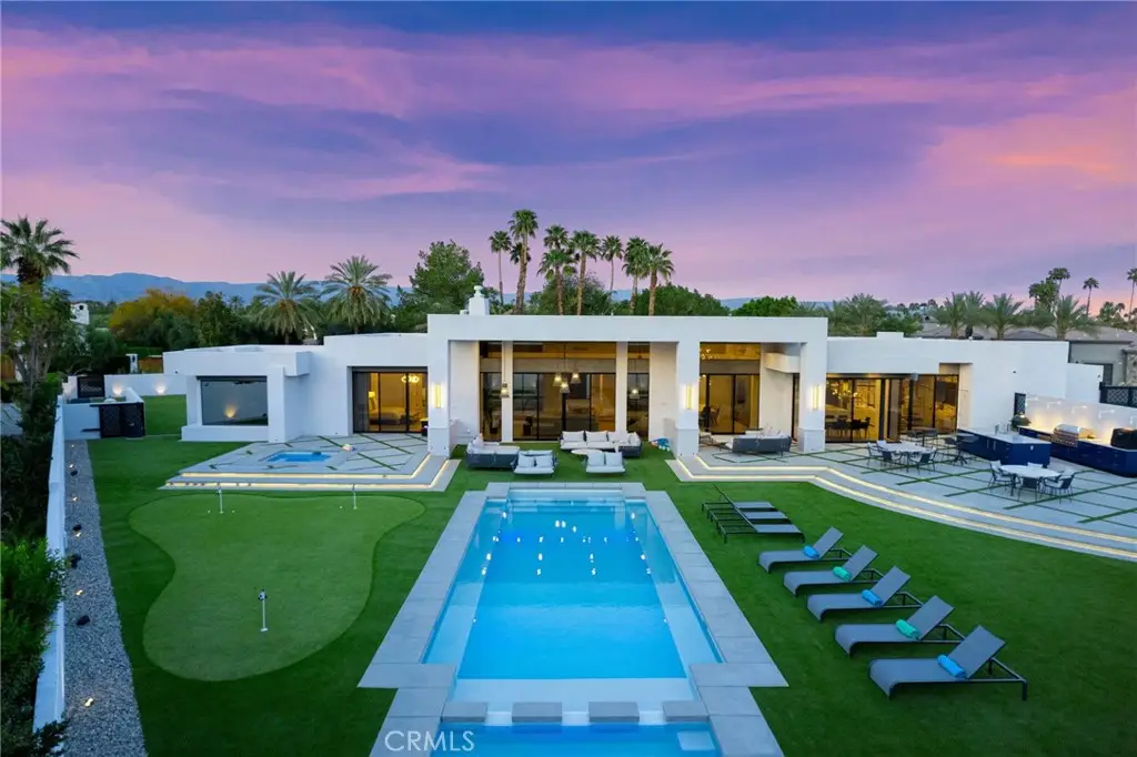Modern Luxury in Prestigious Clancy Lane Estates Step into the epitome of refined living in this exquisite FULLY FURNISHED estate located within the coveted Clancy Lane Estates of Rancho Mirage. A harmonious blend of modern luxury and contemporary design, this stunning home offers a seamless indoor-outdoor lifestyle, curated for the most discerning buyer. As you enter, you're welcomed by an expansive open-concept living space, adorned with sophisticated finishes and designer touches throughout. At the heart of the home lies a custom-crafted gourmet kitchen, a true haven for culinary enthusiasts. Featuring a Lacanche oven, custom range hood, Wolf and Sub-Zero appliances, bespoke cabinetry, and an oversized island, this space is as functional as it is beautiful. Adjacent to the kitchen, a stylish den offers the perfect setting for intimate gatherings, while the formal dining room, complete with a built-in bar, flows effortlessly into a grand living room highlighted by a dramatic floor-to-ceiling marble fireplace and a suspended lounger designed for ultimate relaxation. Smart home living is at your fingertips with a state-of-the-art Control4 automation system managing lighting, audio/visual, climate, shades, and security. Additional features include surround sound, a new roof, OWNED SOLAR PANELS, and a Tesla Powerwall for energy efficiency. Walls of floor-to-ceiling glass create a seamless transition to the outdoors, revealing a resort-inspired backyard oasis. Enjoy al fresco dining and entertaining with a custom BBQ and pizza oven center, an ozone-treated pool and spa, and a separate 12-person spa, all framed by breathtaking mountain views. The primary suite is a sanctuary unto itself, featuring spa-like amenities including a custom teak shower, infrared sauna, Bauformat walk-in closet, and a Japanese smart toilet. Outdoor amenities abound, including a private pickleball court, putting green, and a fully turfed yard for year-round greenery. Completing the estate is a climate-controlled 3-car garage equipped with ample storage and a beverage refrigerator. Truly a desert dream home, where luxury meets innovation in one of Rancho Mirage's most prestigious enclaves.