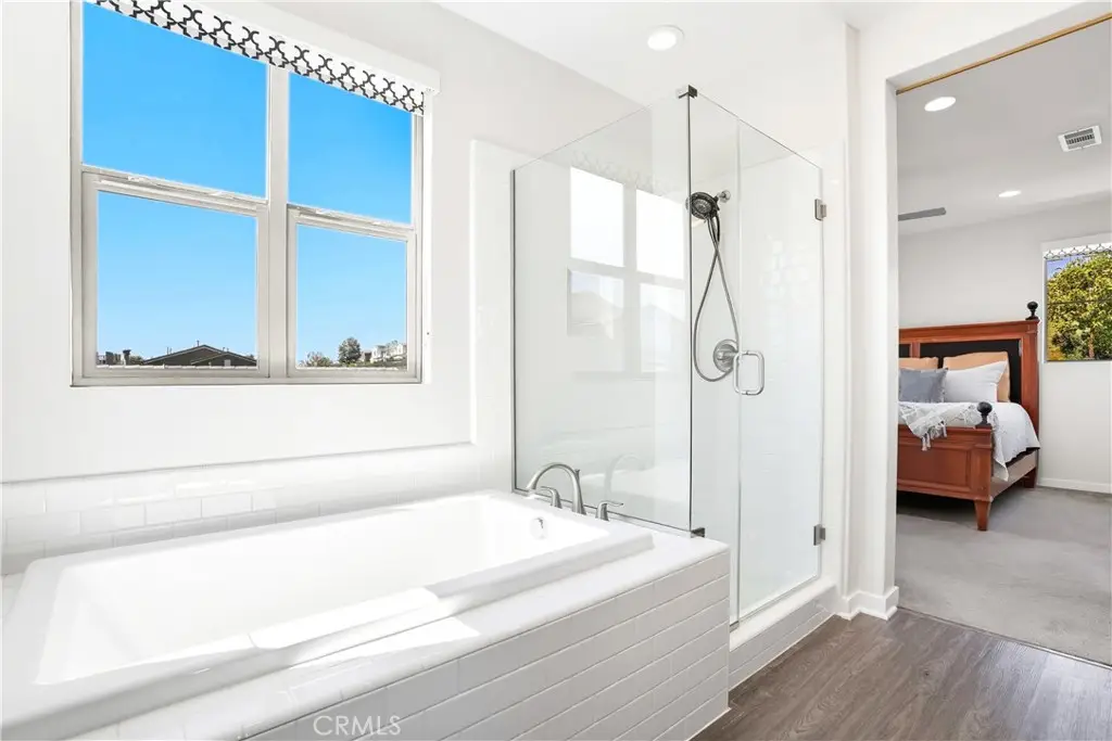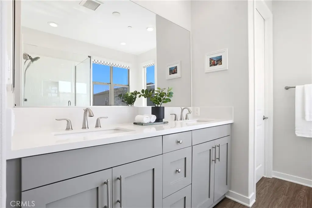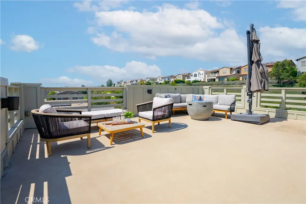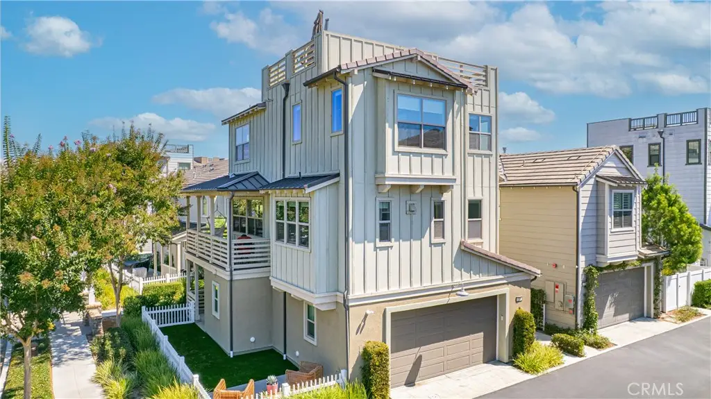 Nestled within the highly sought-after Trellis neighborhood of Esencia, this beautifully upgraded home showcases the community's largest floor plan, offering three spacious bedrooms plus a versatile office that can easily be converted into a fourth bedroom. Trellis is celebrated for its charming collection of modern farmhouses, perfectly capturing the essence of contemporary South Orange County living. From the moment you arrive, you're welcomed by a picturesque white picket fence, lush landscaping, and a generous wraparound front porch that sets the tone for the warmth and style found inside. The first level features a thoughtfully designed guest bedroom and a full bathroom, creating an ideal space for visitors or multi-generational living. Upstairs, the expansive second floor embraces an open-concept great room design, where the kitchen, dining, and family room flow seamlessly together. The kitchen has been modernly appointed with quartz countertops, gray cabinetry, stainless steel appliances, a designer backsplash, and durable faux-wood flooring. A custom shiplap wall and Restoration Hardware ceiling fan add stylish character, while the wraparound balcony extends the living space outdoors, providing the perfect setting for entertaining or enjoying the coastal breeze. The primary suite offers a peaceful retreat with a spacious walk-in closet and a luxurious en-suite bathroom featuring dual sinks, a romantic soaking tub, and a walk-in shower. An additional secondary bedroom and bathroom, along with a convenient laundry area, complete this level. The crown jewel of the home is the expansive rooftop deck, an entertainer's dream with plenty of room for gatherings, relaxation, and taking in breathtaking panoramic views. Blending modern upgrades with timeless farmhouse charm, this residence is a rare opportunity to own one of Trellis' most desirable homes. Exclusive to Rancho Mission Viejo residents are all amenities in the Villages of Sendero, Esencia, Rienda and future Villages. There are community amenities for all from breath-taking resort-style pools and spas, Esencia school K-8, community farms, fitness centers, guest house, putting green, bocce ball courts, tennis and pickle ball courts, playgrounds, coffee shop, fire pits, an arcade and so much more!