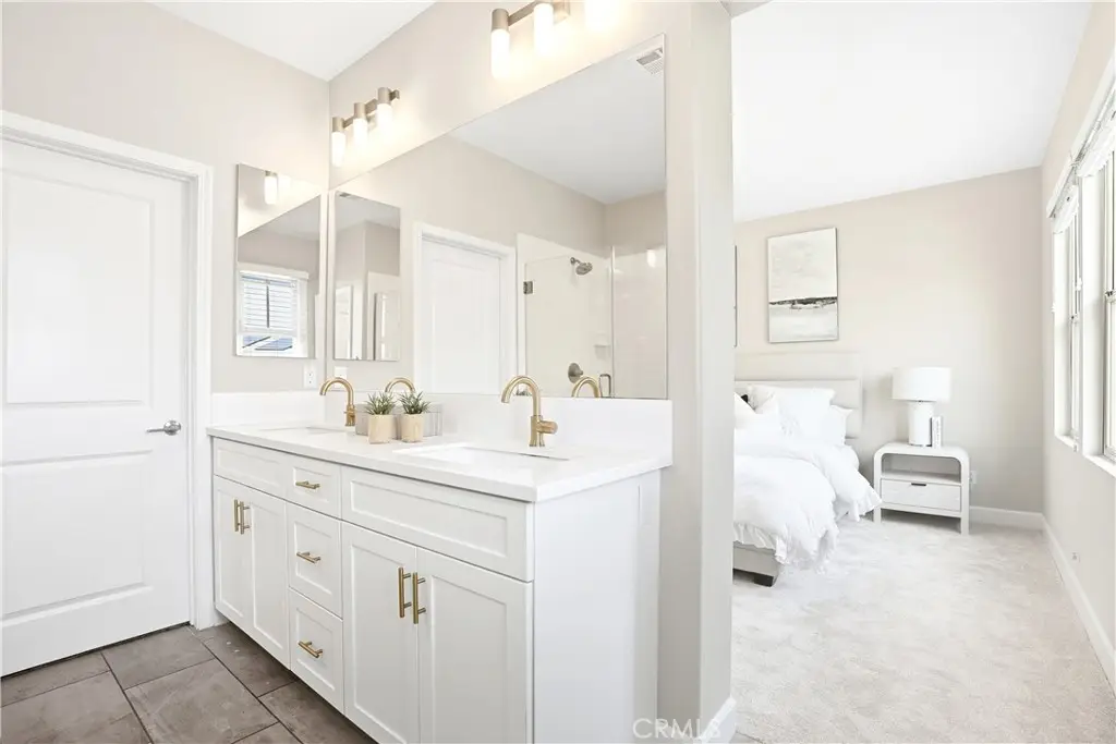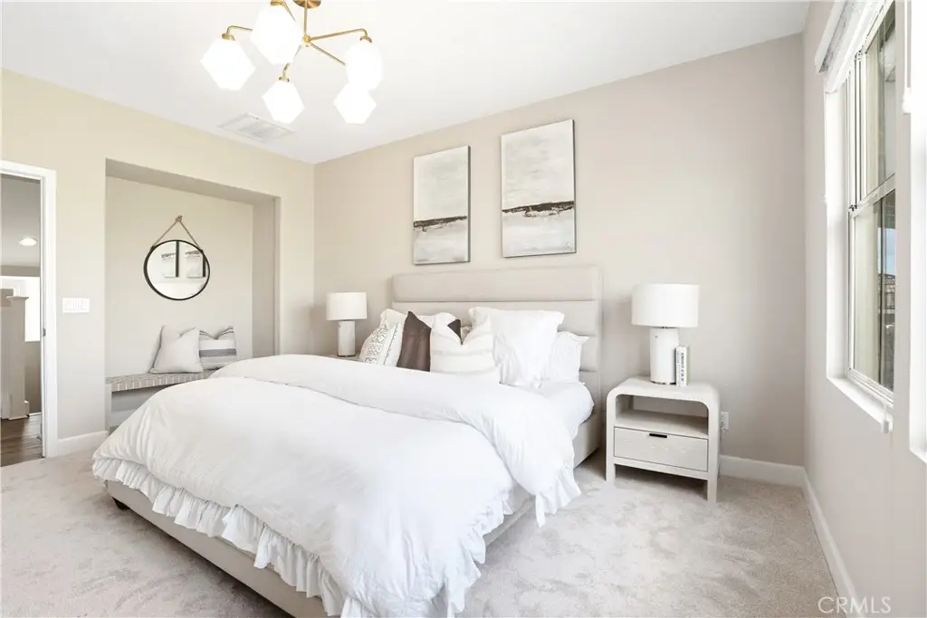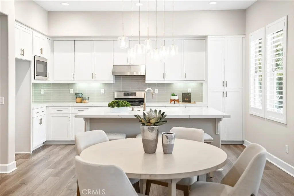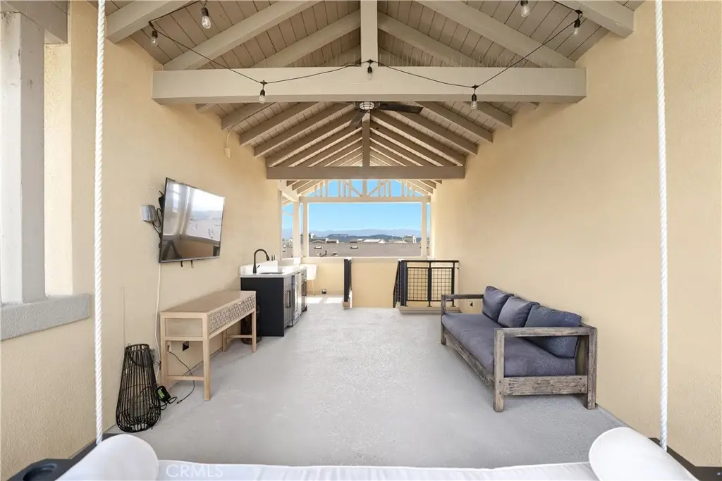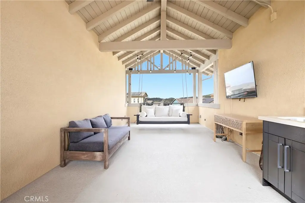Offered by the original owner, this beautifully upgraded home blends modern design with luxury finishes throughout. From the moment you arrive, you'll be captivated by the spacious front yard, and oversized covered patio--complete with built-in seating and a cozy firepit, perfect for entertaining or enjoying a quiet evening outdoors. Step inside to discover an open-concept layout featuring elegant vinyl plank flooring, fresh interior paint, plush new carpet, recessed lighting, and upgraded baseboards. The bright and airy living room flows effortlessly into a dining area and a chef-inspired kitchen equipped with stainless steel Energy Star appliances, a gas range with hood and griddle, a self-cleaning convection oven, modern tile backsplash, gorgeous quartz countertops, and a large center island with farmhouse sink and breakfast bar. Upstairs, the luxurious primary suite offers a true retreat with a spacious walk-in closet, beautifully upgraded ensuite bathroom with tiled shower and floor, quartz countertops and dual vanities. Two additional bedrooms, a full guest bathroom with dual sinks, and an upper-level laundry room with added cabinetry provide plenty of space and convenience for daily living. The third-level covered rooftop deck boasts panoramic mountain views and is ideal for BBQs, al fresco dining--with a built-in sink, refrigerator, and counter space--or simply lounging with a built-in TV setup. Additional home features include touchless keypad entry, custom window coverings including wood shutters and blinds, double pane windows, upgraded light fixtures, downstairs framed mirror, modern hardware, direct access 2-car garage with overhead storage and ball rack, and Energy Star features integrated throughout the home. You will also have access to award-winning amenities such as baseball fields, playgrounds, a sports park, the Canyon House, Blue Hummingbird Coffeehouse, The Pond, Lagoon and Lake, Camp Out facility, resort-style pools, the farms, an arcade, state-of-the-art workout gyms, dog park, a zipline, splash pads, biking trails, NEV roads, and tennis and pickleball courts (to name a few). Additionally, it is just 15 minutes from the beach and conveniently located near the 241 freeway.