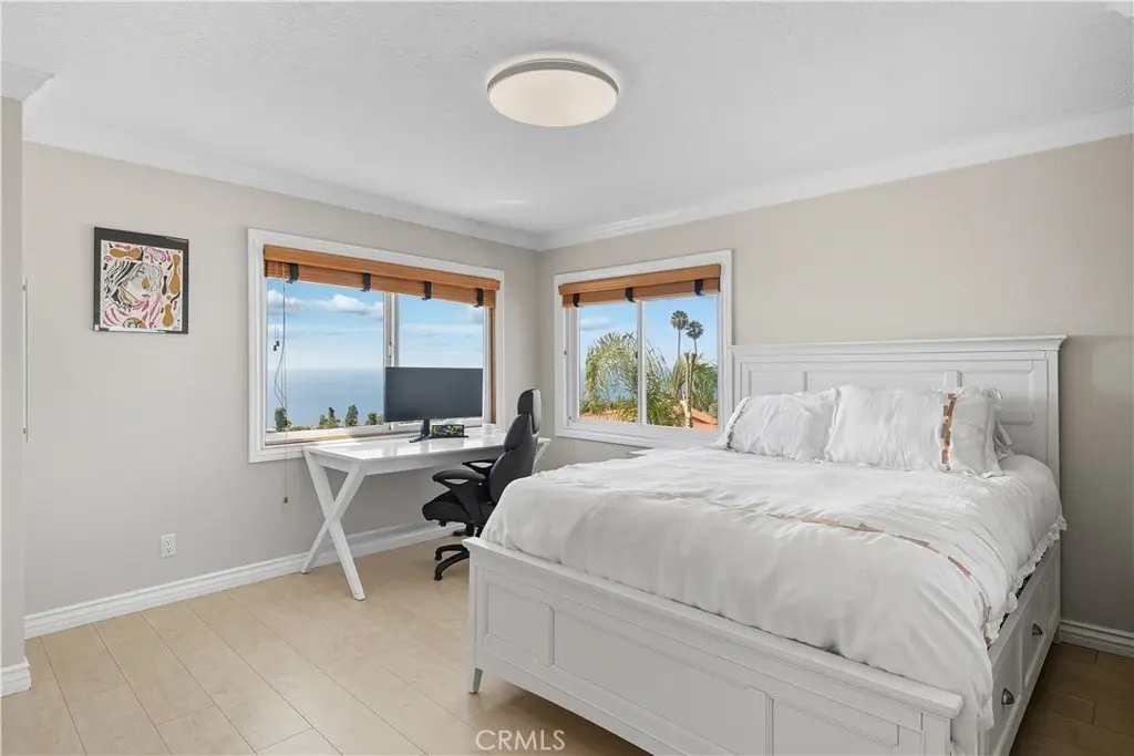 Sweeping Ocean and Sunset Views from Malibu to Catalina Perched high in the beautiful Monaco area of Rancho Palos Verdes, this home showcases panoramic ocean views from nearly every room and captures a different sunset every evening. Offering 4 bedrooms plus a den (optional 5th bedroom), 4 bathrooms, and 4,192 sq. ft. of living space on a 16,889 sq. ft. lot, this residence blends elegance with comfort. The main level features a spacious living room with balcony, formal dining room, family room with fireplace, den, and a gourmet kitchen with center island and breakfast nook. A marble staircase with custom wrought-iron rails leads to the upper levels. The mid-level includes a private suite, while the top level offers three additional bedrooms, including the primary suite with a luxurious bath and sitting area to enjoy the breathtaking vistas. Spacious 3-car garage and a versatile bonus room—ideal for storage, a gym, or recreation. Great potential and priced to sell!