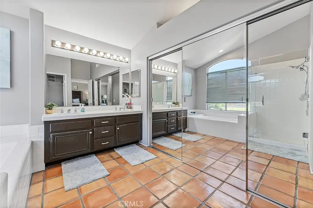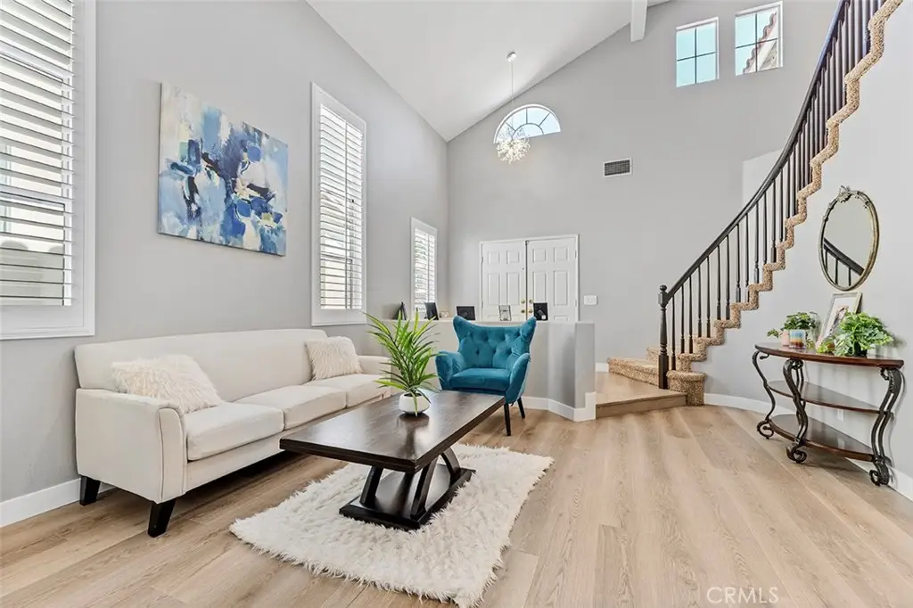 Welcome to your new home in Melinda Heights. This home is in a beautiful quiet neighborhood complete with rolling hills, parks, community pools, tennis and basketball courts, baseball and soccer fields, the beach club and lagoon and a slew of walking trails. This 4 bedroom home has a bedroom/office and full bathroom downstairs, 2 large bedrooms and a primary suite upstairs. Both the primary and hallway bathrooms have dual vanity sinks, primary bath has a separate tub and shower. The hallway bathroom has a tub/shower combo. The home features stunning cathedral ceilings and an estate winding staircase as you enter the home. The home has newer plantation shutter, beautiful tile floors in the kitchen, newer carpet on the stairs, upstairs bedrooms and family room. Laminate wood in downstairs hall, laundry and downstairs bedroom. The kitchen has an eat in area and is open to the family room complete with a fireplace. The family room leads to the backyard where there is a sparkling, river rock, 15 foot long pool and spa, perfect for evenings under the stars. There is a separate laundry room, and a 3 car garage. The home is close to coveted schools, gorgeous parks, a club house, amazing restaurants, shopping, movie theaters and freeways both toll and the 5 and 405. This home has it all!