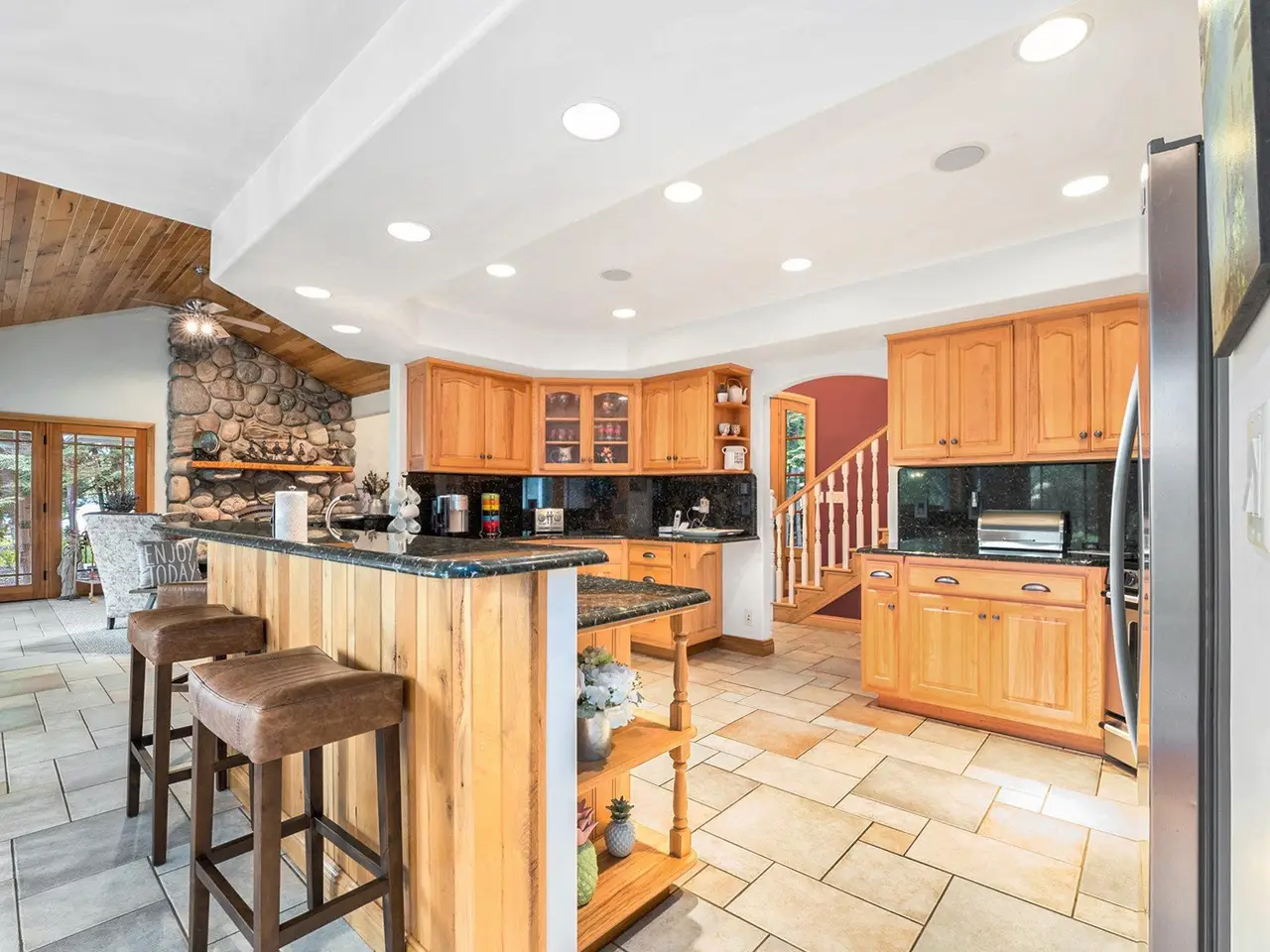 - Natural stone fireplace