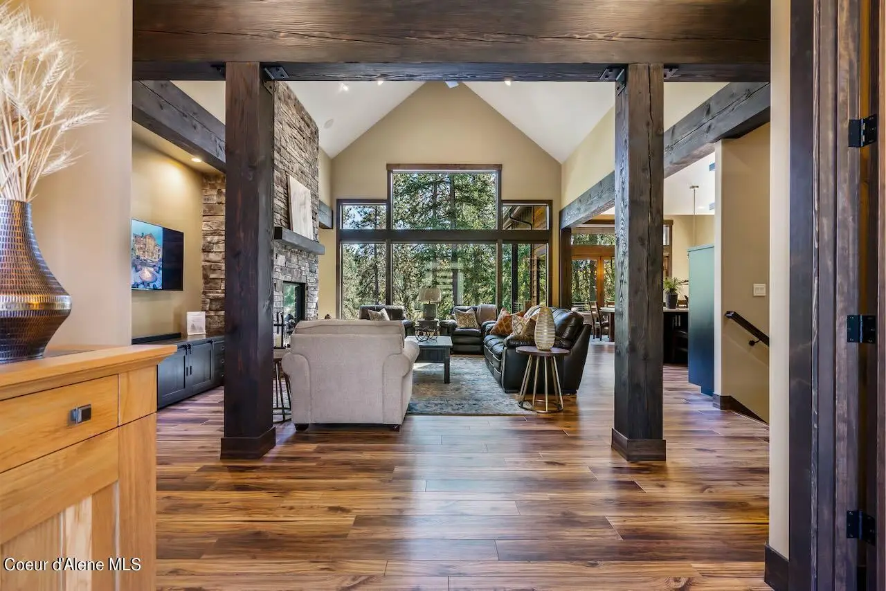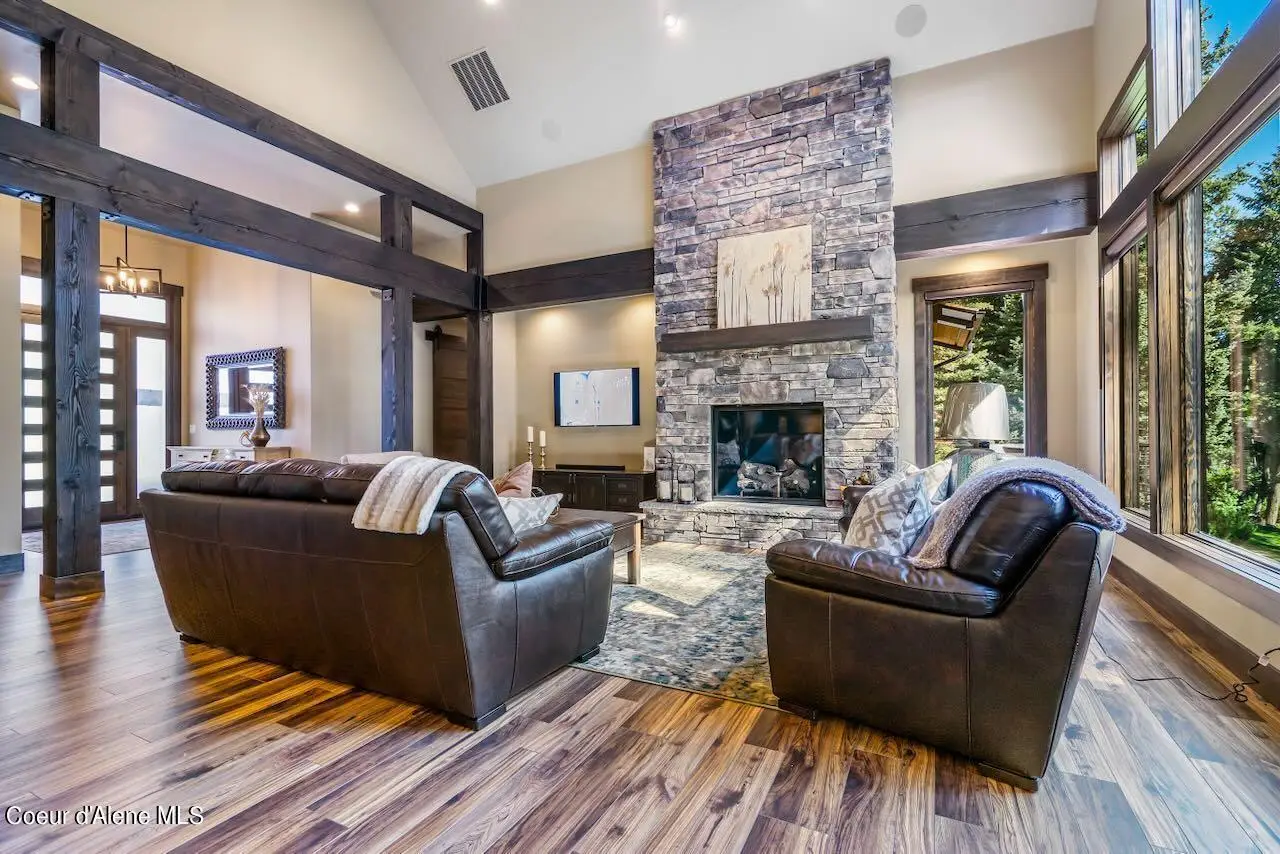 Welcome to Bennett Estates! Designed for entertaining, the ''The Lakeview Ridge'' is a Modern style home with rustic elements, built by award winning builder, this spacious home is 4 Bed + 3 1/2 Bath 3535 SQ FT of LUXURY on 4.78 acres! Featuring main level living, open concept w/split bedroom design, 2 ensuite bedrooms on main level and two bedrooms upstairs with family room, loft & full bath. Special features include: double layer cedar facia, beam & shingle accents, masonry exterior finishes, covered front entry, solid core wood entry door, large kitchen, T-shaped island for additional seating, quartz countertops with full tile backsplash, walk-in pantry, professional style stainless appliances, large dining area, den, powder room, floor to ceiling masonry gas fireplace, hardwood floors with tile accents, spacious owners bath w/ mud set tile shower & soaking tub, solid core doors, large laundry plus separate mud room, covered patio, paved driveway, landscaping, sprinklers and much more! Additional floorplans and lots available with different pricing. Bennett Estates offers 5 acre forested parcels with high speed fiber optic, your own great producing private well, Avista natural gas & electricity, paved public maintained road, in convenient Rathdrum location south of Hwy 53.