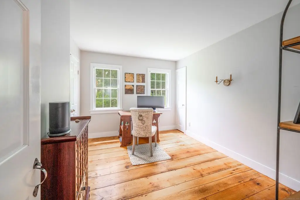 This charming 1870 antique home is pure perfection conveniently located in West Redding. The secluded 3+ acre property with rolling landscape and exquisite perennial gardens with old stone walls is a true gem with beautiful period home features, wide-planked floors and 5 working fireplaces. The master suite with fireplace and full bath is conveniently located on the main floor with private access to the patio, with second bedroom or office en-suite. Charming Eat-in Kitchen features Granite Counters and adjacent dining room with wood stove. The Sunny Living Room has its own fireplace with beautiful wide-Board floors. A Family room with an electric stove and an additional full bath is located on the Main floor. Upstairs features 2 more bedrooms, 1 full bath and an office that has built-ins and hardwood floors. The rear patio offers stunning sunset views in a very private setting. The Green House is an added perk for gardeners or, with running water and electricity, can be easily converted to an outdoor spa. The above ground propane tank for gas stove, grill and whole house generator is located in the back yard. Three zoned nest system is included and the basement heat can be managed from the main floor. Great location with easy access to the metro train station, Rt 7, Merritt Parkway and I 84. Only 1 hour from NYC and conveniently minutes from Main street with many fine restaurants, pubs, shops, markets and minutes from public schools and Library.