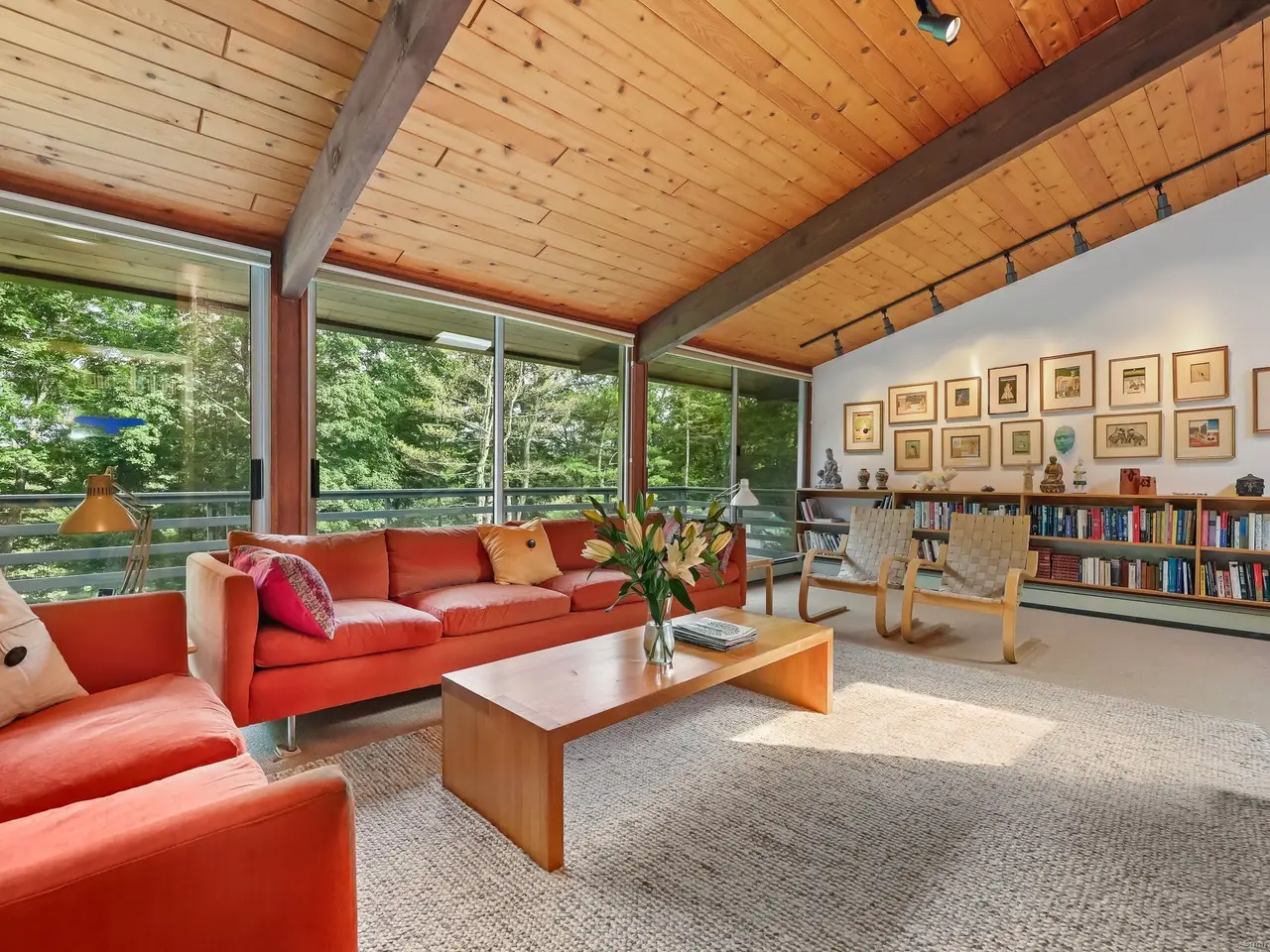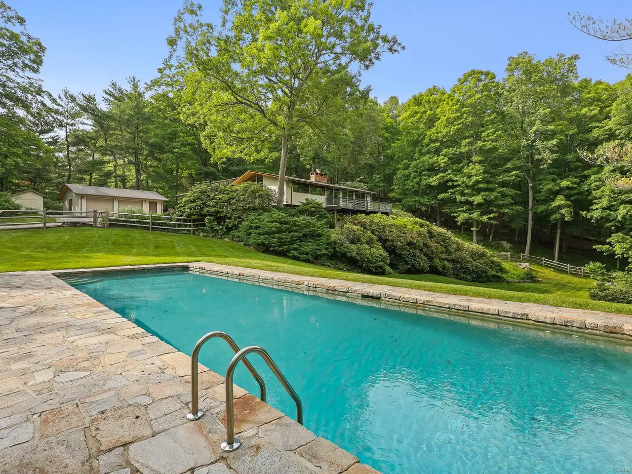 Never before on the market! A true once-in-a lifetime opportunity to own an architectural gem! This custom mid-century deck house, built and lovingly maintained by its original owners, has been thoughtfully expanded and updated over the years to meet the evolving needs of modern living-all while preserving its timeless design. Flooded withnatural light and offering unmatched privacy, this home is perfectly sited on a stunning 2.48 -acre parcel. Mature trees, lush rhododendrons and sweeping views of surrounding open space create an idyllic retreat just 6 minutes from Georgetown Center, Carluccio's market and the Redding Metro North train station. Key Features include: **A 15x50 Gunite heated lap pool with bluestone patio and outdoor lighting, **A separate 160SF pool cabana with bath and its own dedicated septic system, **A 600SF Heated and Cooled Artist/Yoga studio- Featuring Vaulted ceilings, skylights, beams, and designer lighting. **A 720SF Detached Two-Car Garage with additional storage and attached workshop/potting room, ** two large wooden framed detached sheds for wood and tool storage, **Multiple outdoor entertaining areas including a partially covered, expansive and elevated wrap-around-deck overlooking the stunning grounds and pool area. With nature views from every room and abutting acres of preserved open space, this property offers peace, inspiration and the rare chance to own a truly iconic and magical piece of West Redding history! This is your needle in a haystack The one you've been waiting for. Do not miss!!