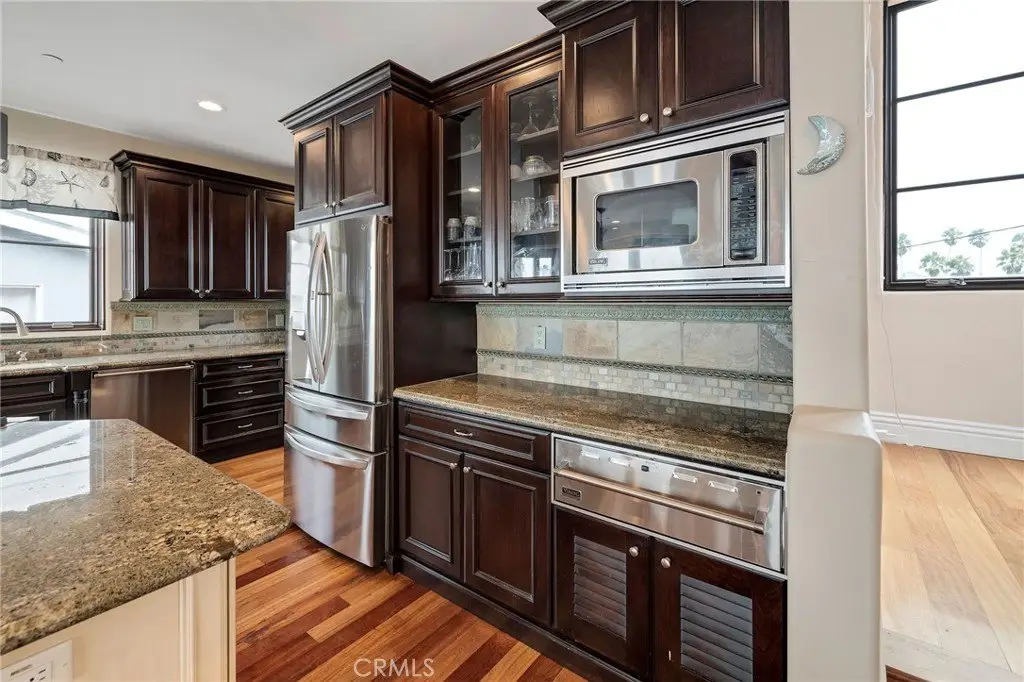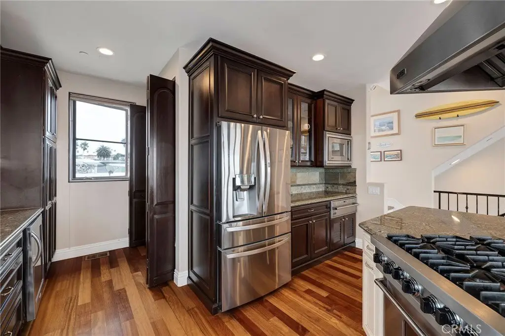Set along the Esplanade, the ultimate address in Redondo Beach, this exceptional home combines the serenity of ocean views from the living space with the vibrancy of Riviera Village just moments away. A thoughtfully designed layout balances sophistication and privacy, beginning at the entry where the two car garage connects directly to the home along with a bedroom and full bath that can serve as a guest suite, home office, or private retreat. Continuing upstairs, the second level offers another bedroom with high ceilings, its own full bath, and a walk-in closet. The hallway leads to your expansive primary suite. Facing west, this tranquil sanctuary captures the sound of the ocean and features three closets including a walk-in. The ensuite bath is spa-inspired, finished in neutral stone with dual vanities, a soaking tub, and a separate shower. On the top floor, the main living area is highlighted by beautiful ocean views and natural lighting through large windows, with an open concept design that seamlessly connects the living and dining rooms to a chef’s kitchen, complete with a center island and bar seating. Granite countertops, Viking stainless steel appliances, abundant custom cabinetry, and a wine fridge are ideal for preparing meals, entertaining guests, or simply enjoying the good life at the coast. The dining area opens to a wraparound balcony bringing in ocean breezes, more views, and extending the indoor-outdoor flow. Crowning the residence is your spacious rooftop deck with true 360-degree vistas, the Pacific and coastline to the west, Palos Verdes hills to the south, the Redondo Pier to the north, and palm trees peppered with lights when looking into town. From morning coffee to sunset gatherings and nights under the stars, this is a setting that elevates every occasion. Beyond the home, the lifestyle is equally compelling. Step outside to the sand across the street, or head a couple of blocks to Riviera Village with its charming boutiques, sidewalk cafés, and vibrant dining scene. Enjoy the ocean air, take a yoga class on Catalina Avenue, ride your bike along the path, pick up groceries at Trader Joe’s or the Farmers Market, and meet friends at local eateries, all within minutes of your front door. Situated in the award-winning Redondo Beach Unified School District, this prestigious home combines coastal surroundings with refined living in a close-knit community.