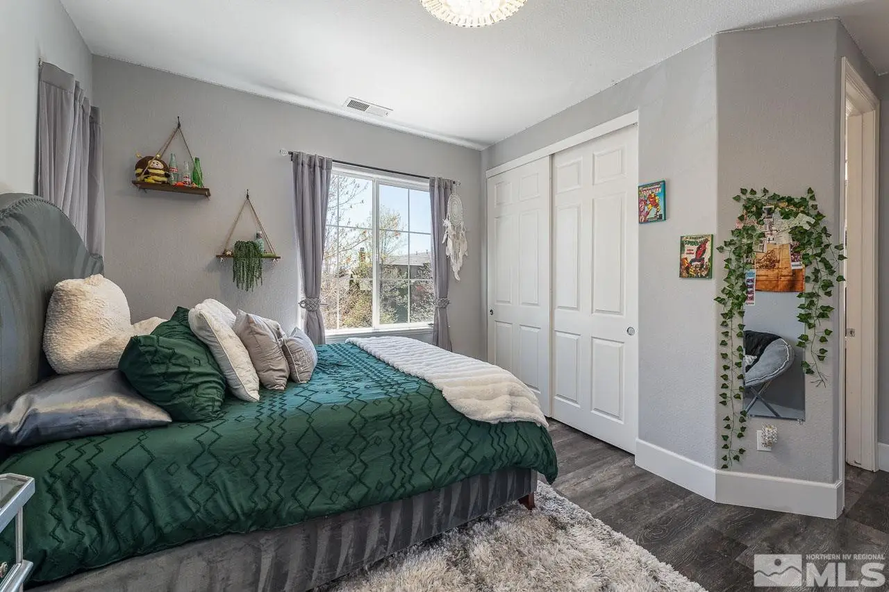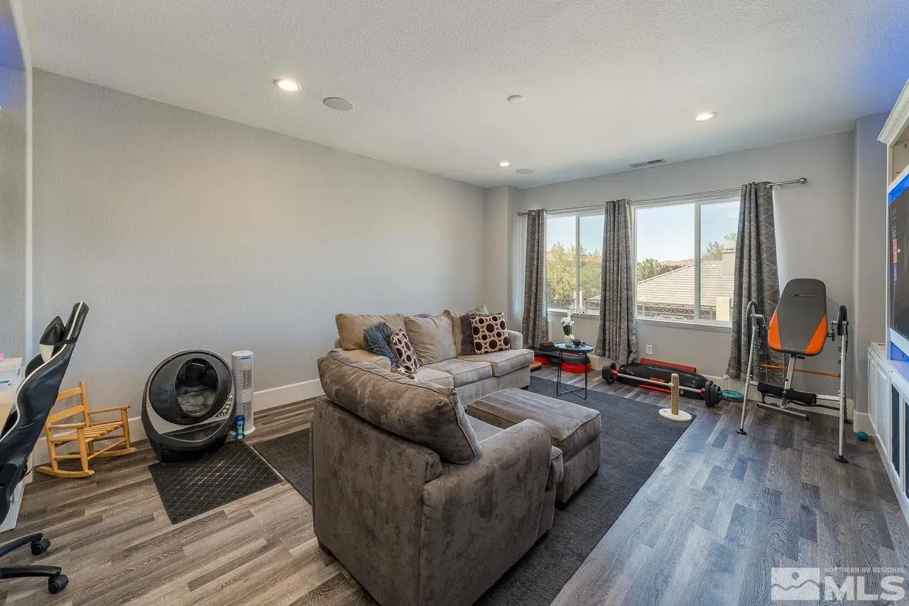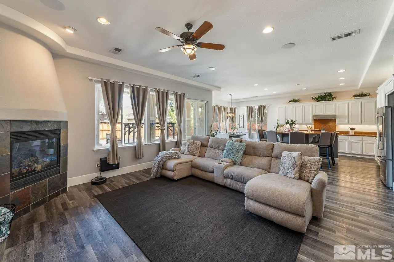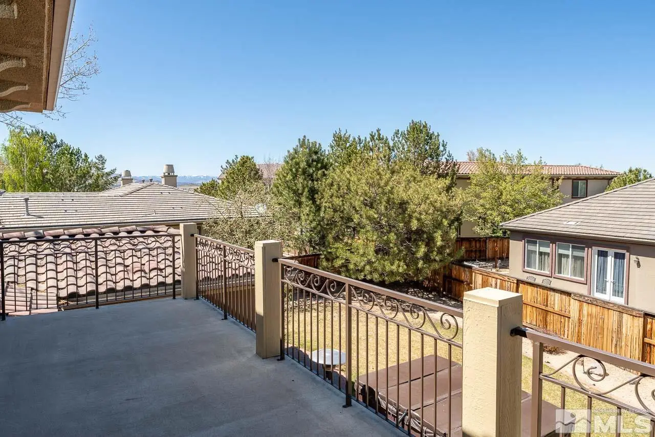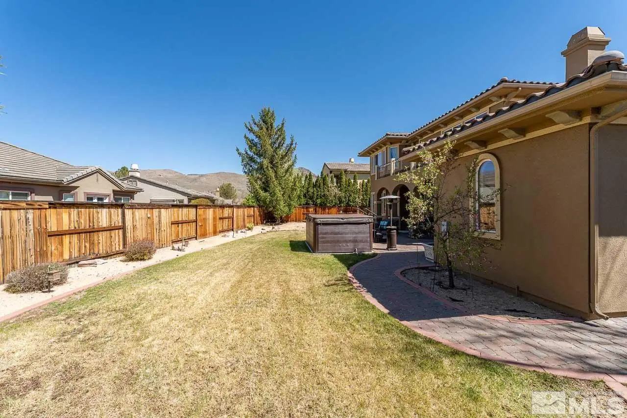 The entry foyer has all the WOW factor leading to this Elegantly designed 4 bed/4 bath home in the gated Damonte Ranch! A must see state-of-the-art entertainment system! One bedroom conveniently located downstairs, also suitable for an office/Den. Iron spindle staircase paves the way to the Primary Suite. The additional 2 bedrooms are mini-suites with their own bathrooms. The colossal bonus room is ideal for a playroom/gym. The LVP floor has a modern grey accent and the granite slab kitchen island is impressive!