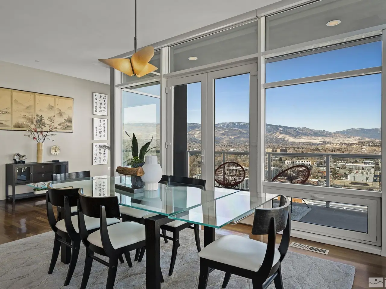 Experience the pinnacle of luxury living in this exquisite penthouse unit, where sophistication and comfort blend seamlessly against the backdrop of breathtaking panoramic vistas. This home is an ideal sanctuary for the discerning buyer within its generous 3300 sq.ft with a focus on open, airy spaces and an abundance of natural light streaming through floor-to-ceiling windows with stunning river and mountain views. The chef's kitchen is a culinary masterpiece, equipped with high-end GE profile appliances and ample room for entertaining. Enjoy effortless living with automated window coverings and spacious walk-in closets in every room. The primary suite invites relaxation with a jetted tub, creating a serene retreat from the bustling world below. Residents are welcomed into a Zen-inspired lobby that exudes tranquility, staffed with attentive 24-hour desk attendants ensuring your comfort and security. Outside, the pool terrace rivals any resort, featuring two hot tubs, five gas grills, a spacious lap pool, and a clubhouse perfect for hosting memorable events. Fitness enthusiasts will appreciate the expansive 24/7 gym, the largest among the city's high-rises. Additional conveniences include bike storage, 2 personal storage units (one just down the hall), and 4 secured parking spaces right by the elevator on the first level. This urban sanctuary offers a variety of communal spaces, including an owner's lounge, library, and a garden deck where you can enjoy the downtown views and festive fireworks displays. The Montage's prime location places you just blocks away from cultural hotspots, the Truckee Riverwalk, and Reno's vibrant Midtown district, with its eclectic mix of dining, shopping, and entertainment. Experience a lifestyle of luxury and convenience at The Montage—where your new home awaits amidst the energy and excitement of downtown Reno. (photos of pool area are original, but similar features will be on the new deck.)