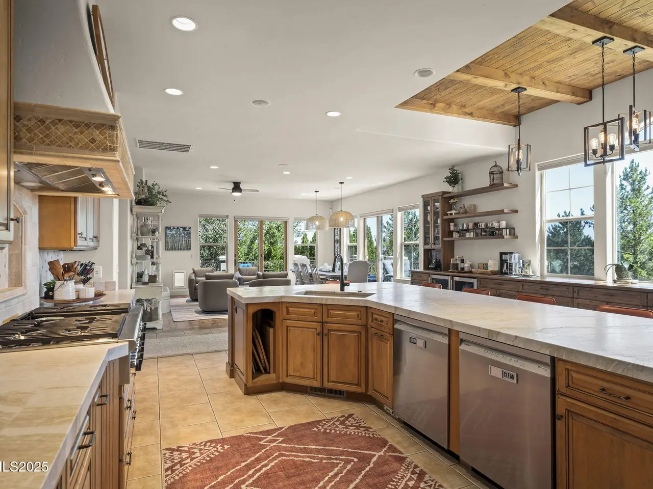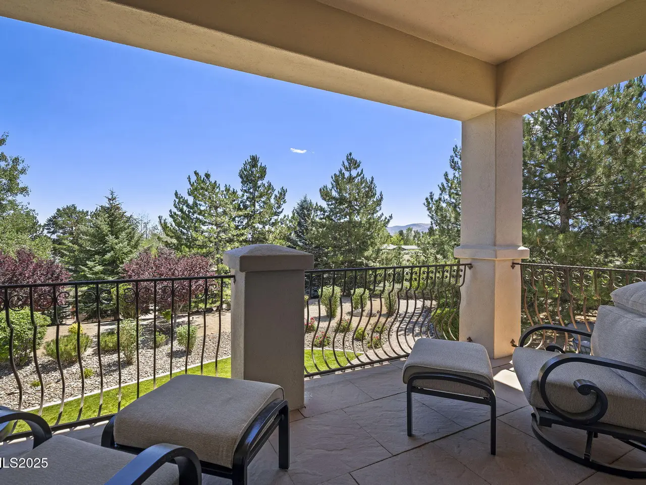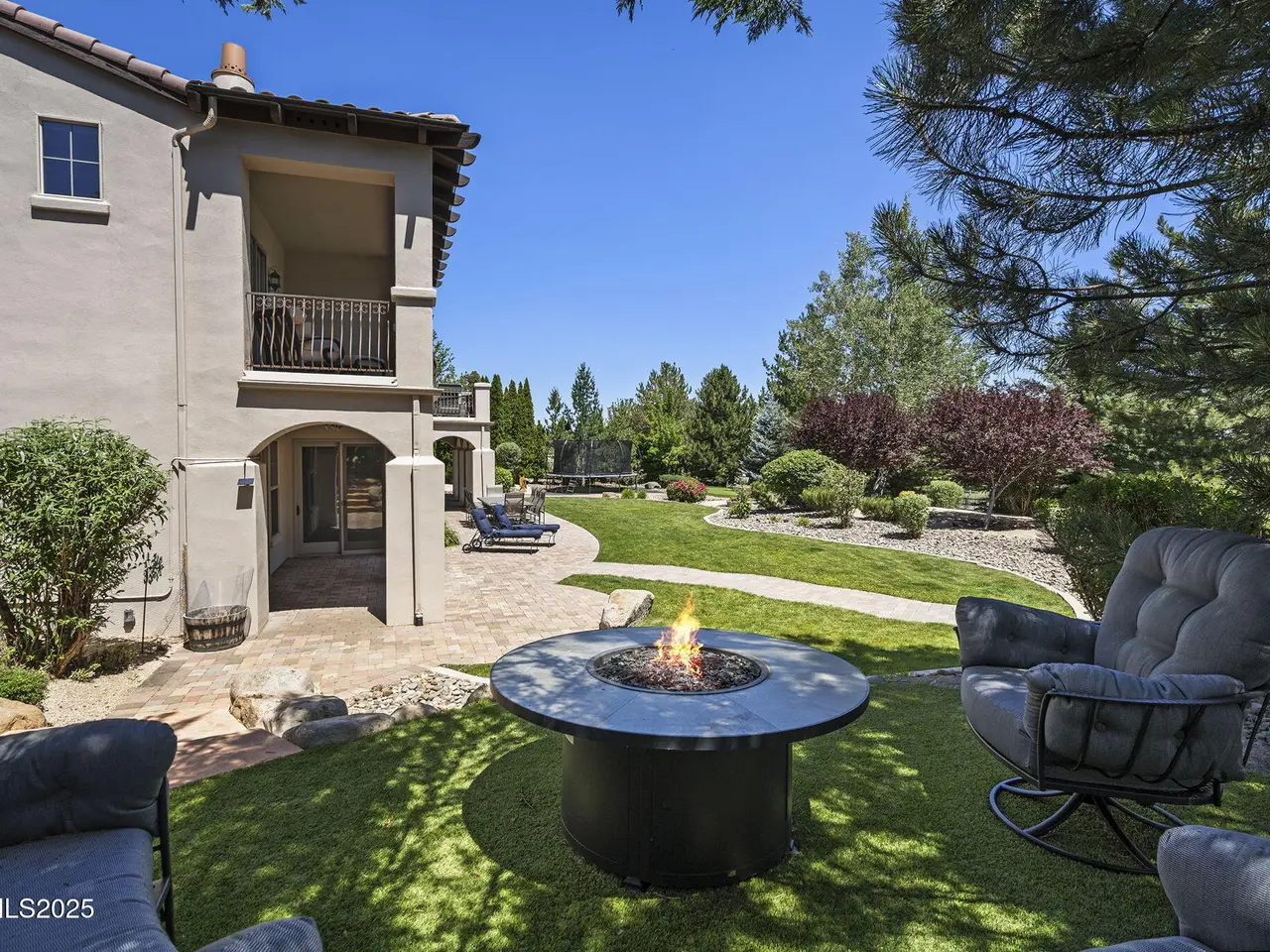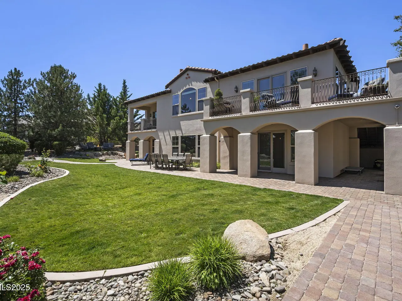 Welcome to this stunning luxury estate property, located in the prestigious Saddlehorn community. Nestled on a serene cul-de-sac, this exquisite 5 bedroom, 5 1/2 bath residence has undergone a multitude of designer renovations, offering the finest in upscale living. The chef's kitchen is a true showpiece—featuring leathered Taj Mahal quartzite countertops, two built-in refrigerators, dual Bosch dishwashers, warming drawers, added custom soft-close cabinetry, and three spacious pantries. Expanded custom built-ins elevate both functionality and elegance, making this kitchen a culinary dream. Relax and unwind in the spa-inspired primary suite on the main level which includes a steam shower, gas fireplace, custom lighting, and sophisticated tilework. Downstairs you will find a spacious in-law suite including its own kitchenette with l Leather Taj Mahal quartzite counter, new sink, dishwasher, and beverage fridge- plus a versatile bonus space perfect for a game room, home theater, or additional living quarters creating the ultimate entertaining space, and two additional private bedrooms with ensuites. Additional interior highlights include a double-sided gas fireplace between the living and great rooms, a custom bunk room with exposed beam detail, a private man cave, updated designer lighting, and extensive electrical upgrades throughout. Step outside to enjoy the resort-style grounds—complete with an expanded paver patio, grand fountain, raised vegetable gardens, privacy hedging, and a swim spa with new pump & cover, custom decking for easy maintenance access. A built-in outdoor BBQ with griddle enhances alfresco living. Premium appliances include two washers, two dryers, five beverage refrigerators, and so much more. This turnkey luxury retreat combines timeless elegance with modern comfort in one of Reno's most sought-after neighborhoods. See newly remodeled upgrade list in documents for additional information.