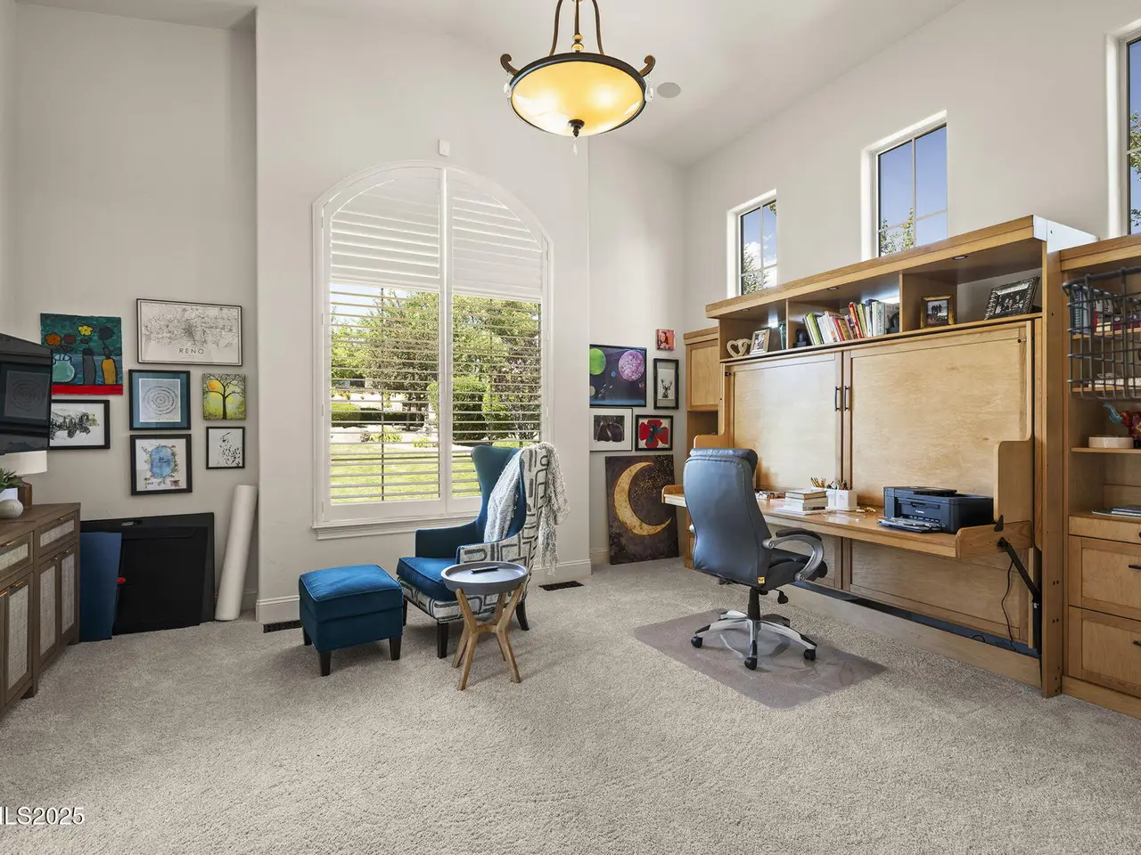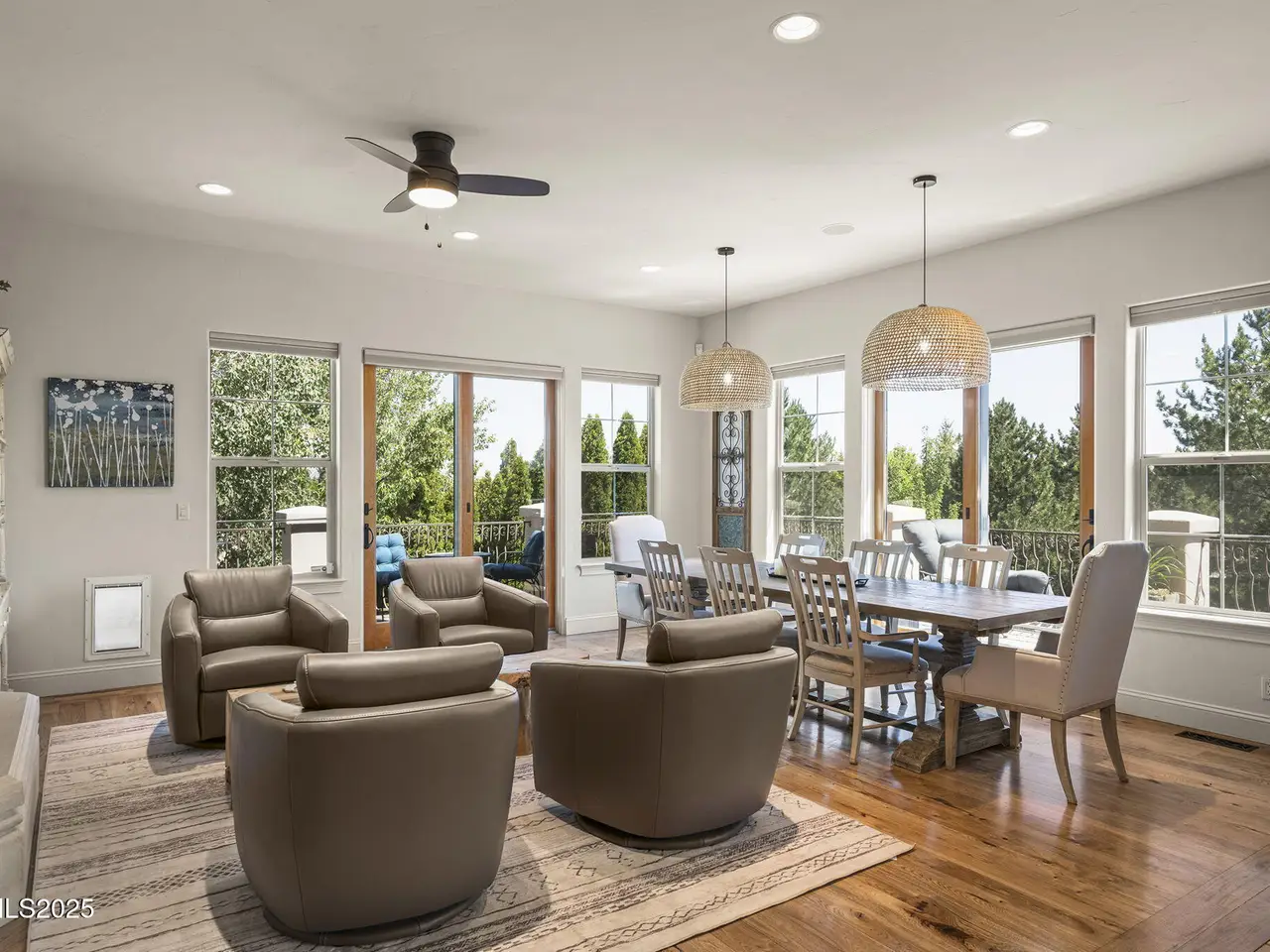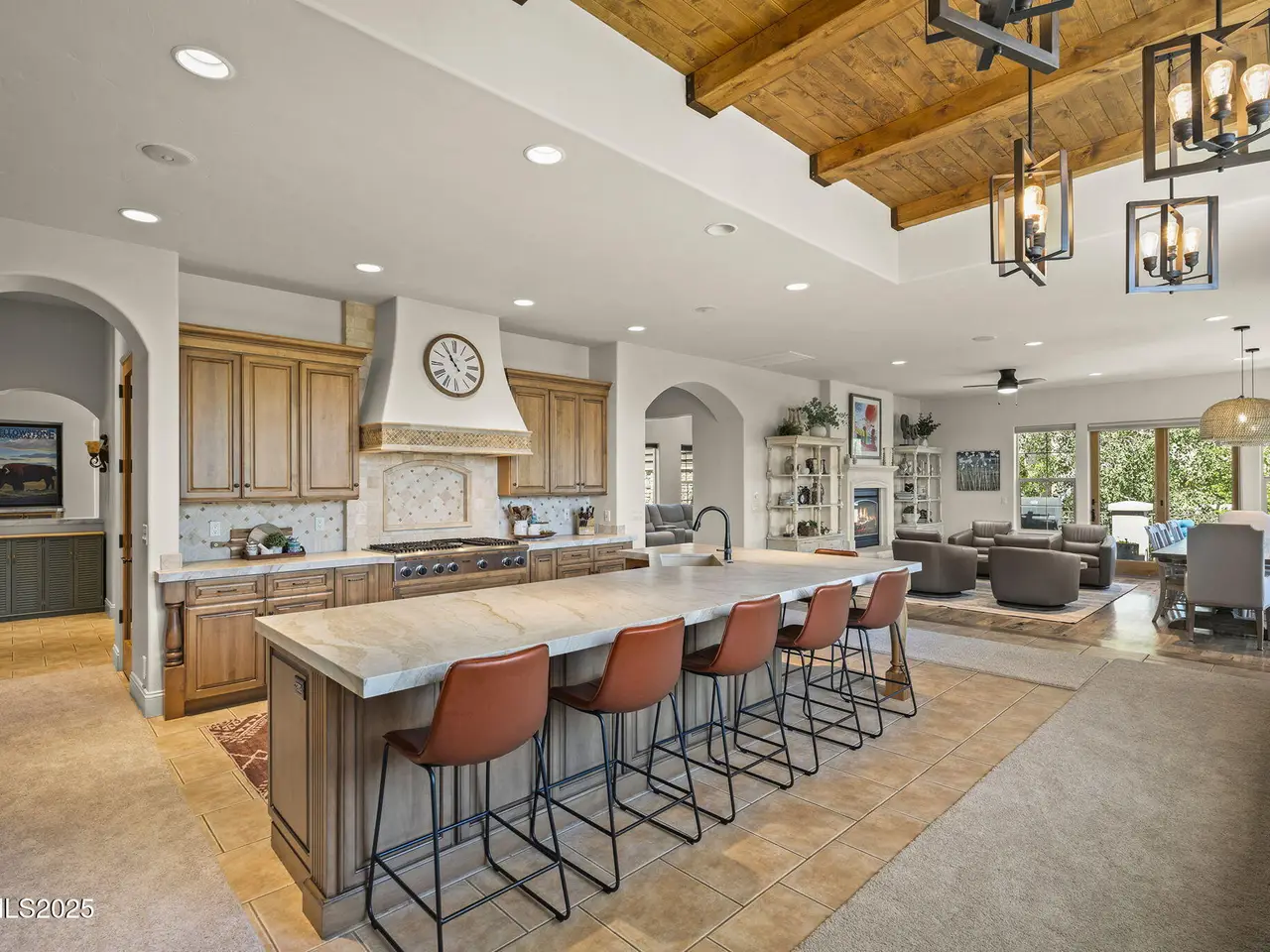 Welcome to this stunning luxury estate property, located in the prestigious Saddlehorn community. Nestled on a serene cul-de-sac, this exquisite 5 bedroom, 5 1/2 bath residence has undergone a multitude of designer renovations, offering the finest in upscale living. The chef's kitchen is a true showpiece—featuring leathered Taj Mahal quartzite countertops, two built-in refrigerators, dual Bosch dishwashers, warming drawers, added custom soft-close cabinetry, and three spacious pantries. Expanded custom built-ins elevate both functionality and elegance, making this kitchen a culinary dream. Relax and unwind in the spa-inspired primary suite on the main level which includes a steam shower, gas fireplace, custom lighting, and sophisticated tilework. Downstairs you will find a spacious in-law suite including its own kitchenette with l Leather Taj Mahal quartzite counter, new sink, dishwasher, and beverage fridge- plus a versatile bonus space perfect for a game room, home theater, or additional living quarters creating the ultimate entertaining space, and two additional private bedrooms with ensuites. Additional interior highlights include a double-sided gas fireplace between the living and great rooms, a custom bunk room with exposed beam detail, a private man cave, updated designer lighting, and extensive electrical upgrades throughout. Step outside to enjoy the resort-style grounds—complete with an expanded paver patio, grand fountain, raised vegetable gardens, privacy hedging, and a swim spa with new pump & cover, custom decking for easy maintenance access. A built-in outdoor BBQ with griddle enhances alfresco living. Premium appliances include two washers, two dryers, five beverage refrigerators, and so much more. This turnkey luxury retreat combines timeless elegance with modern comfort in one of Reno's most sought-after neighborhoods. See newly remodeled upgrade list in documents for additional information.