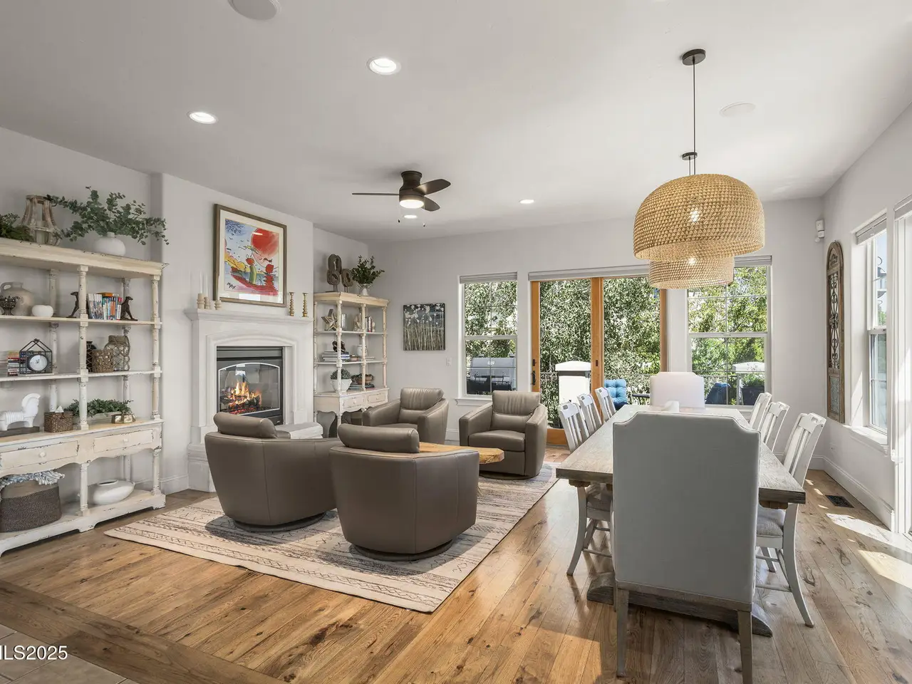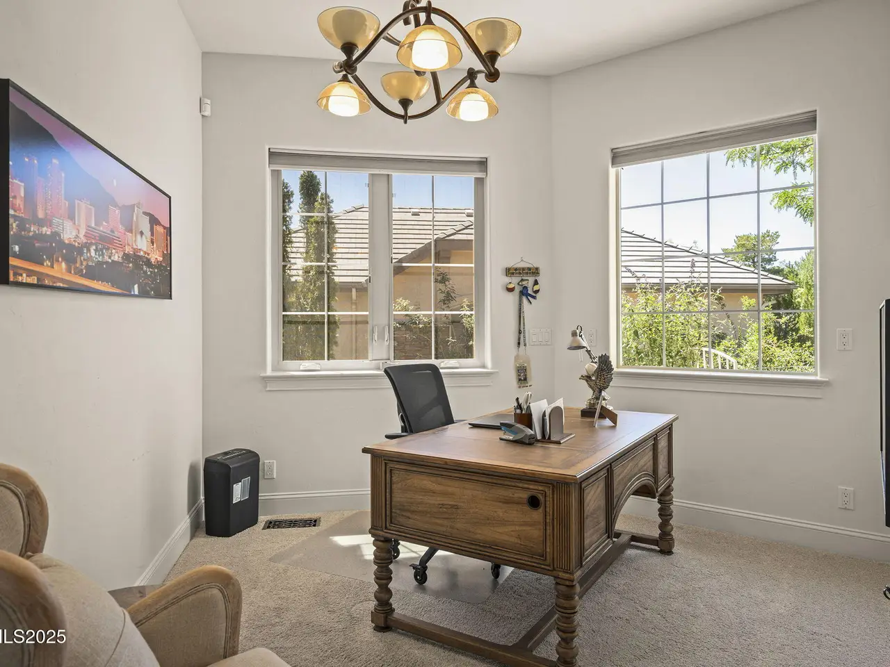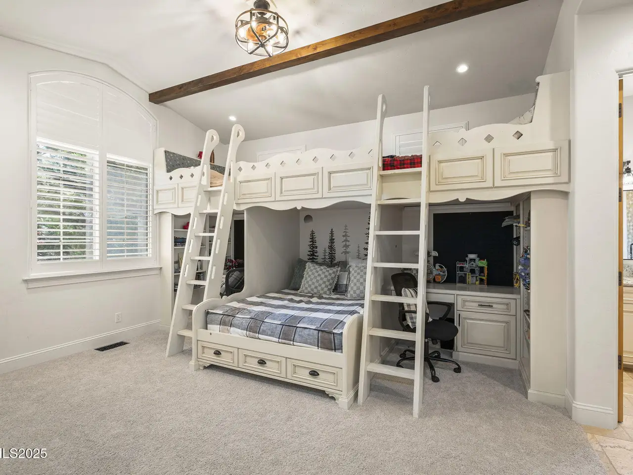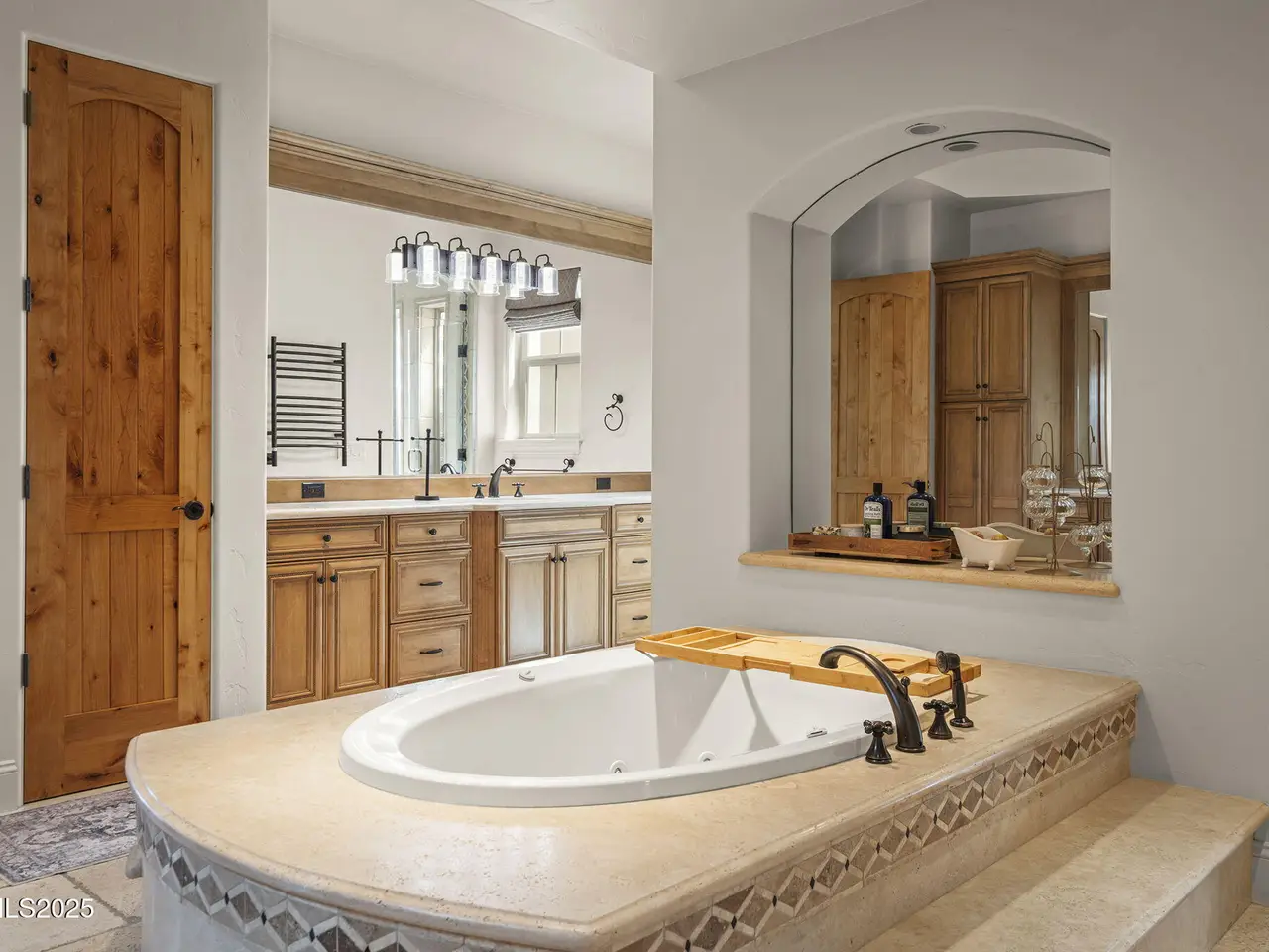 Welcome to this stunning luxury estate property, located in the prestigious Saddlehorn community. Nestled on a serene cul-de-sac, this exquisite 5 bedroom, 5 1/2 bath residence has undergone a multitude of designer renovations, offering the finest in upscale living. The chef's kitchen is a true showpiece—featuring leathered Taj Mahal quartzite countertops, two built-in refrigerators, dual Bosch dishwashers, warming drawers, added custom soft-close cabinetry, and three spacious pantries. Expanded custom built-ins elevate both functionality and elegance, making this kitchen a culinary dream. Relax and unwind in the spa-inspired primary suite on the main level which includes a steam shower, gas fireplace, custom lighting, and sophisticated tilework. Downstairs you will find a spacious in-law suite including its own kitchenette with l Leather Taj Mahal quartzite counter, new sink, dishwasher, and beverage fridge- plus a versatile bonus space perfect for a game room, home theater, or additional living quarters creating the ultimate entertaining space, and two additional private bedrooms with ensuites. Additional interior highlights include a double-sided gas fireplace between the living and great rooms, a custom bunk room with exposed beam detail, a private man cave, updated designer lighting, and extensive electrical upgrades throughout. Step outside to enjoy the resort-style grounds—complete with an expanded paver patio, grand fountain, raised vegetable gardens, privacy hedging, and a swim spa with new pump & cover, custom decking for easy maintenance access. A built-in outdoor BBQ with griddle enhances alfresco living. Premium appliances include two washers, two dryers, five beverage refrigerators, and so much more. This turnkey luxury retreat combines timeless elegance with modern comfort in one of Reno's most sought-after neighborhoods. See newly remodeled upgrade list in documents for additional information.