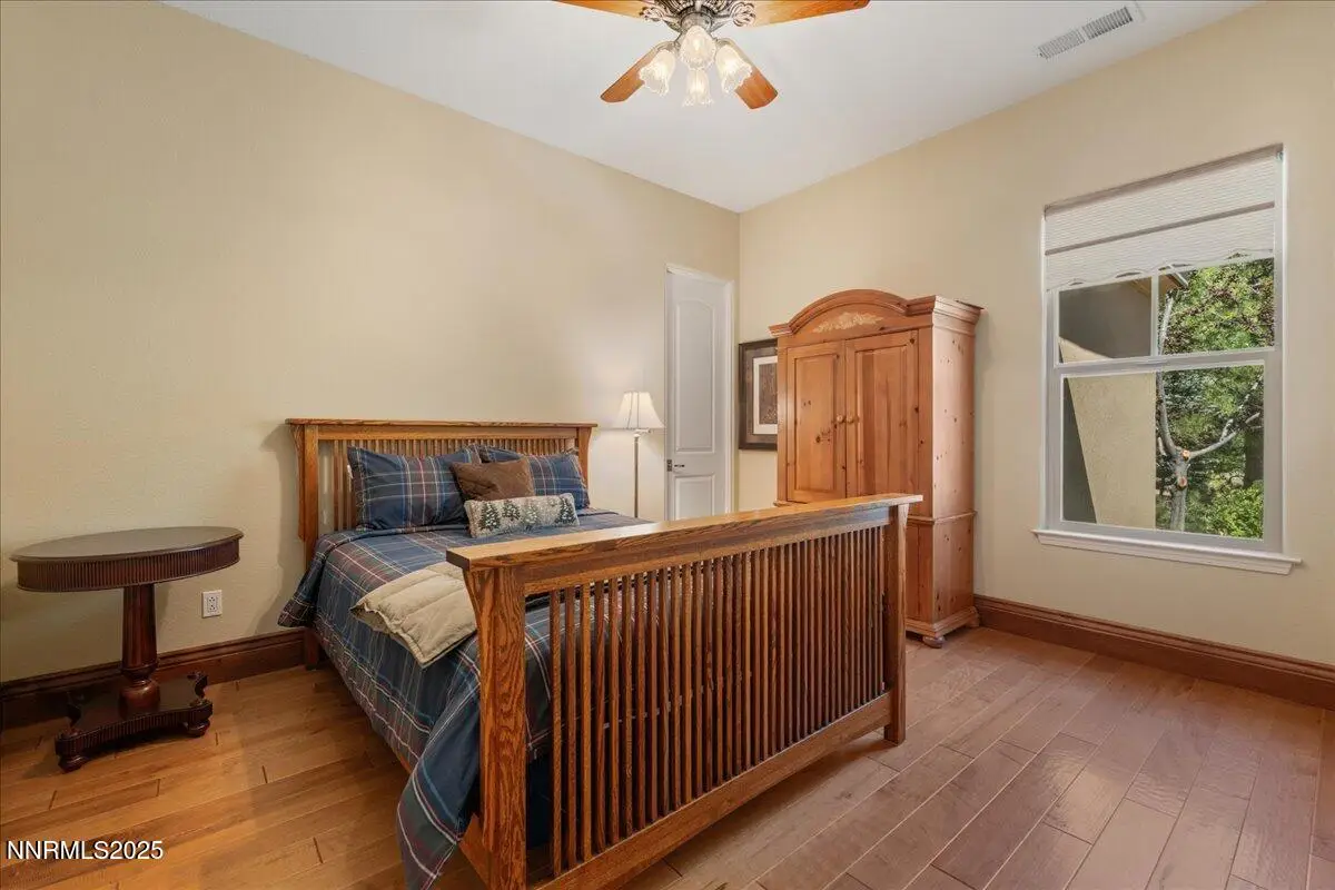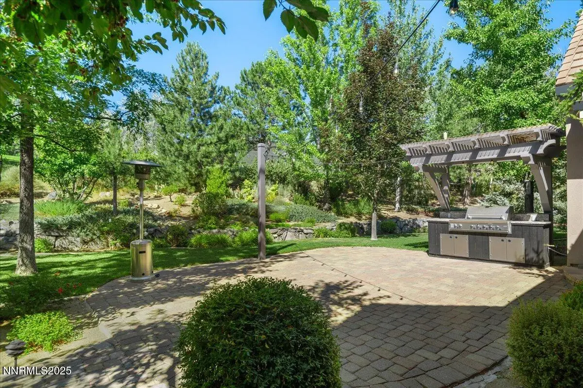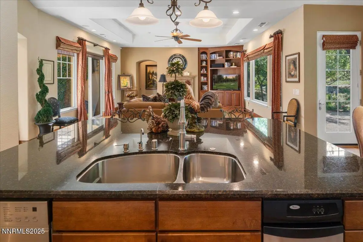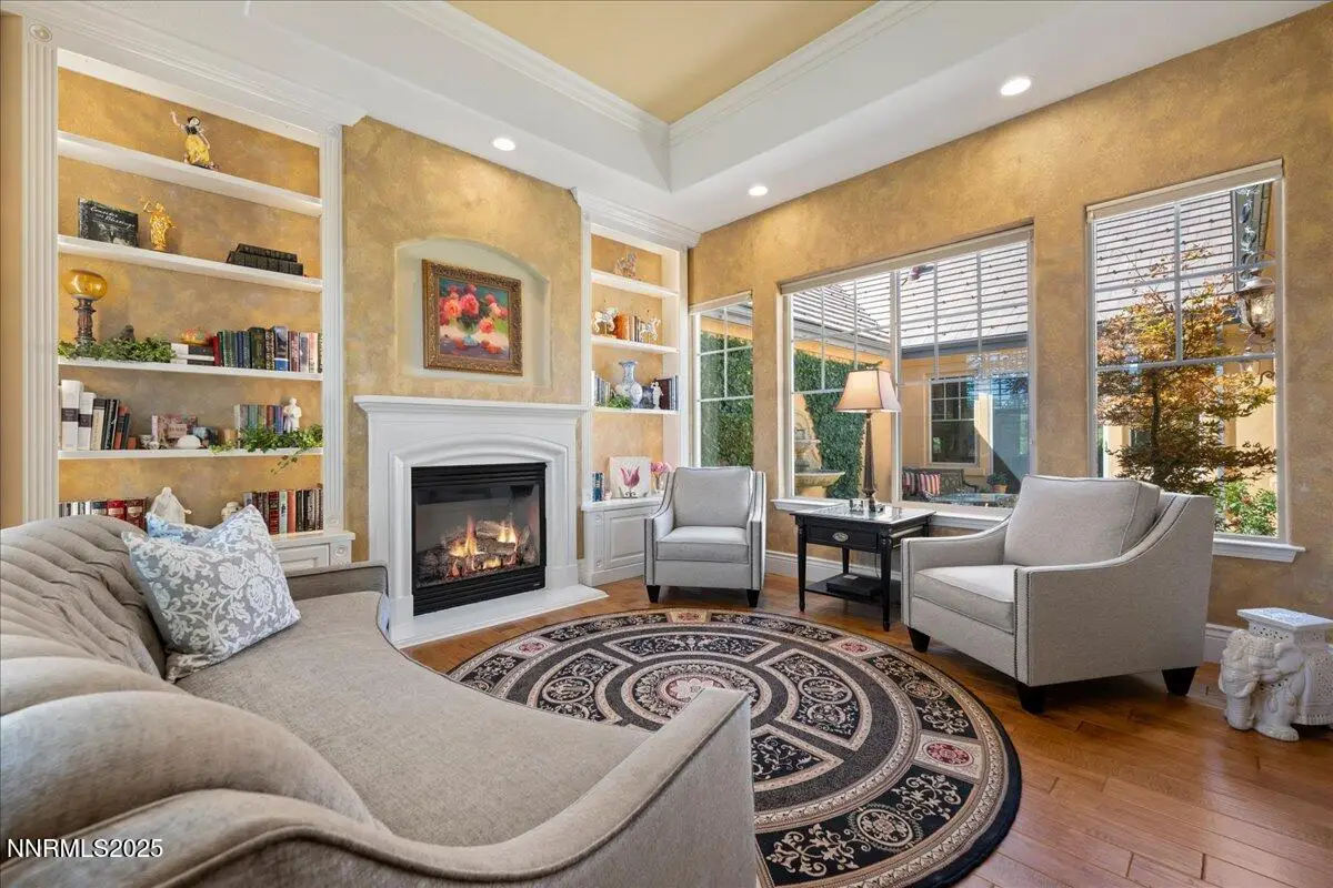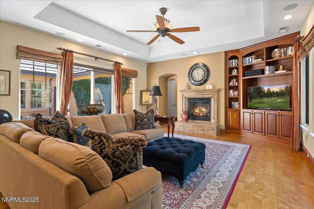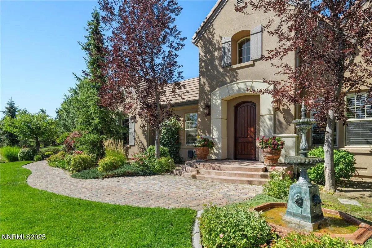 Mountain Views in Montreux! This luxurious single-level presents outstanding curb appeal, private lush landscaping, and extensive upgrades. The interior courtyard is an open-air oasis, providing luminous natural sunlight. Recent improvements include Thermador double oven, new interior paint, Primary Bath bidet, new LED lights, new attic ladder access, and approximately 50 new foliage plantings. Ease right into the Country Club lifestyle - Montreux Sports Membership included. Gourmet Kitchen features Granite countertops, Miele dishwasher, Thermador cooktop, warming drawer, and pull-out cabinet shelves. Kitchen and Laundry were expanded to create extra space and storage. Second Living Room/Bar is impressively equipped with temperature- controlled wine cabinet, ice maker, and refrigerator drawer. Slate tile, hardwood floors, Alder baseboards, and remarkable built-ins throughout. Other recent improvements include new electrical in Kitchen, new interior garage steps, and recently repaired furnace. The home has two almost new water heaters, newer acrylic stucco, roof system, reinforced shear walls, insulated garage doors, and re-sealed and re-installed windows. Surround Sound in Family Room. Peaceful backyard is outfitted with a built-in BBQ, expansive paver patio, hot tub, full mature trees, and 11 rose bushes. Interior Courtyard includes cables that support drop canvas covering. Welcome to Montreux, Northern Nevada's premier private golf course community. This 24/7 security gated luxury community surrounds an 18-hole, Jack Nicklaus Signature Championship Course (Par 72), with world-class Clubhouse amenities. This home on 16956 Rue du Parc is conveniently located near Montreux's main entrance, enjoys easy access to the community's paver walking trail, and is just a short stroll to all the Clubhouse action. In only 20 minutes, you can be skiing at Mt. Rose Ski Resort or jetting off from the Reno-Tahoe International Airport. Beautiful Lake Tahoe is a just a 30-minute leisurely drive away.