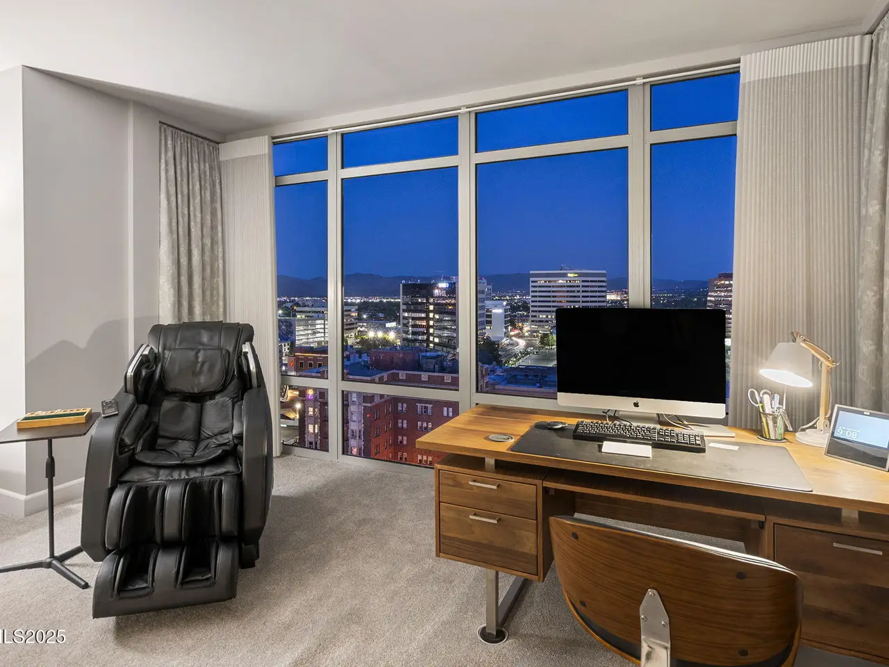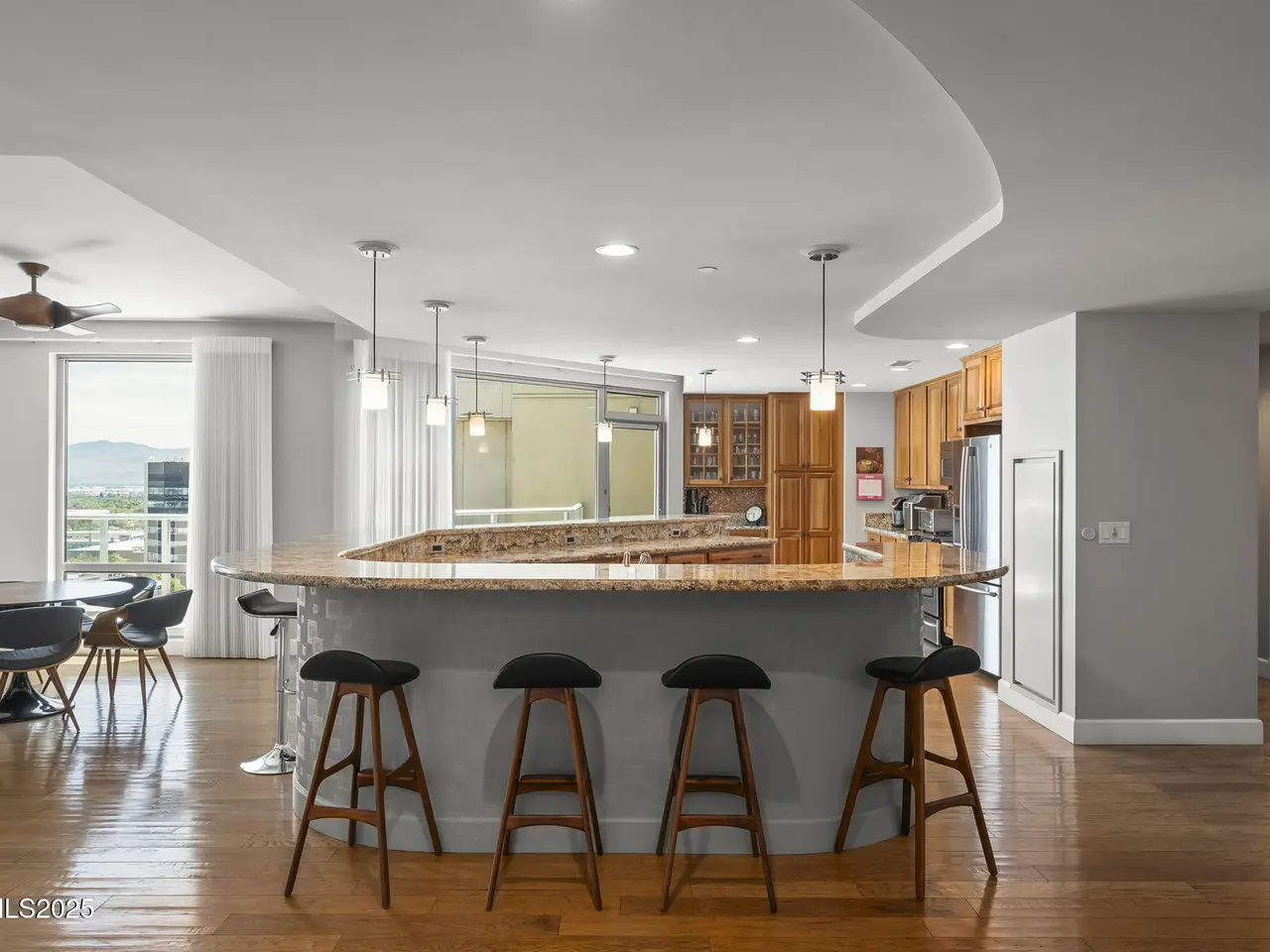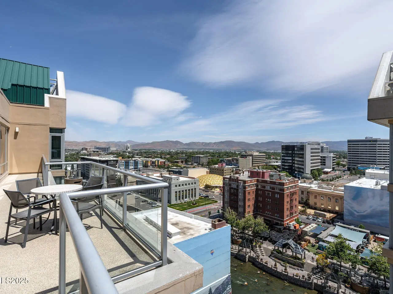 Live Above It All in Reno's "Global Headquarters" — The Palladio Penthouse. Experience the pinnacle of luxury urban living in this rare and breathtaking Penthouse at 50 N Sierra Street— in the heart of the city's vibrant downtown. One of only four exclusive penthouse residences in the prestigious Palladio, this 3-bedroom, 3.5-bath home is a masterclass in elegance, privacy, and elevated design. Step off your private express elevator—a luxury reserved for this unit—and into an expansive retreat where sophistication meets comfort. Hickory hardwood floors, polished granite surfaces, and exquisite stone finishes set the tone, while an upgraded fireplace and custom feature wall with built-in bar and uplighting create a perfect atmosphere for entertaining or relaxing in style. The sun-drenched great room is designed for gatherings large or small, anchored by a striking kitchen island bar that invites culinary creativity and connection. Extend the experience outdoors on the protected balcony spanning the full length of the unit, offering panoramic vistas of downtown Reno, the Sierra Nevada, and the flowing Truckee River. The primary suite is a serene escape with luxurious finishes, while the junior suite and additional bedroom offer flexibility for guests or home office needs. With three side-by-side parking spaces, ample storage, and a private storage unit, this home offers unmatched convenience. Located in the heart of Reno's walkable downtown, The Palladio places you steps from fine dining, art galleries, theaters, local parks, and cultural landmarks. Wake up to river views, walk to your favorite café, and end the day with a city skyline sunset—all from your new perch in Penthouse 15. This is more than a home. It's a statement. It's Reno redefined.