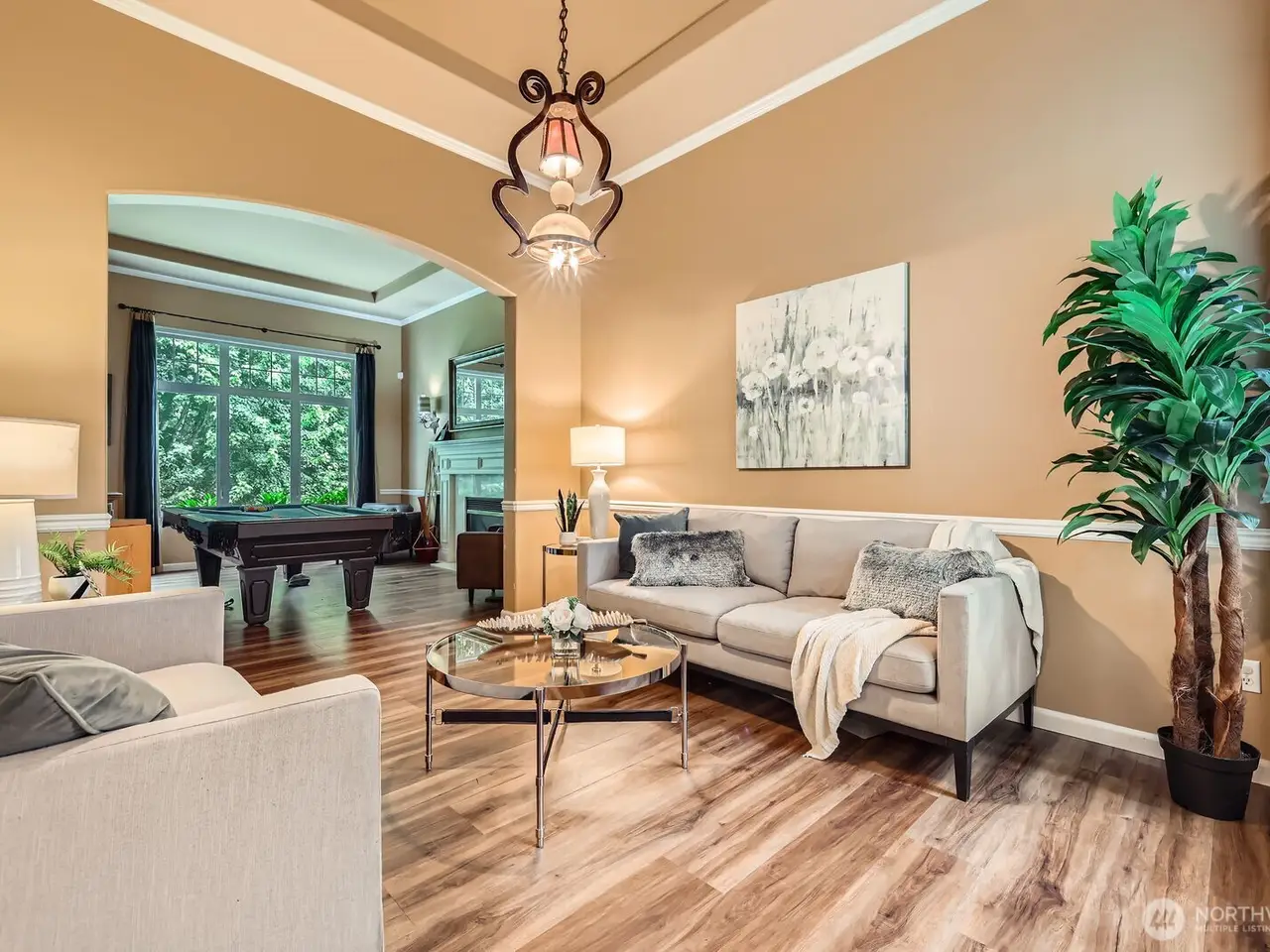 DRAMATIC PRICE IMPROVEMENT!! Unique two-story, 2,990 square foot home located on a .9-acre lot in a cul-de-sac in the Issaquah School System. This four bed, three bath home offers privacy, comfort and flexibility. Soaring ceilings, new flooring and carpet, stylishly updated baths. Formal living and dining rooms feature tray ceilings, a gas fireplace, and elegant trim. The kitchen boasts stainless appliances, a center island with gas cooktop, and walk-in pantry. Cozy family room with brick fireplace and custom built-ins. The vaulted primary suite includes a spa-like bath and his and hers closets. Main floor den/potential bedroom with bath. Expansive patio, lush outlooks, 3-car garage, and RV and boat parking available.
