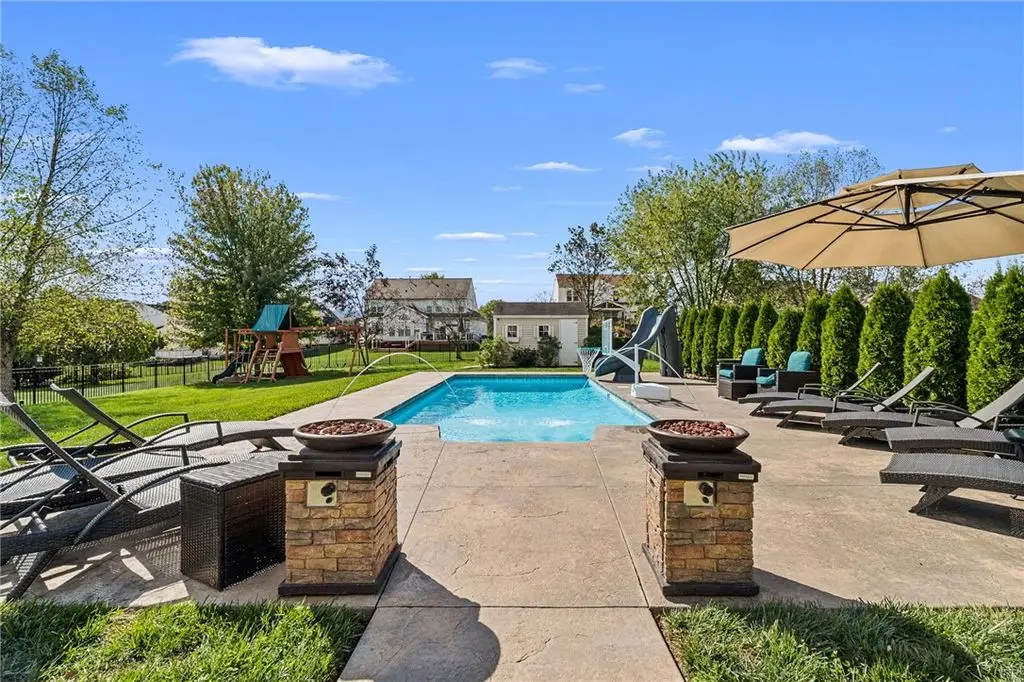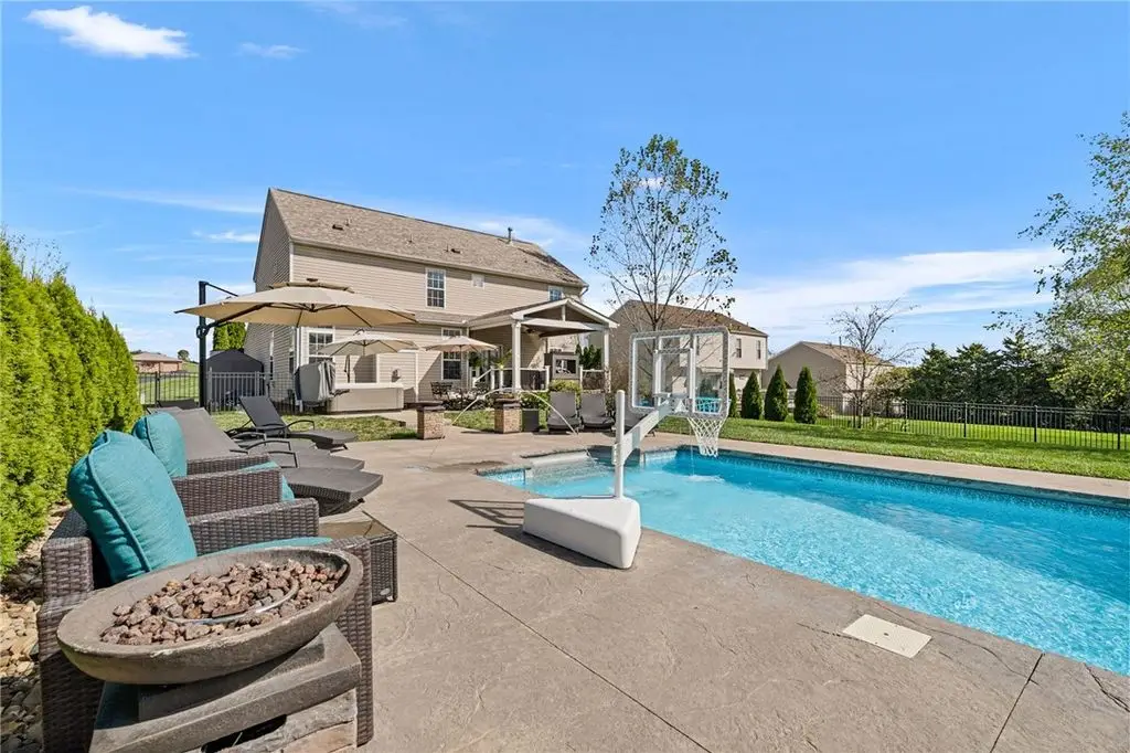 Beautifully updated 4-bed, 2.5-bath home with a finished basement and exceptional outdoor living space. The kitchen features granite counters, stainless appliances, and a casual dining area opening to a covered composite deckC/B?B=perfect for entertaining or relaxing. Step outside to your private retreat with a large pool with customizable lights and water feature, stamped-concrete patio, year-round hot tub, and privacy trees surrounding the fully fenced backyard. Inside, the formal dining room offers a tray ceiling and oversized bay window, while the finished basement provides flexible space for a home gym, game room, or theater. Two sheds add extra storage for pool gear and tools. The attached two-car garage gives easy access to the kitchen and expands the lower level. Thoughtfully maintained with modern updates throughout, this home delivers comfort, function, and a true resort-style lifestyle just minutes from shopping, dining, and easy access to 910/8/76.