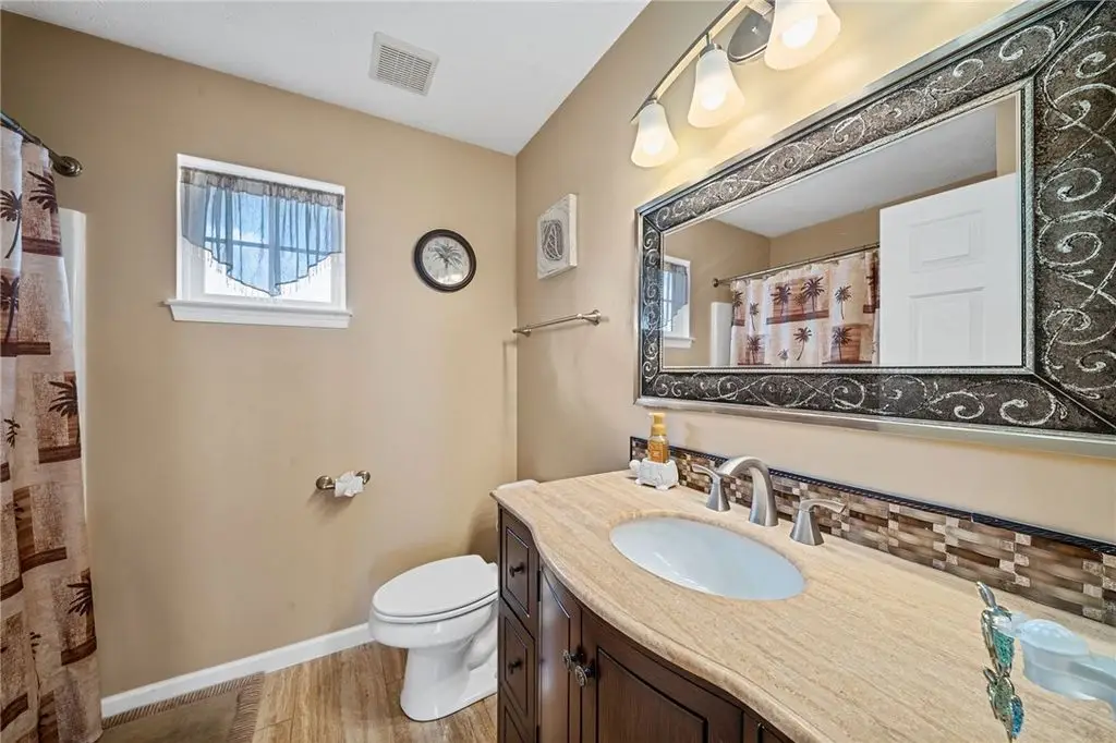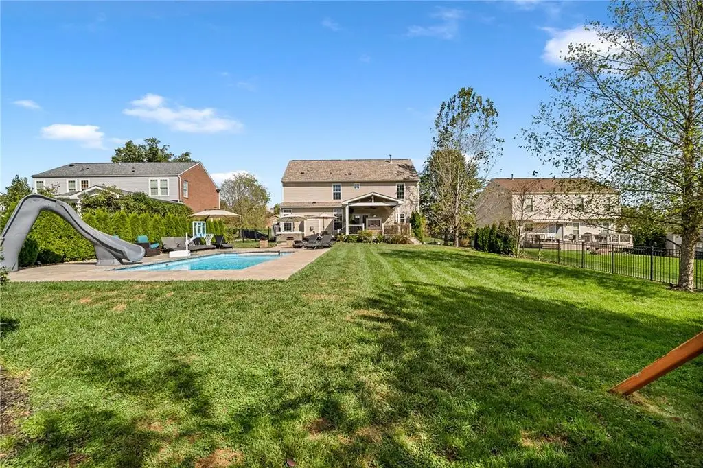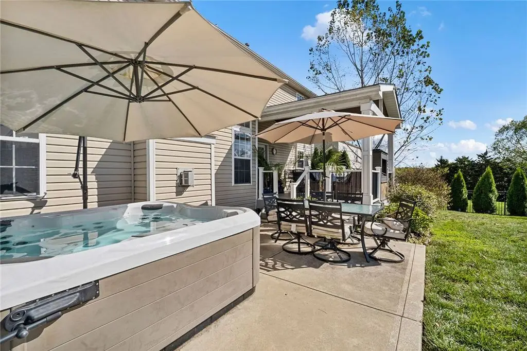 Beautifully updated 4-bed, 2.5-bath home with a finished basement and exceptional outdoor living space. The kitchen features granite counters, stainless appliances, and a casual dining area opening to a covered composite deck - perfect for entertaining or relaxing. Step outside to your private retreat with a large pool with customizable lights and water feature, stamped-concrete patio, year-round hot tub, and privacy trees surrounding the fully fenced backyard. Inside, the formal dining room offers a tray ceiling and oversized bay window, while the finished basement provides flexible space for a home gym, game room, or theater. Two sheds add extra storage for pool gear and tools. The attached two-car garage gives easy access to the kitchen and expands the lower level. Thoughtfully maintained with modern updates throughout, this home delivers comfort, function, and a true resort-style lifestyle just minutes from shopping, dining, and easy access to 910/8/76.