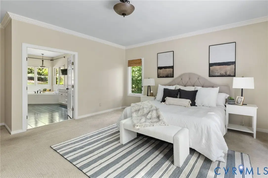 Country living with easy access to all of Richmond! This beautifully maintained brick home on nearly an acre in Lower Tuckahoe features 9' ceilings, marble tile entry floors, newly refinished Oak floors (2024), and recessed lighting throughout the main level. The eat-in kitchen is well-appointed with 5-burner gas range, stainless appliances, glass & stone tile backsplash, a walk-in pantry and is open to the family room with gas fireplace. An adjacent living room with 2-story windows and wet bar makes hosting large gatherings effortless. Tucked away from the main living space is a first-floor primary suite with sweeping views of the grounds and glass door leading to the rear deck. A generous bathroom and dressing room complete the primary. The second level boasts an additional primary suite and 2 more bedrooms with Jack & Jill bathroom complete with custom Wild Black Cherry cabinets and tile accent walls. All newer carpet on second level (2021). Retreating to the fully finished walk-out basement reveals a second family room with gas fireplace & custom built-ins, reading nook, office, wet bar, dry bar, 5th bedroom, and full bathroom. All newer carpet in daylight basement (2021). Continuing out to the patio a professionally designed landscape is punctuated with azaleas, several bonsai trees, and hardscaping. 6 minutes to Rte. 288, 11 minutes to I-64, 12 minutes to Short Pump, 23 minutes to Scott's Addition/Museum District/Fan.