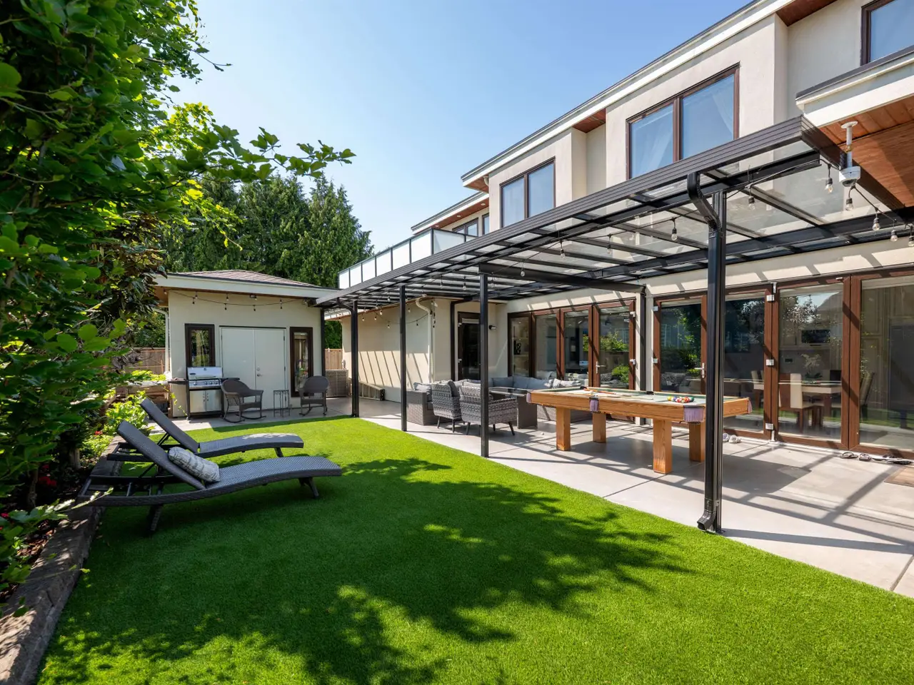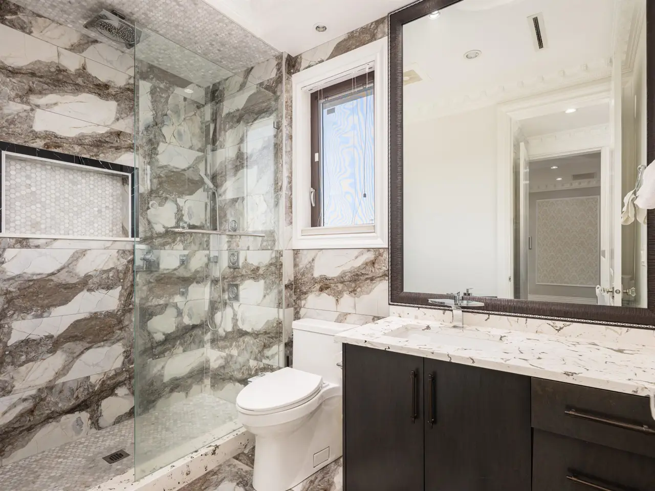 Better than new! This stunning south-facing custom home sits on an 8,713 sqft lot on a quiet street, featuring top-quality craftsmanship throughout. Soaring ceilings in the living and dining areas. Bright and cozy south-facing family room with large German folding patio doors. Main floor media room with full bath can be converted to an ensuite. Legal suite offers great mortgage helper potential. Upstairs boasts four spacious ensuite bedrooms. Equipped with intercom, built-in speakers, and security system. Close to shops, banks, restaurants, schools, transit, and more. A must-see!