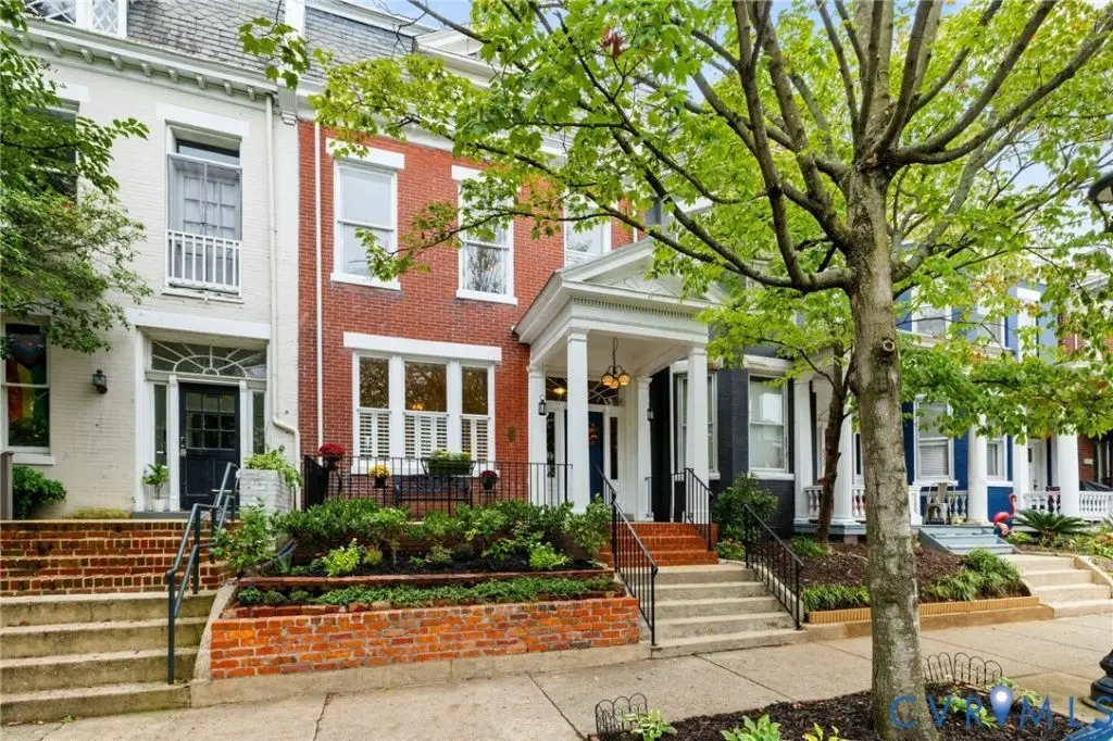 Welcome to this stately Fan District detached row home which exudes historic charm and is combined with many contemporary updates. Perched on the Monument Avenue side of the street, 2231 W Grace is elegant with solid brick walls and a welcoming front porch on which to sit and enjoy your neighbors, the Cityscape, or a cup of coffee. Upon entry are expansive and clear sight lines to the back of the home, as well as an exposed brick wall that runs from the foyer to the back of the home on the second floor making for quite a dramatic effect. The front living room is ideal for hosting lively conversation with family and friends after enjoying a meal in the enjoining dining room.Both spaces boast high ceilings, original wood floors, and a fireplace in the dining room which add to the character of this lovely early 1900's built home. Beyond the dining room is the family room allowing for casual living with lots of natural light, a powder room and is open to the kitchen. Need to have plenty of cabinets for all of your kitchenware?Look no further than this high quality cherry cabinet filled kitchen!You will enjoy baking and cooking for friends and family w/the Electrolux double ovens, Five Star four burner gas stove, brand new microwave, Bosch dishwasher, and two beverage fridges surrounded by attractive granite counters & high top bar. The second level is where you will find your sumptuous primary suite including soaring ceilings adorned by an exposed brick wall, a sitting area for relaxing or working, an endless walk in closet & full ensuite bath! Incredible light beam through the North facing windows which can easily be controlled w/ the use of the plantation shutters. Down the hall are two additional bedrooms which include two windows, plantation shutters, closets & overhead lighting.Finally,you will enjoy the outdoors on the patio & gardening area enclosed by a privacy fence.For those who aren't ready to give up suburban living, there is a generous one car garage and an option to rent a neighboring parking space too!