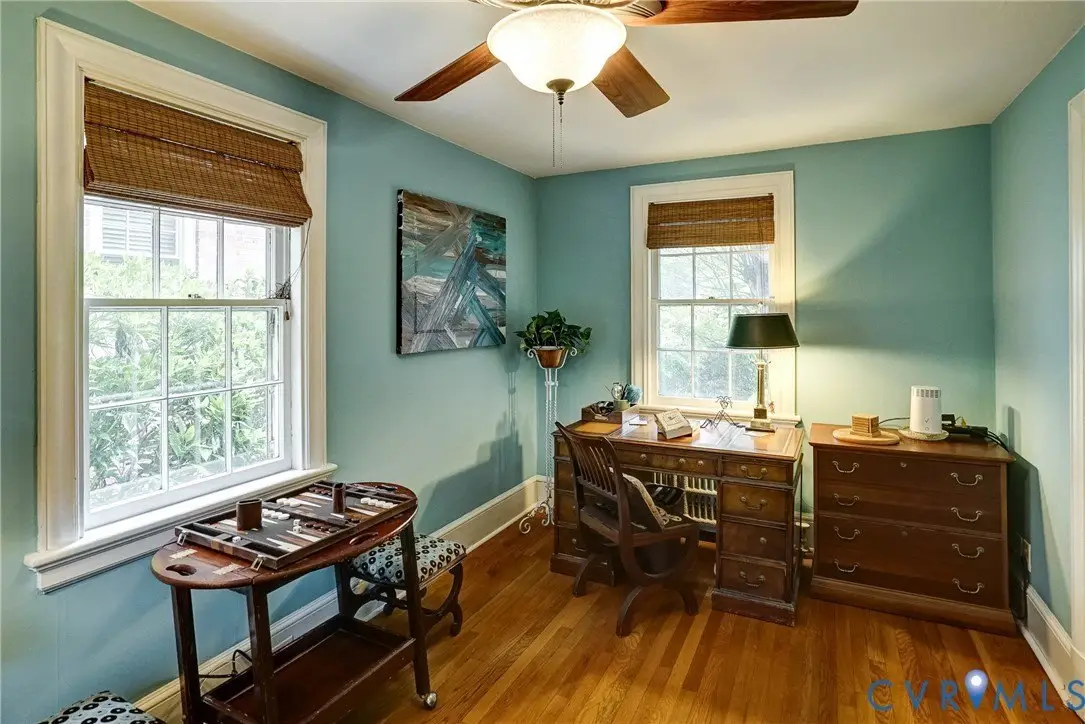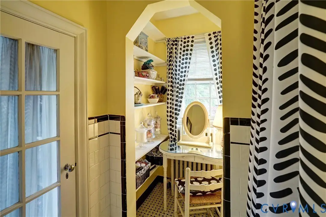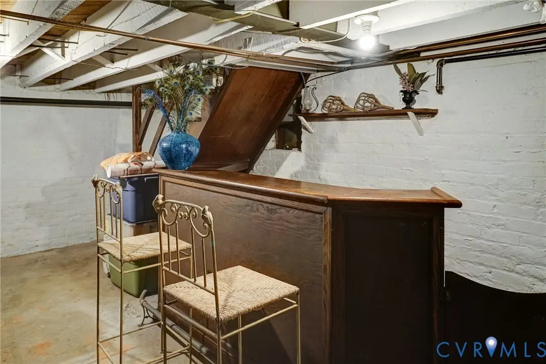 This timeless 1930's Tudor brick and slate home sits nicely tucked away off the beautiful historic Monument Avenue combining classic architecture with fresh updates & thoughtful design. The beautiful full covered front porch boasts original hand-hewn beams displaying the true Arts and Crafts style. Freshly painted in soft, neutral tones, the interiors highlight beautiful hardwood floors, tall ceilings, and abundant natural light. The kitchen offers Blanco granite countertops, a crisp white subway tile backsplash, floor-to-ceiling cabinetry, tile flooring, pantry, butler's stairs, & a charming breakfast nook. A rear door leads to the back brick & slate patios for easy indoor-outdoor living. Entertain in style in the grand dining room, anchored by a crystal chandelier and mouldings. The foyer welcomes with neutral paint, a coat closet, and an open flow into the great room, where a wood-burning fireplace is flanked by original windows & hardware. An additional den/office with built-in bookcases & rattan blinds offers a cozy retreat. Upstairs, the primary suite features a traditional en-suite bath with classic black & white tile. Two additional bedrooms share a full bath/tub bathroom with the same timeless tile, along with walk-in linen closet and dressing/vanity area. The third floor provides a flexible fourth bedroom or bonus room, complete with Berber carpet, two cedar floored closets, built-in drawers, & additional eave storage. A full basement with half bath, custom wooden bar, soap stone wash sink remains unfinished, offering potential for future customization. Outside, the property includes a detached brick garage with automatic door with patios and a rear fenced yard. Lovely landscaping front & back to enjoy throughout the seasons. This Monument Avenue gem blends original character with modern comforts, making it a truly special offering in one of Richmond's most sought-after neighborhoods in the Near Westend. Walkable to Stella's and close to Scott's Addition, VMFA, highway access, and more.