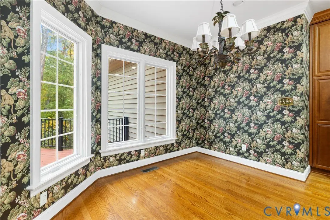""This is the prime lot in Randolph Square! Ultra private approx. 3/4 acre with mature trees and plantings. You will love the relaxing afternoons on your private stone patio or the elevated low maintenance decking. This professionally landscaped lot rests at the end of a cul-de-sac in one of the most peaceful and tranquil locations in Randolph Square. The home was custom built for the current owners. Montague Builders constructed this Farmington Plan with jack arches and keystones for a Federal flair. Several structural enhancements to the design include a kitchen that opens to a morning room and the entire great room. Quality appliances are included but sold 'as is.' The high ceilings and upgraded windows provide spectacular natural sunlight. You will appreciate having an oversized, finished 2 car garage. You will love the whole house generator and walk-in crawl space storage. The owners have graced the home with attractive decor, classic moldings and millwork and have upgraded fixtures and finishes throughout. This is a """"Very Richmond """" home that offers bold, open spaces and very comfortable living. Come experience first floor living in a location that is considered one of the most desirable in the Richmond area.""