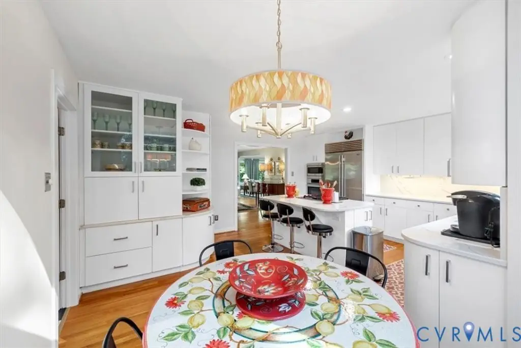 Welcome to this stunning Transitional home built by Mike Dumont, a unique gem nestled in a serene, tree-lined setting within a highly desirable neighborhood. The home's exterior features a harmonious blend of timeless brick accents, modern siding, and manufactured slate roof framed by manicured landscaping and vibrant crepe myrtle trees, creating exceptional curb appeal. Inside, you will find bright, open living spaces with soaring ceilings, expansive windows, and gleaming hardwood floors that set a warm and inviting tone. The main living areas boast two elegant fireplaces, perfect for both gatherings and quiet evenings. Multiple sitting rooms offer flexibility for entertaining or relaxing. The spacious kitchen, equipped with top-of-the-line Wolfe, Bosch, and Sub-Zero appliances, is seamlessly connected to both formal and casual living areas, and is complemented by a stylish wet bar for hosting. Oversized Anderson casement windows throughout provide abundant natural light and views of the private backyard oasis. Outdoor living is equally impressive, featuring a lush lawn and landscaped walkways leading to the welcoming front entry. This home, with its unique blend of comfort, elegance, and functionality, presents an exceptional opportunity to own a beautifully maintained property in a highly desirable neighborhood.