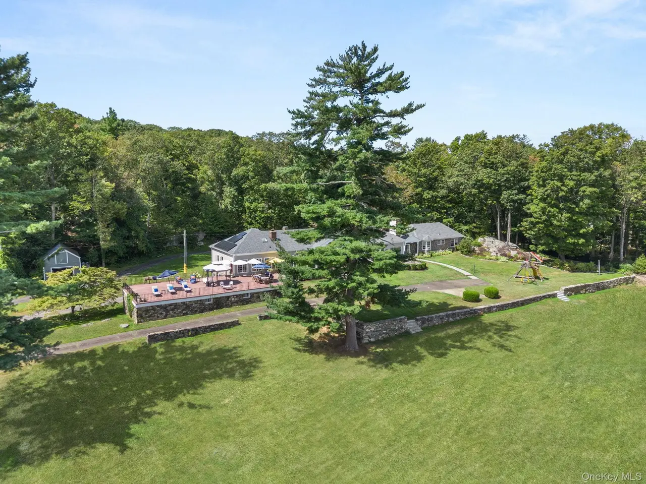 Historic Ridgefield Estate - Where Legacy Meets Modern Luxury. Originally built in 1911 as the Ridgefield School for Boys, this unique estate once anchored a vast 115-acre campus and featured more than 100 rooms, including classrooms, dormitories, and offices. When the school closed, the property was purchased by Francis D. Martin, who gave it a bold architectural overhaul by removing the top three floors, reshaping its silhouette but preserving its timeless character. Today, the lower level still holds remarkable original features: a working walk-in refrigerator and compressor, a functioning coal burner, a vintage dumbwaiter, and the legendary Dungeon Room, all offering a rare, tangible connection to the property's rich and storied past. The home is nestled on an expansive 4.98-acre parcel of picturesque land, located in coveted Ridgefield, Connecticut, this exquisite residence presents an unparalleled blend of grandeur and comfort. Enjoy a one-floor residence that has been preserved and reimagined into a beautifully renovated ranch-style property offering 4,808 square feet of living space. The home offers breathtaking panoramic views in the town of Ridgefield. The landscape is adorned with a lush tapestry of vibrant, clustered trees. As the seasons turn, this ever-changing natural spectacle provides a captivating backdrop year-round, perfectly complementing families who love to entertain. The modern 2019 kitchen renovation boasts 10-foot-tall ceilings, all Thermador appliances including a convection and steam oven, six-burner gas cooktop, and a 3-tier dishwasher. The 10-foot island accommodates a prep sink, a modern drawer microwave, and pull-out drawer fridge and freezer. The home offers spaces to accommodate large gatherings, for those who love to entertain. The kitchen provides abundant storage space while seamlessly blending historic charm with modern comfort. Boasting seven ample bedrooms, this home is designed to accommodate both intimate family living and elegant entertaining with ease. The five full bathrooms and two thoughtfully appointed guest half baths offer both convenience and privacy for residents and guests alike. An inviting, full house cottage adjoins the main residence, offering an ideal private sanctuary for an au pair, in-laws, or extended family. Thoughtfully designed for both comfort and convenience, this charming retreat contains a private entrance, washer/dryer, modern renovated kitchen, two full baths, a dining and living room, and a private deck. The attached cottage ensures independence while maintaining seamless access to the main home, perfectly balancing privacy with togetherness. The home is equipped with three fireplaces, including two wood-burning stoves, solar panels, covered garage spaces to accommodate 10 vehicles and over 2,000 square feet of outdoor deck and living space to enjoy the panoramic views. Mechanical updates feature a full house generator, HVAC system, a steam boiler, an electric hot water heater, and a new Trane air conditioning system. Surrounded by serene natural beauty, this property provides a tranquil retreat while remaining within reach of the vibrant community amenities that Ridgefield is renowned for. Experience the perfect harmony of refined living and rustic charm in this exceptional estate.