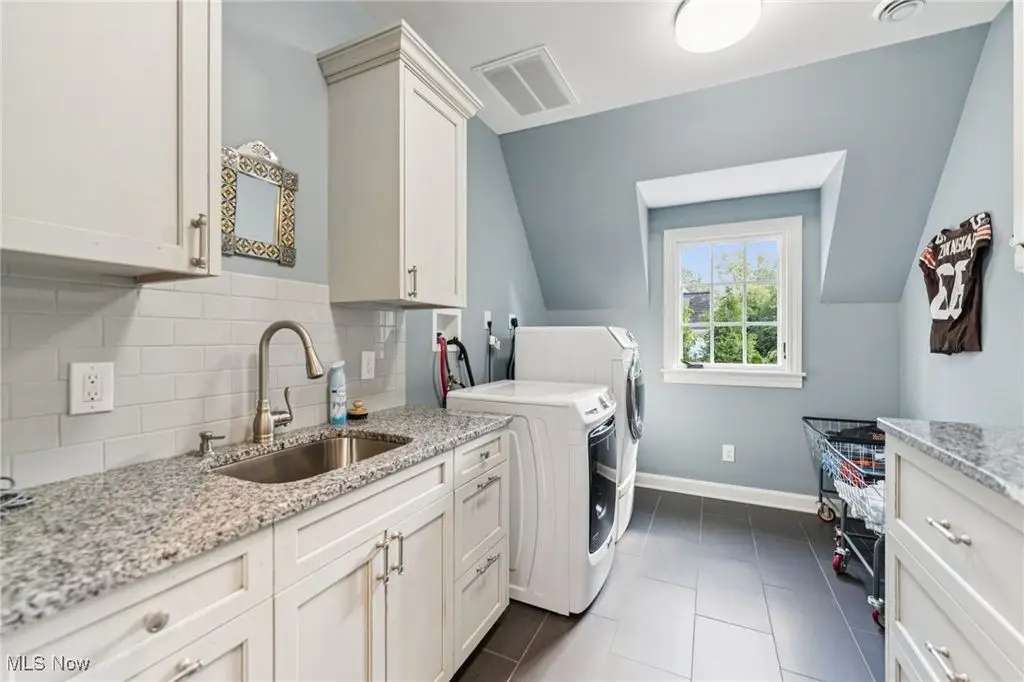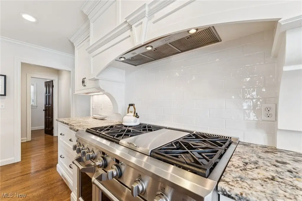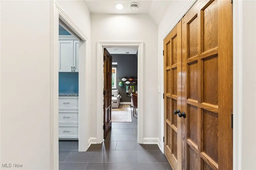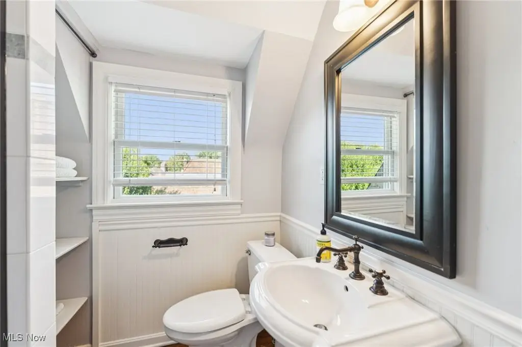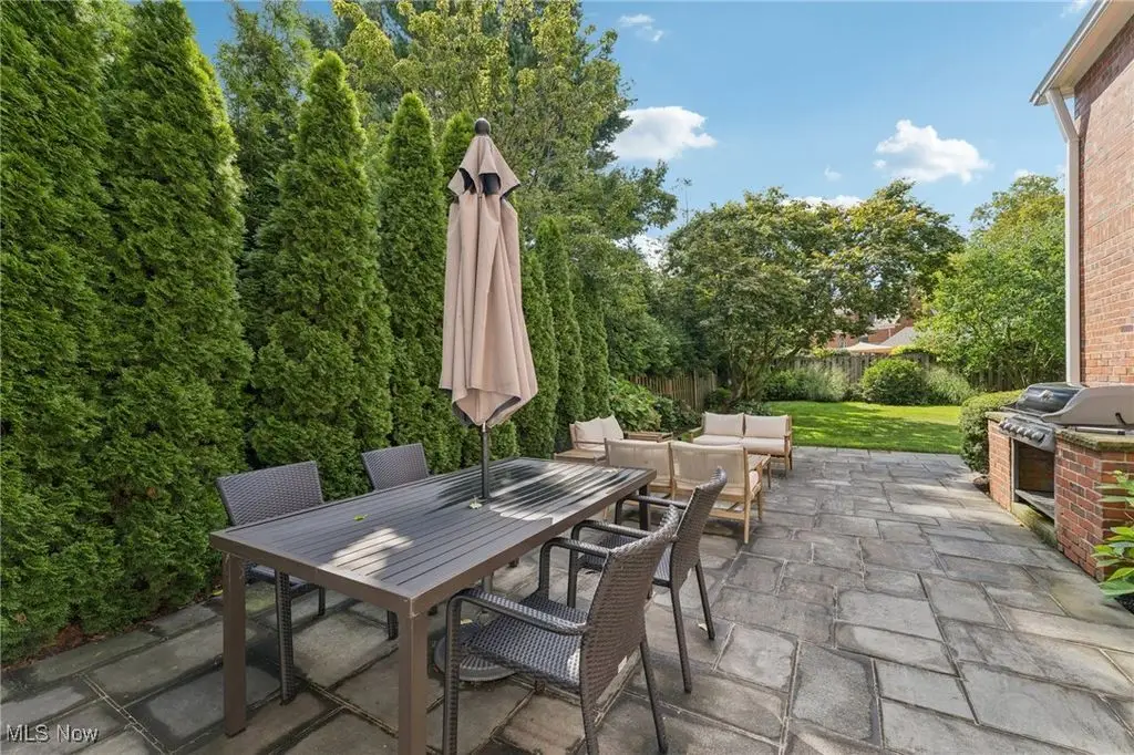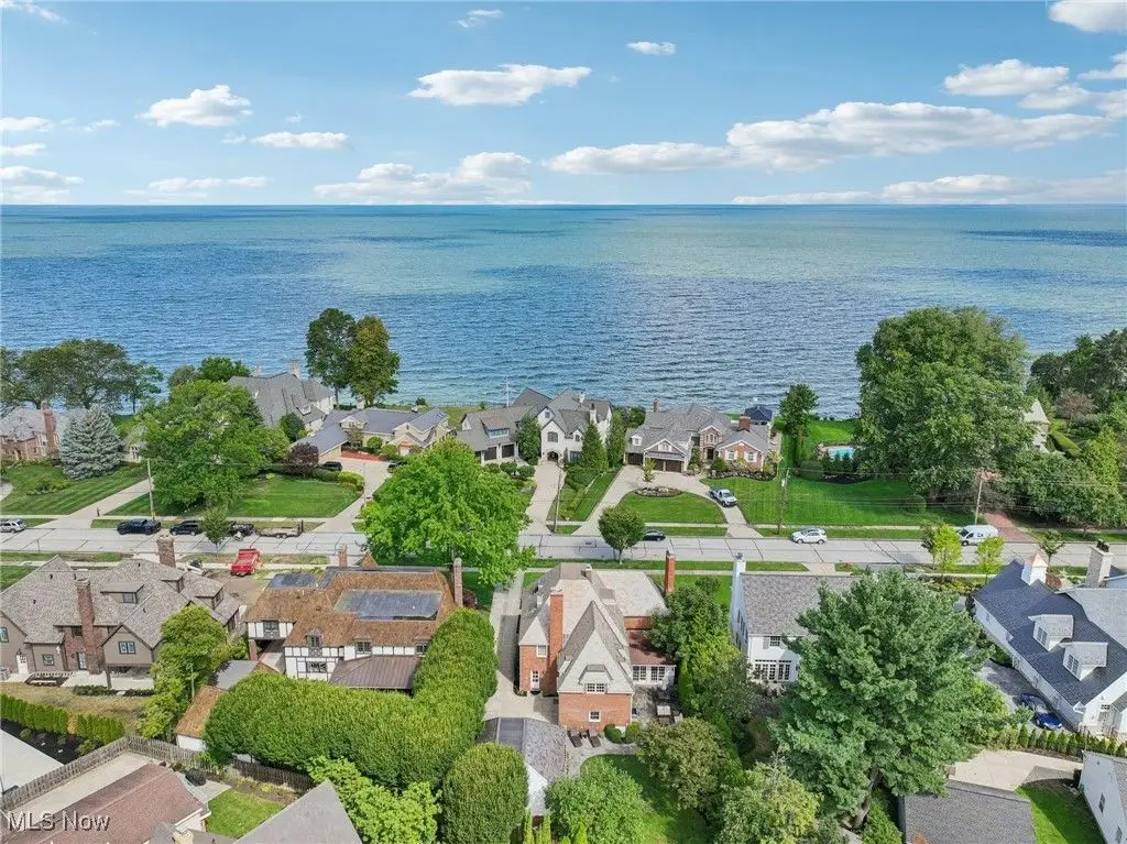 Welcome to a truly exceptional residence on one of Rocky River's most prestigious and sought-after streets. Recently refreshed with modern finishes, an open-concept floor plan, fresh paint, and new landscaping, this home effortlessly blends timeless architecture with today's style and comfort. What truly sets this property apart is its rare position on the coveted south side of the street a vantage point that offers unique sightlines and serene views of Lake Erie. Opportunities to own a home with this location and these views are seldom available, making it a truly special offering. Inside, rich hardwood floors, intricate millwork, and multiple fireplaces highlight the home's historic charm. Sun-filled formal living room and family room sets the stage for gatherings, while the office with French doors opening to a lovely patio offers a private spot to work. The outdoor space is complete with a built-in grill and cooking station, ideal for summer evenings. At the heart of the home is a stunning Amish-built kitchen, featuring a massive island that seats seven, state-of-the-art appliances, and custom baking/coffee stations. Just off the kitchen, a thoughtfully designed mudroom includes a walk-in pantry, wet bar, and plenty of space to stay organized. Upstairs, the serene primary suite is a true retreat with a domed ceiling, fireplace, spa-like bath, and tranquil lake views. Two additional bedrooms share a Jack and Jill bath, while a spacious office/media room offers flexibility. The third floor provides two charming bedrooms and a full bath perfect for teens or guests. The finished lower level adds another fireplace and large rec room for movie nights or casual entertaining. With its stately brick exterior, slate roof, meticulous landscaping, and its rare, highly desirable location offering elevated views, this residence combines old-world craftsmanship with modern updates appealing to the most discerning buyer who values both sophistication and exclusivity.