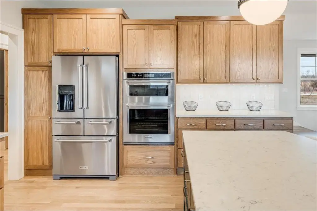 This breathtaking new construction home is perfectly positioned on a sprawling 6-acre lot on the border of Dayton & Rogers! This stunning rambler offers a thoughtfully designed open layout that exudes both comfort and elegance and is loaded with features throughout. From the beautiful white oak flooring to the tiled bathrooms showcasing gorgeous accent walls, this home is meant to impress everyone that sees it. The heart of the home is the dream kitchen, complete with an oversized walk-in pantry, a massive center island and naturally stained white oak cabinets. It is the ideal space for entertaining and daily living alike. The luxurious owner's suite includes stone-tiled flooring, a spa-like ensuite, and private access to a massive 40 x 12 covered porch—perfect for enjoying the serene pond water views year-round. The oversized family room in the lower level is a true showstopper, featuring a wet bar that makes it an entertainer’s paradise. With its blend of modern amenities and timeless style, this home is your opportunity to experience unparalleled craftsmanship in a peaceful, picturesque setting.