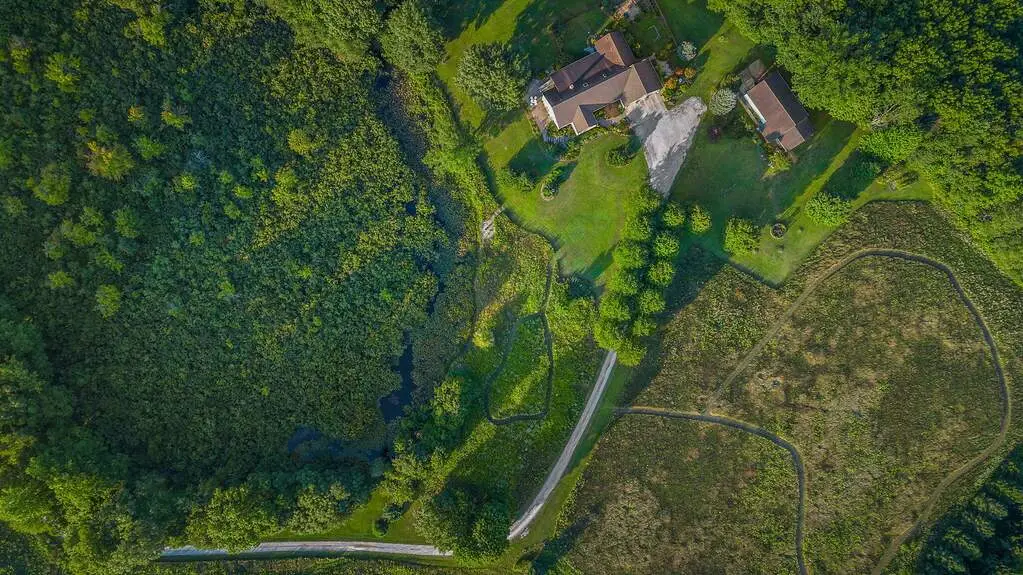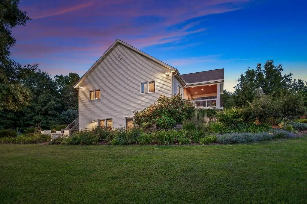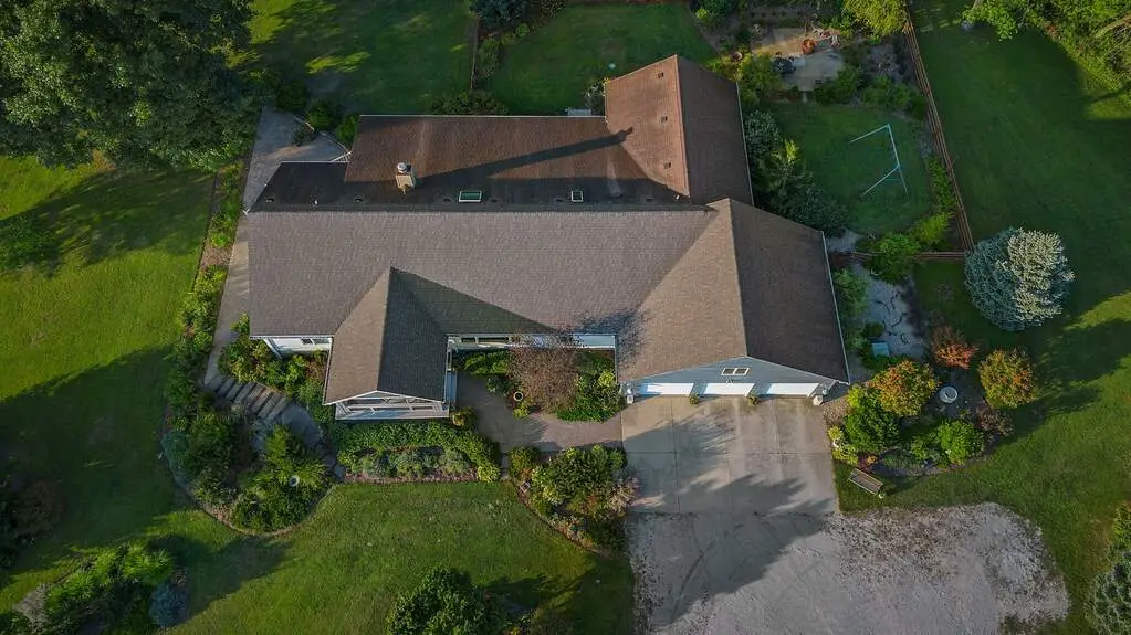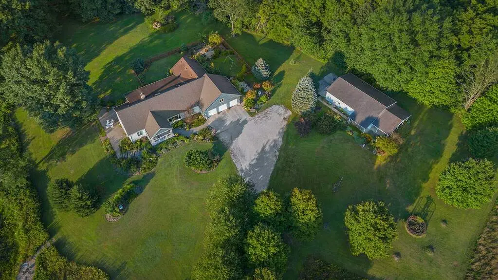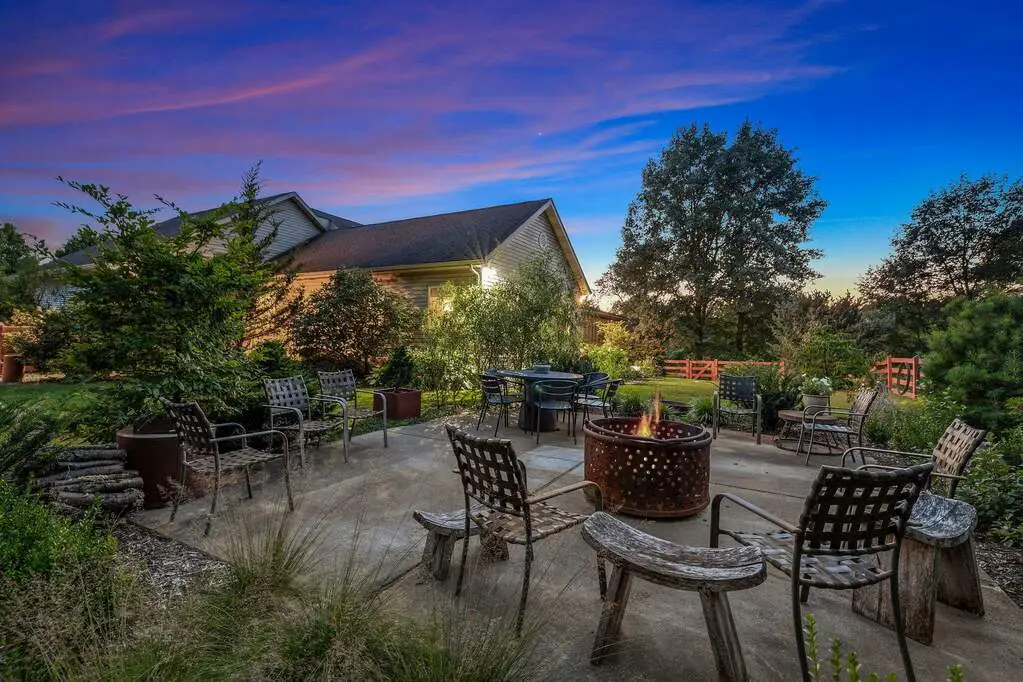 Come and experience 31 rolling acres of quiet, secluded, natural beauty and the generous, welcoming home nestled within. Barely 15 minutes away from New Buffalo, Three Oaks and Lake Michigan beaches, this property is an oasis of beautifully restored and protected land. The lovely refashioned 4,900 square foot, 5 Bedroom, 3.5 bath home provides generous rooms with the ease of main level living. A welcoming space with abundant large windows and skylights which bring light and views to every room. The Great Room with gas fireplace flows into the large attractive Chef's kitchen with quality appliances and quartz counters. The generous Primary Suite has its own wing. The 50' Screened Porch, accessed by four rooms, surrounds the entire backside of the property overlooking unique gardens and the Oak Savannah, and through which is access to a Shirley Heinze protected land trust parcel. The large lower level walk out includes a Conversation area/Library, Theatre space, Studio, and Kitchenette. The attached 3 car plus garage with floored storage above adds to the ease of living. As does the large heated 2 bay Pole Barn perched on the sledding hill, which includes a workshop, storage room, and one of the covered porches. The seamless access between home and land continues throughout the property. Patios, porches, fire pits, and benches are placed for gathering, eating and relaxing. Each with its own views and mood. Each allowing for true immersion into the uniqueness of nature. As are the groomed walking paths which wind through the oaks, the meadows and the gardens. Wildlife abounds as do the changing skies and sights and scents. This is a property that just must be seen to appreciate and experience. Authentic, livable and in its glory.