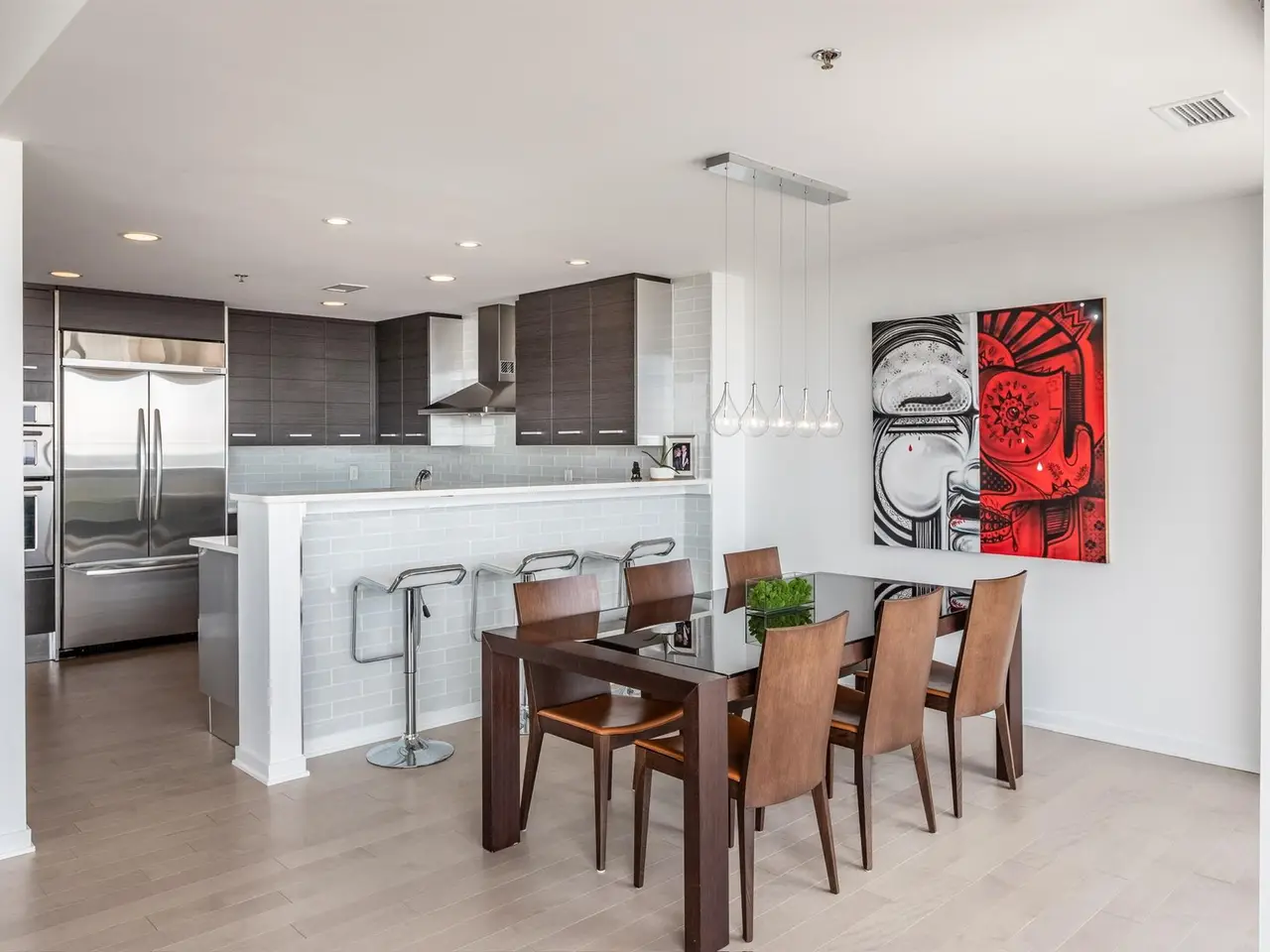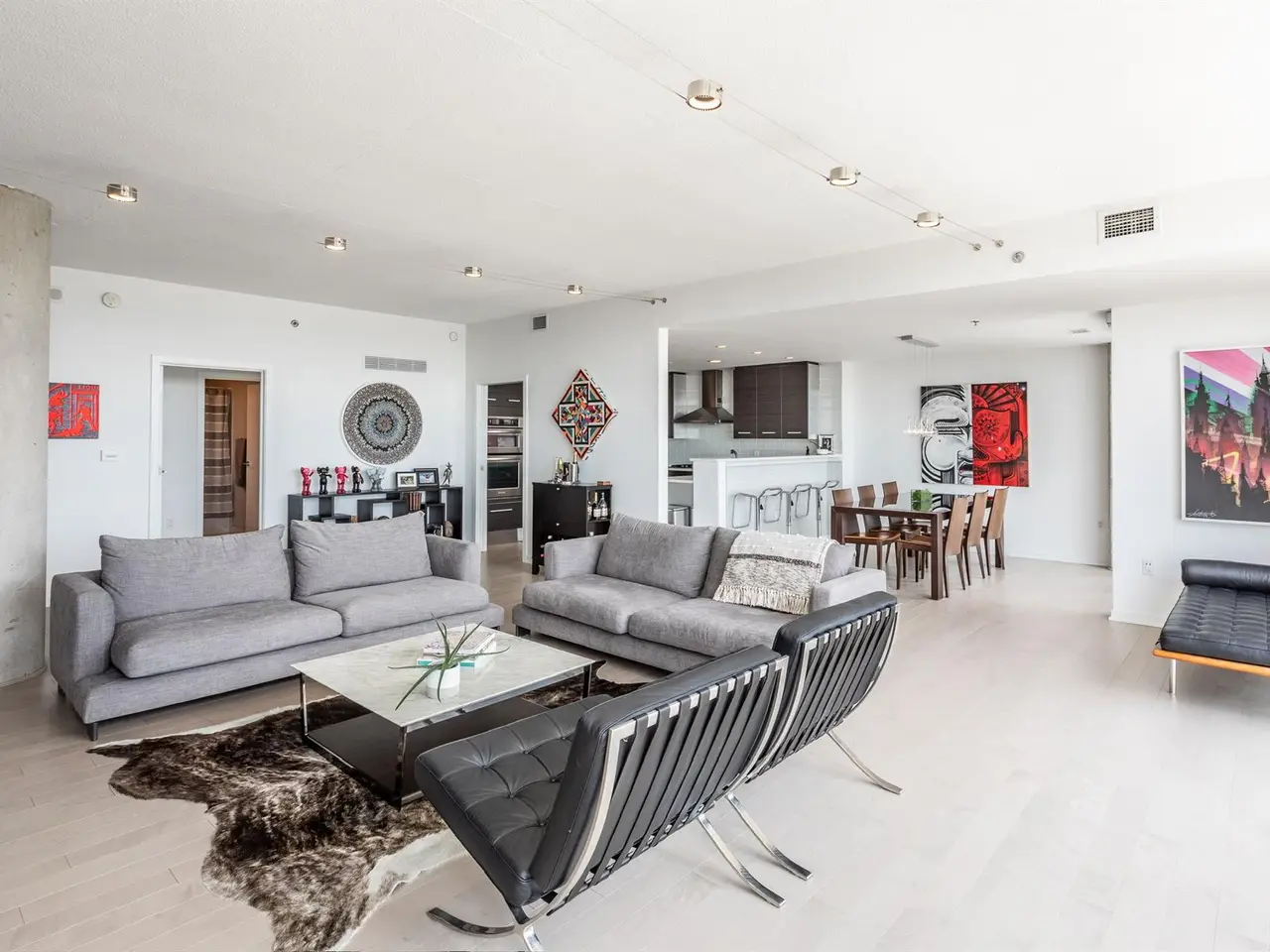 Experience the epitome of luxury at The Fifth! This updated, Penthouse embodies sophistication with its expansive open layout and private balconies, providing an unparalleled vantage point for breathtaking sunrises and stunning panoramic views of the metro area including the iconic Detroit Skyline. The walls of windows infuse the space with natural light, beautifully highlighting the elegant hardwood floors and lofty ceilings throughout. Designed for the culinary enthusiast, the chef's kitchen is a masterpiece, featuring custom cabinetry, quartz countertops, premium stainless steel appliances, and a convenient bar seating area. The spacious primary suite includes a generous walk-in closet and an opulent bathroom, complete with a jetted tub, steam shower, and a double sink designer floating vanity. The second bedroom suite offers a private bath, while the third bedroom provides access to the second balcony, creating a serene retreat. Embrace the pinnacle of convenience with the Crestron home automation system, managing your blinds, lighting, temperature, and music with ease. Secure, heated garage parking for two vehicles is included, and residents benefit from doorman, on-site fitness center, and an array of shops and restaurants just steps away. Live the lifestyle you deserve at The Fifth.