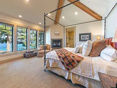 Amazing Rubicon Lakefront with a private sandy cove and one of the few houses to still have a sandy beach even during high water years. Zodiac to be included in sale for boat taxiing! SELLER FINANCING AVAILABLE AND PROPERTY TRADE OPTION available if you have something that suits seller's needs! This custom-built mountain-style lakefront lodge truly encompasses Lake Tahoe, living in a more pure and genuine capacity than measurable. A once in a lifetime opportunity. Escape from the hustle and bustle of the outside world and indulge in a gathering place that is anxiously awaiting for you to kick-back, relax, reconnect, and smell that mountain air. Feel life giving water, and get back to what's really important. Located on the awe-inspiring, iconic West Shore of Lake Tahoe, this private sanctuary truly embraces the serenity of its surroundings. Perfectly situated on a pristine white sand beach cove, protected from the elements by rock jetties at each end, you can truly indulge in the seclusion and privacy this property provides and soak in the infinite benefits of this natural paradise. Built with unparalleled craftsmanship and attention to every last detail, this custom-built mountain-style lodge offers a truly elevated living experience. Prepare to be captivated by sweeping vistas of both the lake and mountains from almost every room. Featuring four ensuite bedrooms, a lakeview den with fireplace, bunk room, family room, and a massive, jaw-droppingly stunning great room, this property was meticulously designed to create an exceptionally comfortable living space allowing for effortless entertaining all the while, providing plenty of privacy. The breathtaking foyer graced with durable walnut flooring overlooks the great room’s soaring vaulted ceilings with grandiose fir trusses and warmly embraces you with a luxurious yet leisurely feel. An exquisitely custom staircase adorned with hand-forged metal railings leads down to the well-appointed chef's kitchen, featuring stainless steel Viking appliances and elegant fixtures that overlook the crystal clear waters of Lake Tahoe. The great room is open and welcoming. Complete with a custom-built pewter bar, handcrafted in Portugal and a massive granite fireplace, this spacious yet cozy gathering place is where cherished memories are waiting to be made. Simplicity is key to lake and mountain life alike, and the Lutron lighting system that brilliantly illuminates every corner with just a touch of a button certainly helps keep things easy. Travertine in-floor hydronic heating adds to the list of the many thoughtful amenities and the custom hardware throughout adds so much character, giving this gorgeous lakefront lodge a sense of sophistication and class. Finally, retreat to the primary suite, which boasts a granite fireplace, walk-in closet, and spa-like bathroom with shower stall and soaking tub, allowing you to unwind and marvel at those captivating turquoise Tahoe waters after a long day of playing outside. Enjoying the lake is of course #1 and with 4 buoys (2 permitted) and you can have all the lake toys you've always dreamed of, accessible via your own PRIVATE white sand beach cove! Attention to every single detail offers as much heartwarming comfortability as it does extravagance. It's Tahoe, it's family, it's friends, it's captivating, it's magical and it's absolutely priceless. Property is part of the optional Rubicon Tahoe Owner's (RTO-South Beach) HOA. The HOA provides beach access, shared pier, buoy rentals, water sport equipment storage (i.e., paddleboards and kayaks), and a volleyball court.