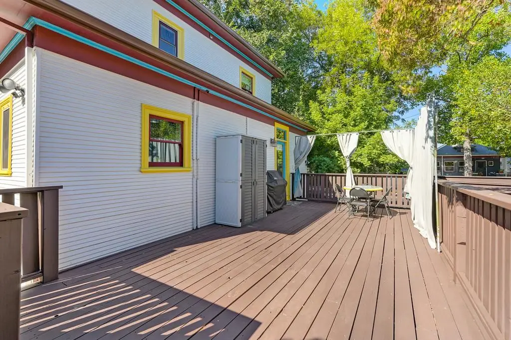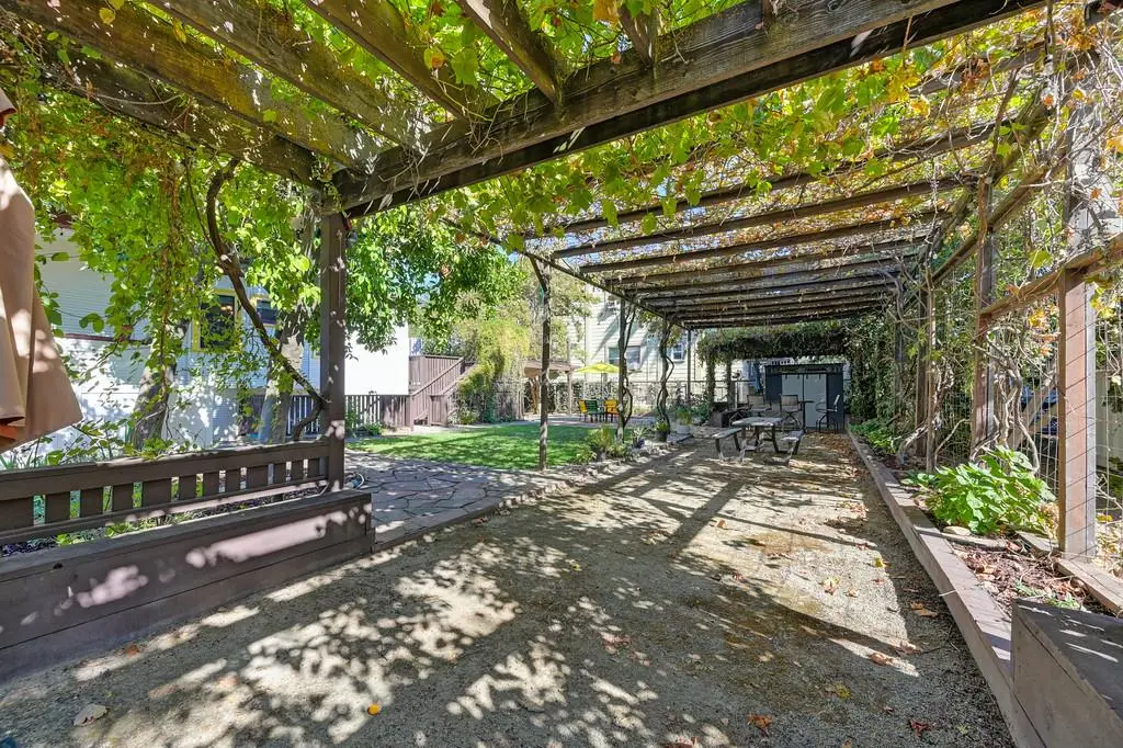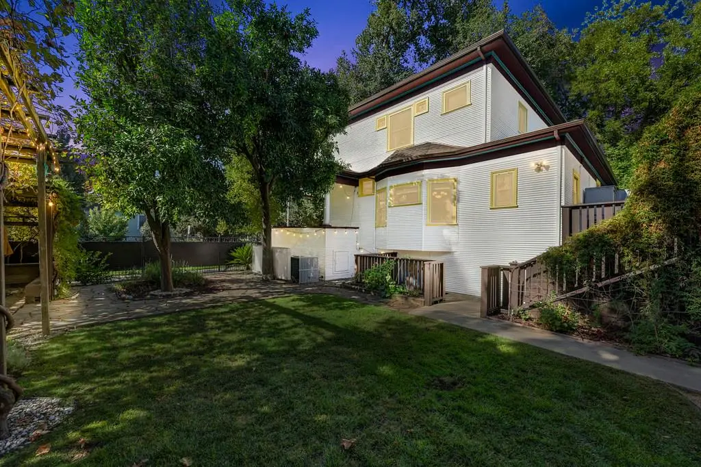 Gorgeous 1912 craftsman home in Mansion Flats w/ period details on huge corner lot updated for modern living. Gracious entry w/ wrap-around porch leads to an open floor plan w/ cove ceilings, Bradbury wallpaper, timeless wainscoting and original wood floors. The front parlor w/ corner window seat opens to a den w/ cozy gas stove and bay window. The formal dining room has wood clad beamed ceilings w/ service window into a stylish chef's kitchen w/ quartz counters, stainless steel appliances, gas range and abundant storage. Off the kitchen is an enormous deck for social gatherings. A grand stairway leads upstairs to the main bedroom w/ remodeled en-suite bath and walk in shower. Two guest bedrooms share an updated guest bath including dual vanity and claw foot tub under stained glass windows. The remodeled lower level provides a large in-law suite w/ private entry. The large side yard is a park-like setting w/ driveway and pedestrian gates, custom iron fence, storage shed, mature orange trees, raised planter bed, flagstone patio and bocce ball court under a grape vine covered pergola. Energy updates include custom dual pane windows, two zone HVAC, and a tankless water heater. Centrally located w/ walking distance to light rail, parks, shopping, restaurants and entertainment.