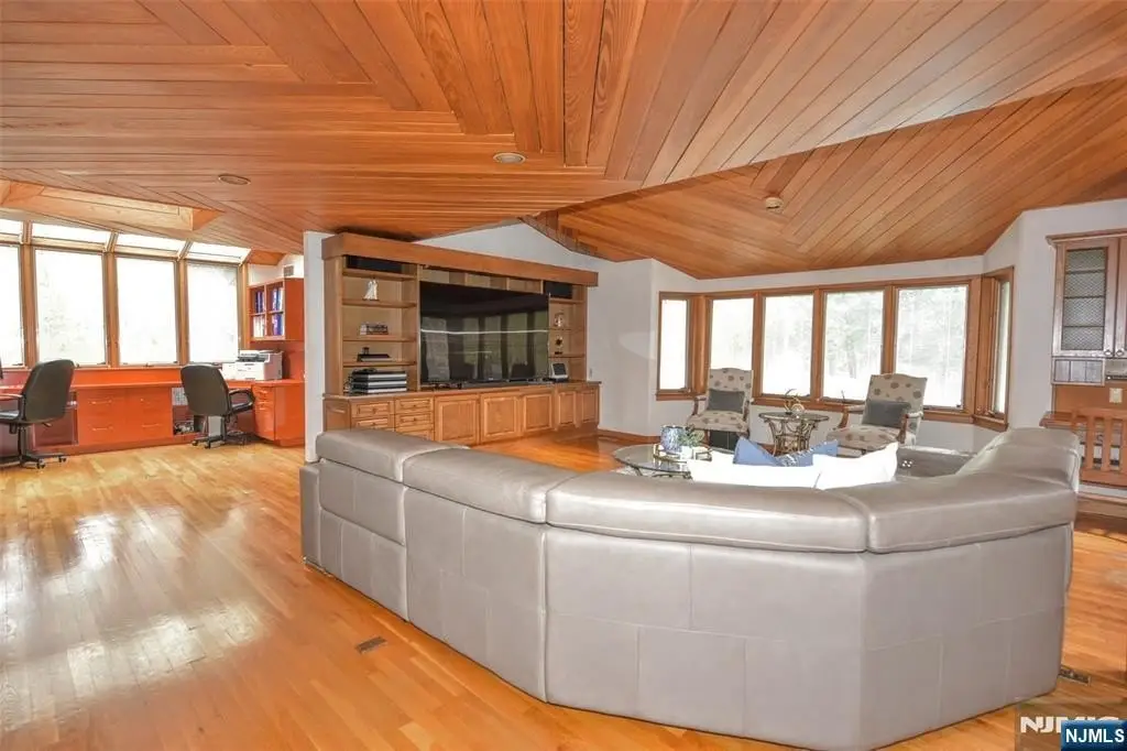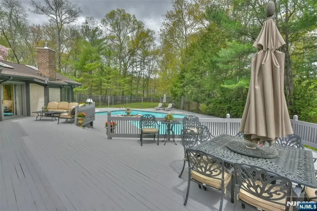 Exceptional opportunity to own in prestigious Saddle River on a quiet cul-de-sac. Traditional spacious bright layout with open concept kitchen and family room. 1 fireplace & 2 wood burning stoves. Grandfathered tennis court and pool could not be duplicated today. Generous size rooms throughout including spa room, office and guest bedroom and bath. Second floor contains primary suite, radiant heat plus 3 generous bedrooms with built-ins. Full finished basement, lots of storage and a professionally designed wine cellar. Whole house generator. Pristine grounds w/ fire pit, stone patio, extensive decking and ingrd sprinklers. 4 car garage with electric car charger and ample additional parking. Don't miss this rare gem!