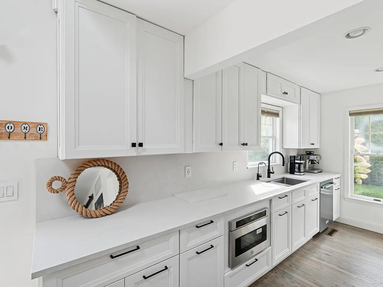 Spend your downtime in style at this beautifully renovated 4-bedroom, 3-bathroom modern home located in the sought-after waterfront enclave of Bay Point. Just moments from Foster Memorial Beach and only 1.5 miles from Sag Harbor Village, this residence offers the perfect balance of contemporary comfort and timeless Hamptons charm. Enter a sunlit open concept living space featuring soaring cathedral ceilings and skylights that bathe the interior in natural light. The gourmet kitchen is a chef's dream, outfitted with premium stainless-steel appliances-including a Bertazzoni range-white quartz countertops, a farmhouse sink, and elegant grey, beige, and white finishes throughout. The main-level primary suite boasts its own private entrance and sliding barn doors for added privacy. Upstairs, two guest bedrooms share a stylishly appointed full bathroom with upscale finishes and raindrop showerheads. The fully finished lower level is ideal for entertaining, offering a spacious media lounge, a wet bar, a fourth bedroom, and an additional full bath with a glass walk-in shower and designer tilework. Outdoors, enjoy your own private oasis with a beautifully landscaped yard, a 20' x 40' heated in-ground pool, an outdoor shower, and multiple areas for lounging or dining al fresco. Conveniently located near Serene Green Organic Farmstand and just minutes to the beach, this home offers tranquility, convenience, and the very best of Hamptons living-including those unforgettable west-facing sunsets just down the road. Listing ID: 926698