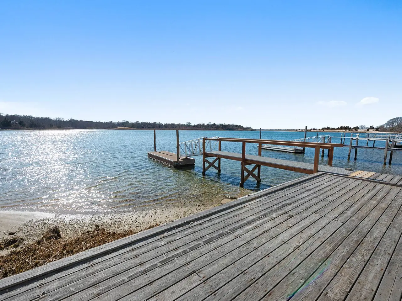 RR#: RP250273 - This chic, beachy waterfront home with dock, expanded deck and heated pool offers amazing sunsets and is ideally located on a cul-de sac. First floor features water views from all areas including open concept living room with fireplace and dining area, eat-in kitchen, den, and half-bath with washer/dryer and study. Second floor features Master bedroom suite with with water views, 2nd bedroom with water views, 3rd smaller bedroom and full bath completes the package. Enjoy amazing evening sunsets as well as full use of paddleboards. Within close proximity to Morton National Wildlife Sanctuary, Cromers Market, Long Beach, and local shopping and restaurants. Beautifully landscaped pool with surrounding bluestone tile completes this lovely home. Listing ID:738812