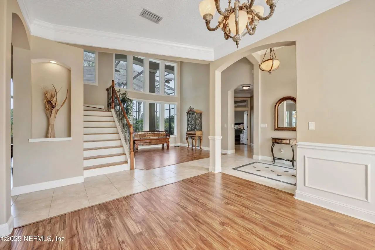 Experience refined lakefront living in this beautifully appointed estate, designed to elevate both comfort and style. Boasting 4 spacious bedrooms plus a flexible 5th room ideal for a private office, guest suite, or studio, this home effortlessly adapts to your lifestyle. Four full baths ensure a seamless experience for residents and guests alike. Inside, you'll find two expansive family rooms, a formal living space, and a generous dining room?perfect for elegant entertaining. The gourmet kitchen is a chef's dream with extensive cabinetry, a walk-in pantry, and a built-in wine cooler. A gas fireplace adds warmth and sophistication to the main living area. The 3-car garage offers ample space for luxury vehicles, storage, or a workshop. Outside, unwind in the screened-in pool overlooking a serene lake?offering privacy and stunning views. Nestled in an established, quiet enclave with quick access to I-95, this home is a rare blend of luxury, nature, and convenience.