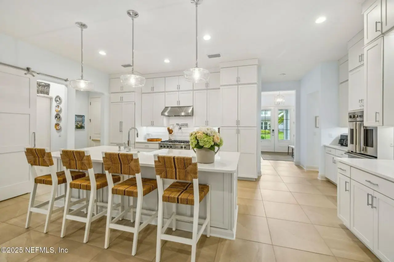 This exquisite custom home combines refined design with exceptional craftsmanship. Offering 4 spacious bedrooms and 3 full bathrooms, this home is appointed with designer tile flooring throughout and a coveted 3-car garage. The chef's kitchen is a showstopper, featuring some professional-grade Viking appliances, sleek quartz counters, custom cabinetry and a dry bar w/ quartz counters. Retreat to your luxurious owner's suite overlooking the backyard and a spa-like bath and oversized shower. Perfect for entertaining, the stunning screened Florida room opens to an extended paver patio with an expansive summer kitchen with grill, flat top and refrigerator, ideal for dining or entertaining while overlooking the peaceful pond. Every detail-from the luxury finishes to the thoughtfully designed open layout-creates an atmosphere of sophisticated comfort and modern elegance. Not one detail has been missed, even the laundry room is amazing. Too many upgrades to list.