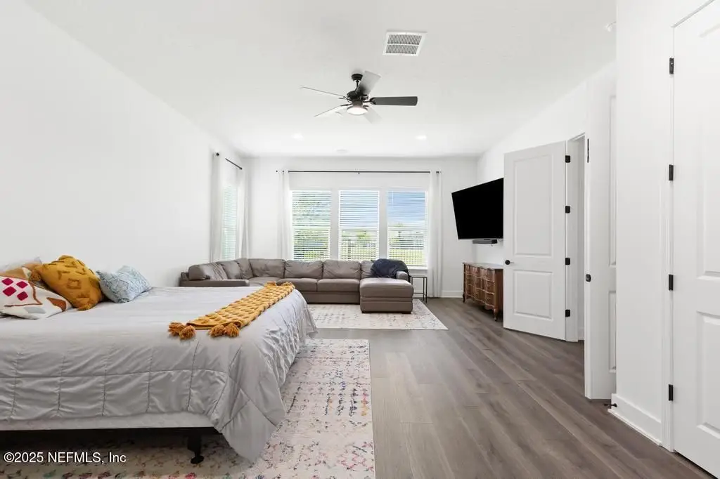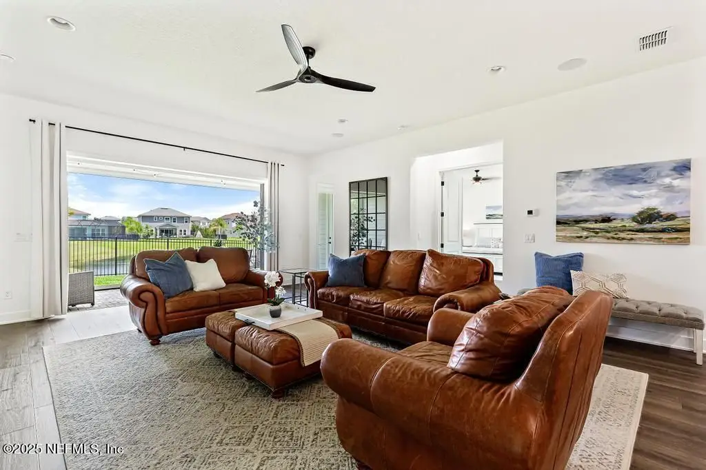 Experience the perfect balance of space, style, and function in this pristine 5 bedroom, 4.5 bath + office home. Thoughtful details include 10' ceilings, crown molding, recessed lighting, and wide plank LVP flooring throughout the main level. The gourmet kitchen is a showstopper featuring ceiling-height double-stacked cabinetry with glass fronts, soft-close drawers, double ovens, a wood range hood, and a butler's pantry with sink. The spacious family room opens through pocket sliders to a covered paver lanai with an automatic retractable screen and a fully fenced backyard overlooking the lake. The primary suite is a true retreat, complete with a sitting area, dual walk-in closets, a garden tub, upgraded dual shower heads, and direct access to the laundry room. Three of the secondary bedrooms are large enough to serve as private suites, while the fourth and fifth bedrooms provide flexibility to function as oversized bonus rooms, media rooms, or guest quarters. Bathrooms feature frameless, tile-to-ceiling showers, and window treatments and ceiling fans are found throughout the home. The flex room and primary suite have both been extended, adding valuable square footage for everyday living. Additional highlights include a soundproofed office, mudroom with built-in bench and storage, in-ceiling speakers on the main level, 5 baseboards, glass double entry doors, and upgraded landscaping with palm trees. Practical features such as a water softener, utility sink in the garage, pull-down attic stairs, and floored attic storage further enhance convenience. Curb appeal is maximized with a paver driveway and front porch.Resort-style community amenities and top-rated St. Johns County schools make this home a standout opportunity.Don't miss the virtual video!Exciting New Amenities Coming Soon!Shearwater residents will soon enjoy incredible new community features just moments away, including a state-of-the-art sports complex with 8 athletic fields (both turf and grass), a running track, and a multi-purpose field. Plans also include 8 pickleball courts, a climbing tower, skate spot, and splash pad perfect for all ages. A brand-new library and community center are also in the works, Plus, new parks and green spaces are being developed to complement Shearwater's already active and outdoor-focused lifestyle.