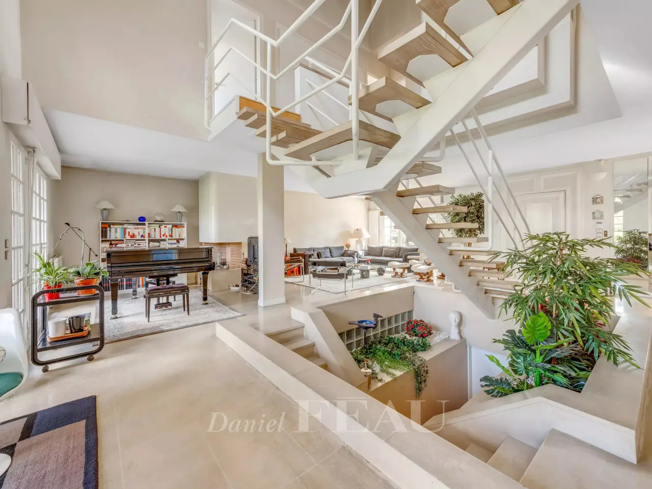 This architect-designed property set in a 689 sqm plot offers about 220 sqm of living space (not including the entresol). It includes a near 80 sqm dual-aspect living/reception room opening onto terraces and the garden, a dining room, an equipped kitchen, a utility room, a study and a guest wc. The upper floor comprises a master suite with a bathroom and dressing room, and four further bedrooms with two adjacent bathrooms. A 100 sqm entresol includes a recreation room, a boiler room and storage rooms. With a double garage. A peaceful family home near renowned international schools in Saint-Cloud’s Montretout neighbourhood a short distance west of the capital.