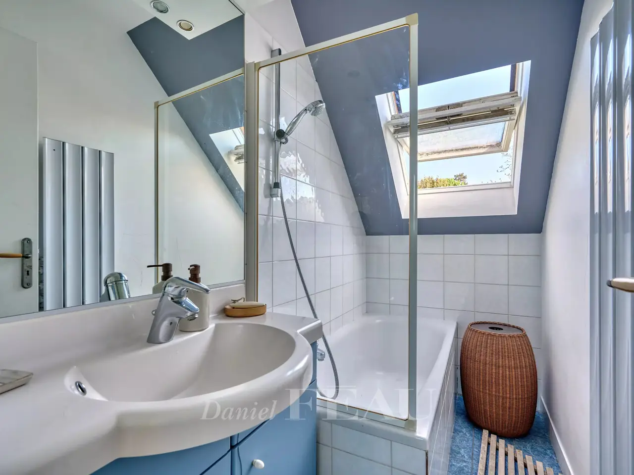 Montretout neighbourhood. This south-facing near 175 sqm property located in a peaceful neighbourhood is set in an enclosed 991 sqm plot. It includes a 50 sqm living/reception room accessing the garden, a kitchen with dining facilities, a bedroom, a bathroom and a utility room. Upstairs are four bedrooms and two bathrooms. On a basement with a garage. An ideal family home near the shops, the schools and Saint-Cloud Park.
