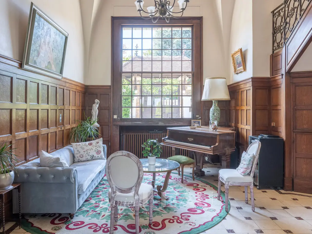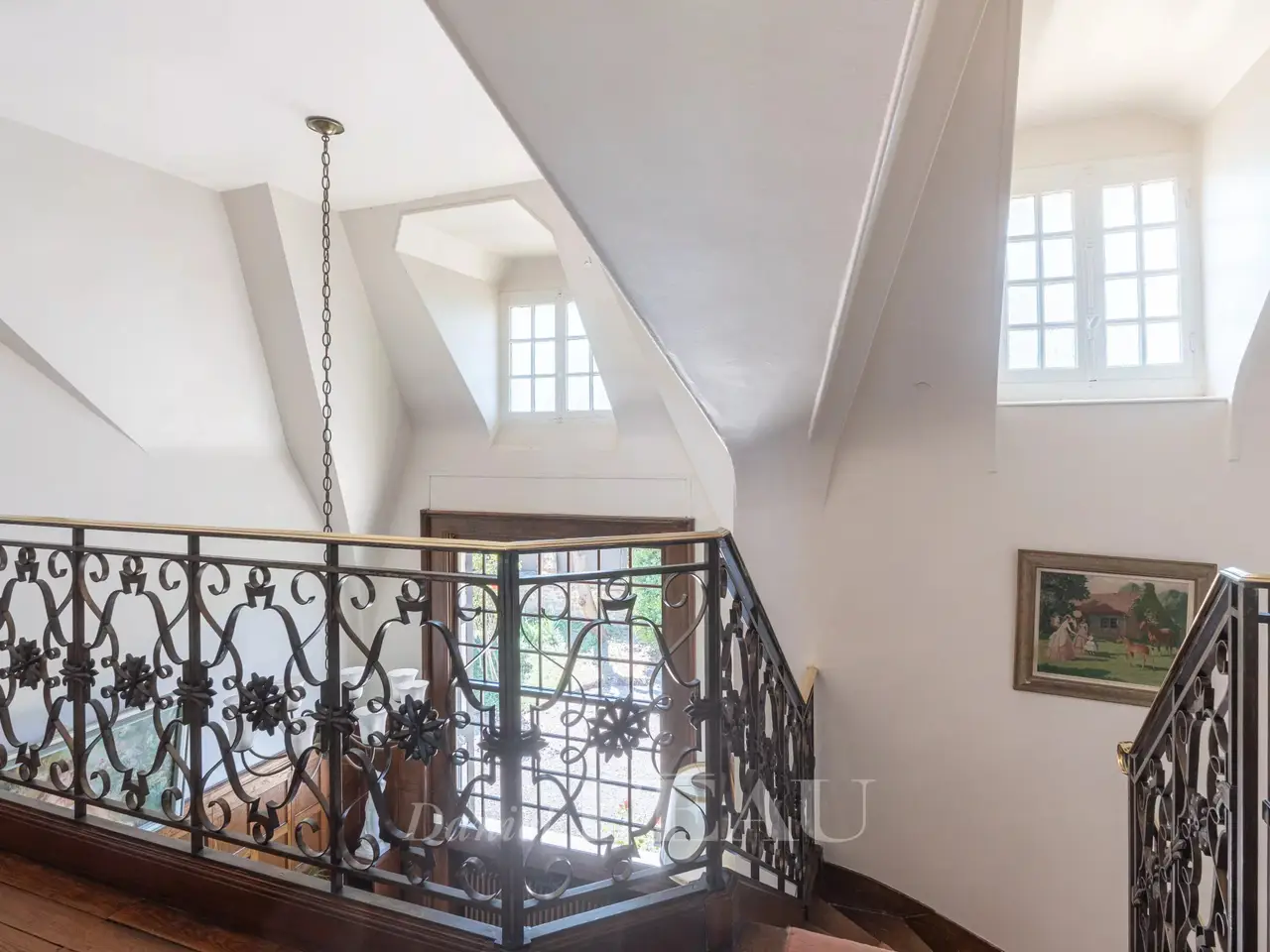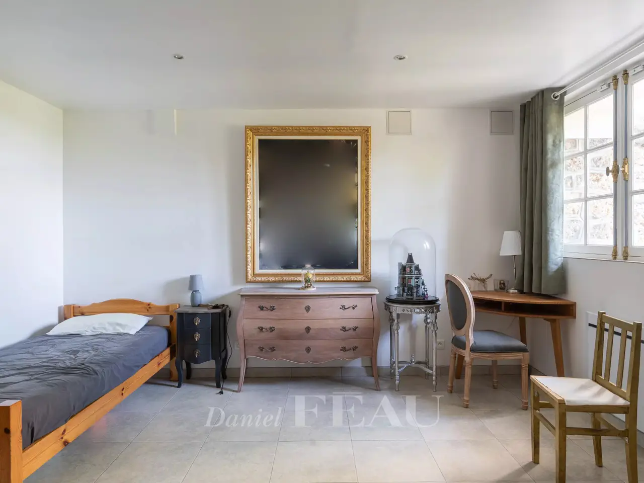 Val d’Or neighbourhood. This early 20th century Anglo-Norman style property is in one of Saint-Cloud’s most sought-after streets a stone’s throw from the station. Entirely decorated by renowned interior decorator Jules Leleu, it includes a spacious entrance hall, a triple living/reception room bathed in sunshine and overlooking the landscaped garden benefiting from an open view of the Bois de Boulogne and the Eiffel Tower, a spacious kitchen, a study, and a bedroom with a bathroom. Upstairs are three further bedrooms (two opening onto a balcony), and two bathrooms. On a basement with a self-contained 31 sqm studio apartment. With a near 100 sqm annex comprising a 3-room apartment, a 35 sqm recreation room and a double garage.