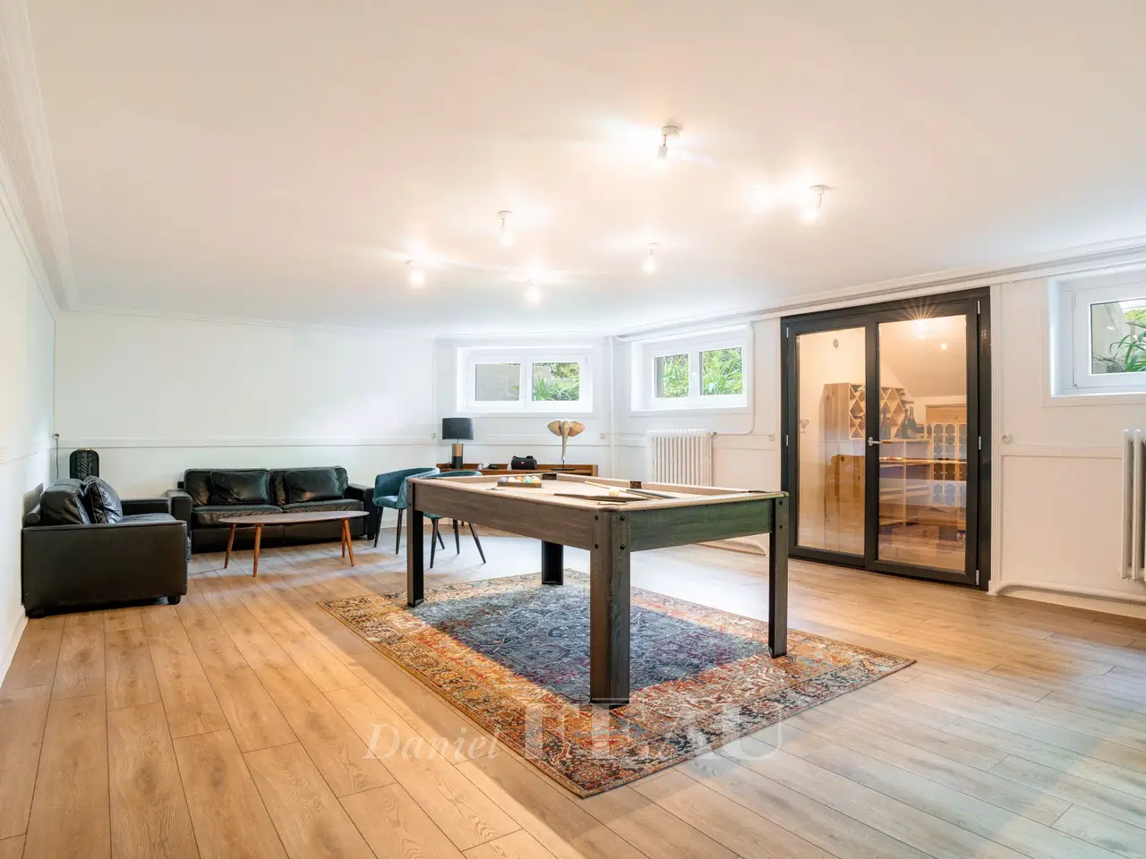 This elegant late 19th century property set in a 519 sqm plot located near Saint-Cloud Park has been recently renovated throughout allying period charm with contemporary comfort and style. It includes an entrance hall, a dual-aspect triple living/reception room with a fireplace, a dining room (all opening onto a terrace and the peaceful leafy garden), a fully equipped separate kitchen, and a utility room. Upstairs a landing leads to a reading area, two near 20 sqm bedrooms accessing a south-facing terrace, and a shower room. Two further bedrooms, a bathroom and a storage room are on the second floor. A 5th and 6th bedroom and a wc are on the top floor. The entresol comprises a recreation/fitness room and a wine cellar.