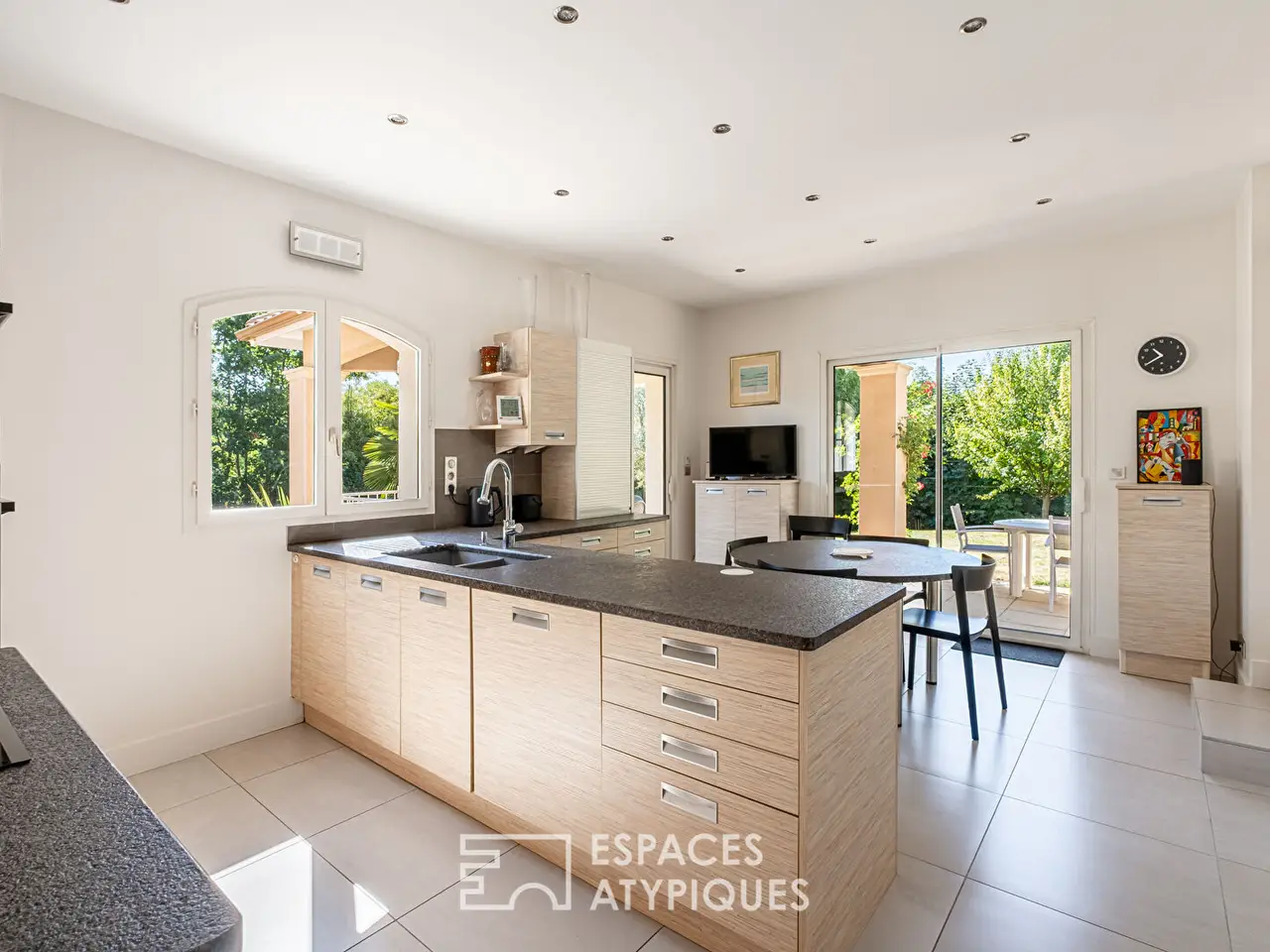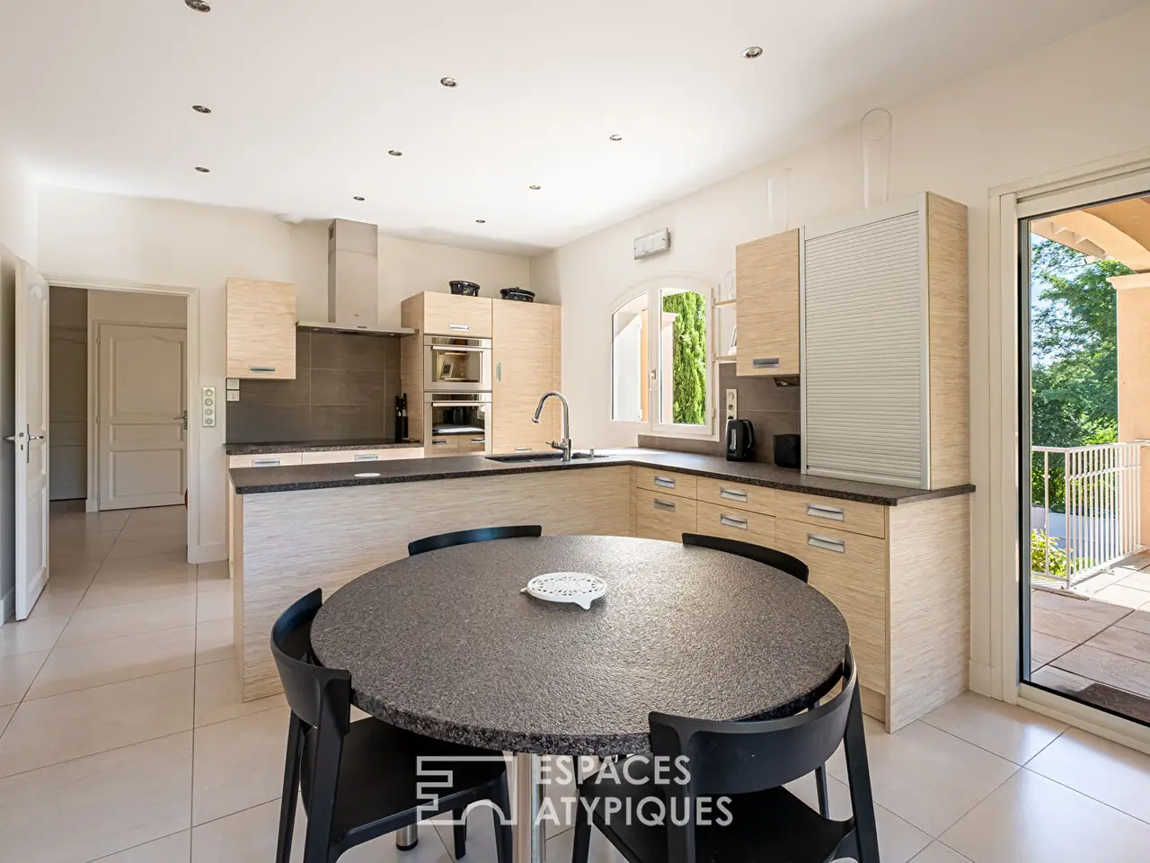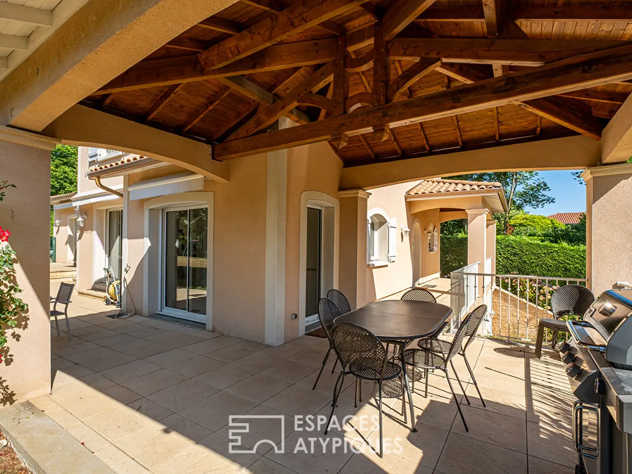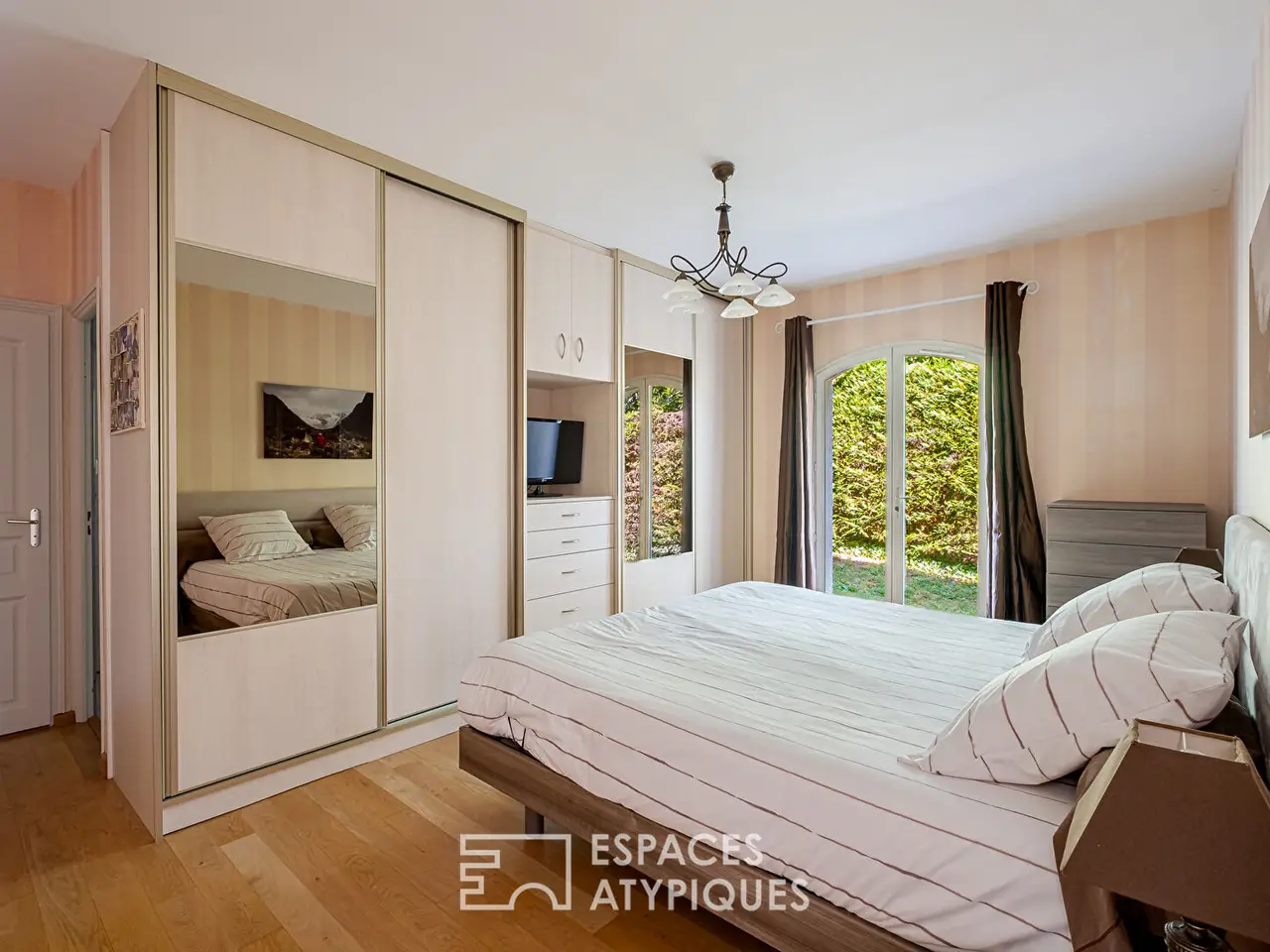 In Saint-Didier-au-Mont-d'Or, in the heart of a preserved and residential environment, this charming, fully renovated house with a swimming pool offers 240 sqm of living space on a landscaped plot of 2006 sqm, with no overlooking neighbours. The main level is organized around a hall leading to the various spaces. To the south, flooded with natural light, is a modern and spacious kitchen, extended by a dining room, an office space, and a living room with a cathedral ceiling. A master suite is also located on the ground floor. The upper floor consists of five bedrooms, sharing a shower room and a bathroom, around a large landing.On the lower level are a laundry room, a storage area, and a wine cellar. The landscaped and wooded garden, with no overlooking neighbours, is enhanced by a large salt-water swimming pool and flat areas for relaxing or letting off steam.A double garage and parking spaces complete this property. A few meters from the bus, located in a cul-de-sac and pleasantly designed, this house will delight families wishing to settle in one of the most sought-after towns in West Lyon and the Monts d'Or.ENERGY CLASS: B / CLIMATE CLASS: B Estimated average amount of annual energy expenditure for standard use, indexed to the years 2021, 2022, 2023: between EUR1,590 and EUR2,200Contact: Guillaume - 06 67 69 73 00REF. 12154Additional information* 8 rooms* 6 bedrooms* 3 bathrooms* Outdoor space : 2006 SQM* Property tax : 2 995 €Energy Performance CertificatePrimary energy consumptionb : 90 kWh/m2.yearHigh performance housing*A*90kWh/m2.year7*kg CO2/m2.yearB*C*D*E*F*GExtremely poor housing performance* Of which greenhouse gas emissionsb : 7 kg CO2/m2.yearLow CO2 emissions*A*7kg CO2/m2.yearB*C*D*E*F*GVery high CO2 emissionsEstimated average annual energy costs for standard use, indexed to specific years 2021, 2022, 2023 : between 1590 € and 2200 € Subscription IncludedAgency feesThe fees include VAT and are payable by the vendorMediatorMediation Franchise-Consommateurswww.mediation-franchise.com29 Boulevard de Courcelles 75008 ParisInformation on the risks to which this property is exposed is available on the Geohazards website : www.georisques.gouv.fr