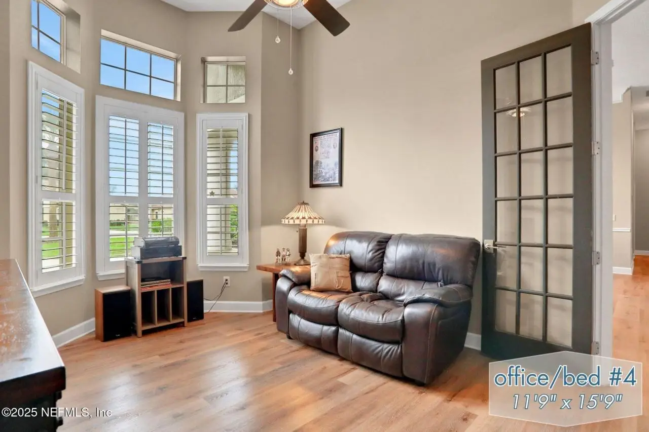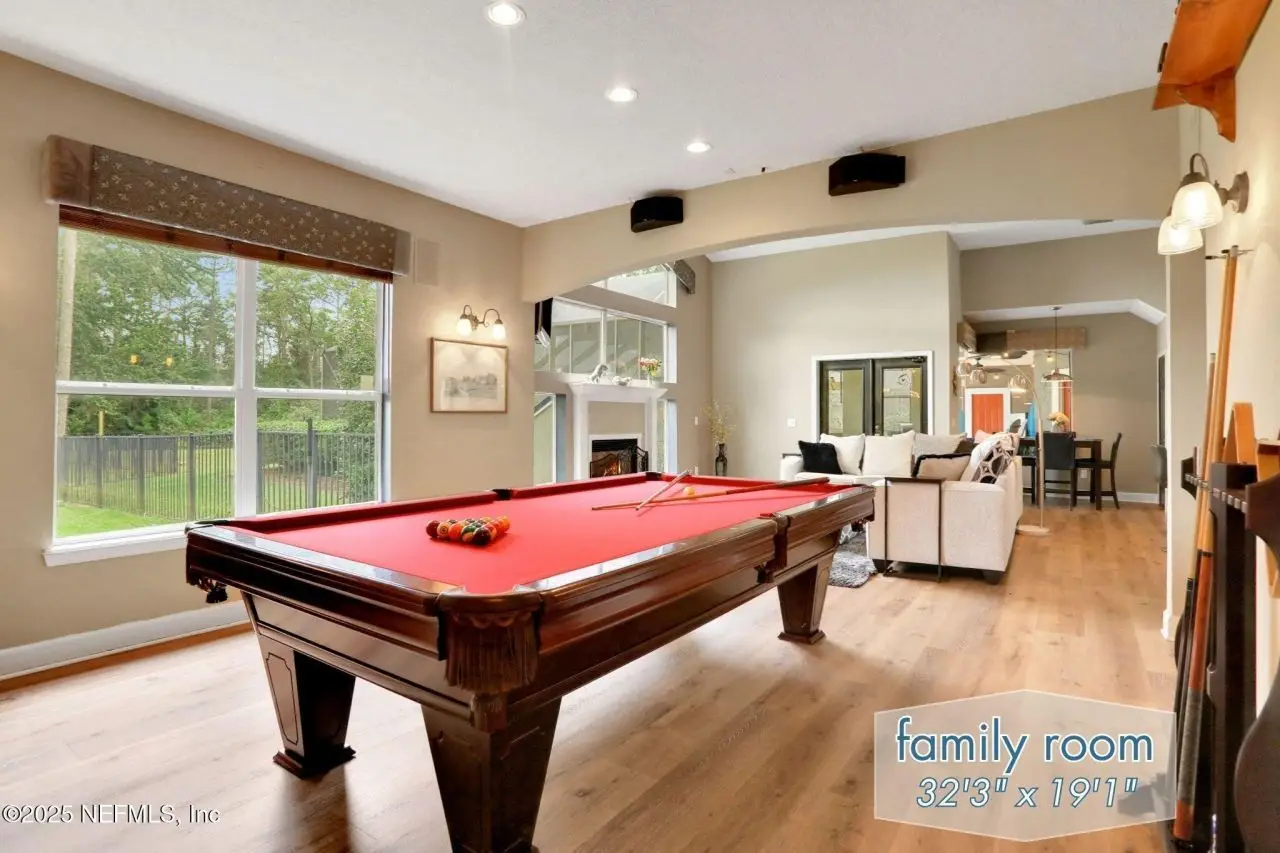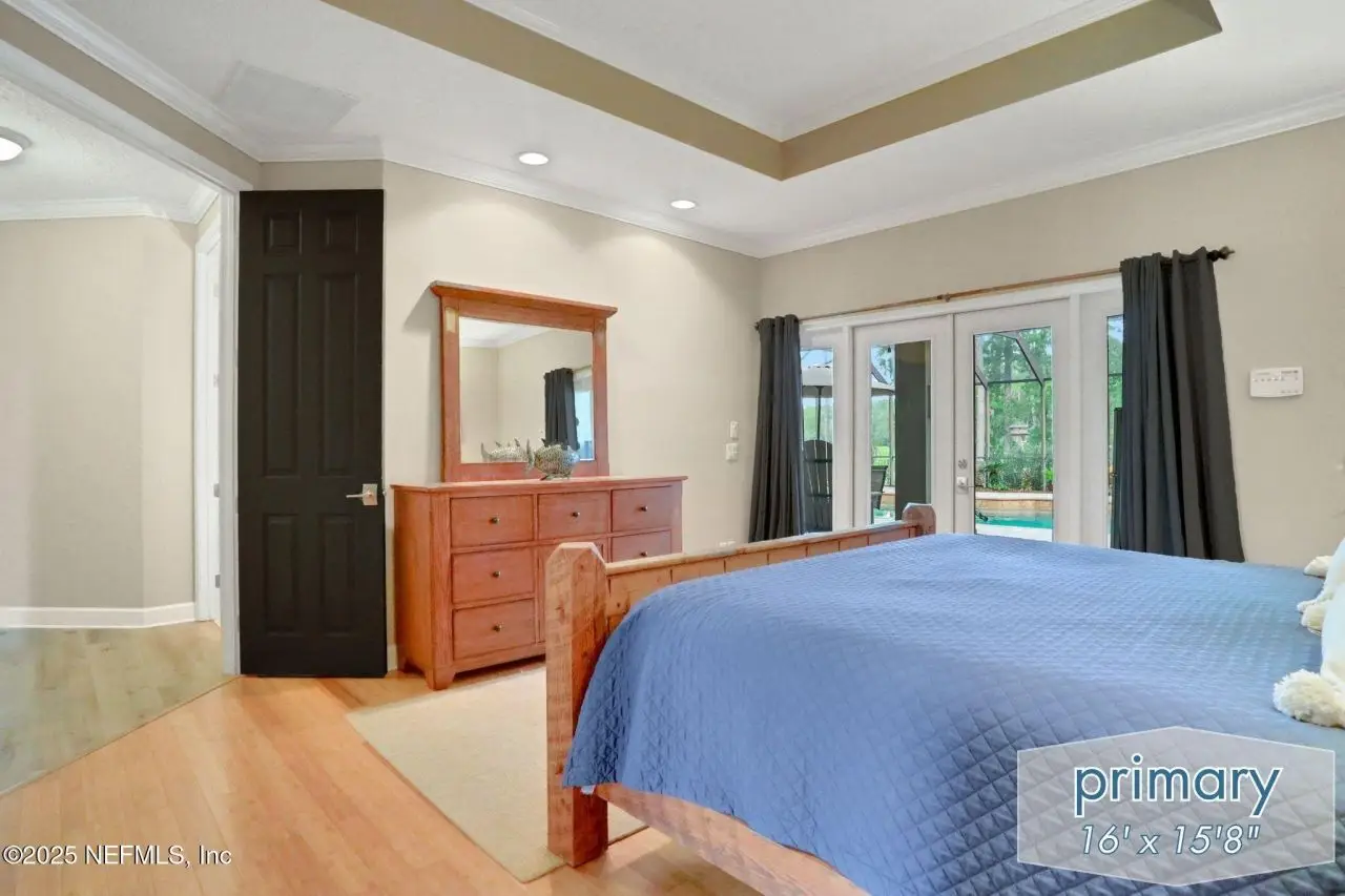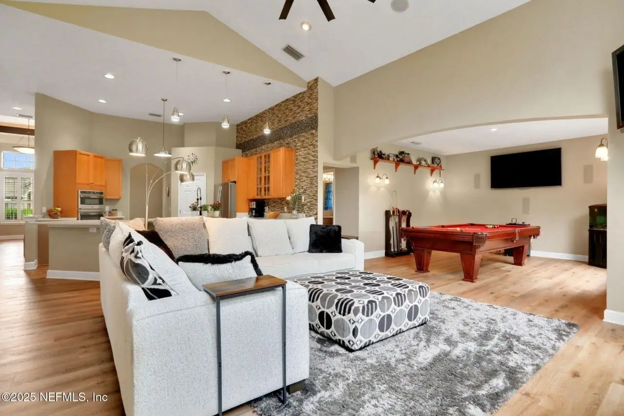 This stunning St. Johns County pool home is situated on nearly 3/4 of an acre in the desired estate-section of Cimarr?ne Golf & Country Club. This impressive residence offers a breathtaking long view of the 16th tee, lagoon and nature preserve.Leaded-glass double doors lead to the grand Entrance Hall that naturally guides you through this thoughtfully designed home. The magnificent Primary Suite commands the entire side of the home and is complete with tray ceilings, double walk-in closets, and atrium doors to the pool paradise. The oversized bath retreat has a shower, separate soaking tub, two large vanities and a water closet. Flanking the Primary is a cabana bath and one of the five bedrooms currently serving office-duty. The other side of the home has two generously sized bedrooms sharing a well-appointed 2-room bath. The grand central staircase is surrounded by two flexible bonus rooms that can easily transform into additional office or dining. The upper-level surprises with 350 sq ft of multi-generational living featuring cathedral ceilings & spectacular views. With its own bath and walk-in closet, this versatile area would also be perfect as a gym or homeschool headquarters.The heart of this home is the massive great room where soaring cathedral ceilings frame the dramatic wall of windows capturing the enchanting view. There's plenty of space to gather around the fire while others enjoy the attached Billiard Room that could be enclosed for a 6th bedroom.The open-concept flows seamlessly into the kitchen, bordered by an impressive wrap-around quartz breakfast bar with seating for six or more. The kitchen combines functionality with style, featuring natural wood cabinetry with 42-inch uppers, some with glass doors for displaying collectables. Chef's favor this kitchen with its stainless appliances, built-in ovens and an induction cooktop island. Keeping it tidy is easy with two pantry closets. The attached, glassed dining nook overlooking the pool is the perfect spot for breakfast. Speaking of the pool. The new favorite hangout awaits in the spectacular 2,100 sq ft of screened outdoor living. The heated saltwater pool features a tanning shelf and wrap-around in-pool bench. The pool and spa are surrounded by tropical landscaping and charming gas-look vintage street lanterns. The entire space is covered with unique, intricately designed multi-sized paver flooring. The major equipment including salt-cell, heater, filter, and main pump have all been updated within the past few years. The overhead screens were replaced last year. Additional highlights of this home include an oversized sunlit laundry room with convenient laundry sink, plentiful folding counters, and abundant storage. Luxury vinyl plank flooring flows through living areas and the second floor, while wood flooring graces the Primary Bedroom. Plantation shutters dress the front windows, complementing the twelve-foot ceilings and seven-foot interior doors. Double and triple crown molding, wainscoting and other unique wood trim found throughout the home. There is surround-sound both inside and out, a money-saving separate irrigation water meter, durable epoxy garage flooring, and an ongoing termite protection program. Cimarr?ne Golf & CC offers amenities that rival any resort. The spectacular Resident Clubhouse has a fitness center, double-sized pool with separate lap section along with a splash-park feature for the kiddos. Expansive recreation includes tennis, pickleball &