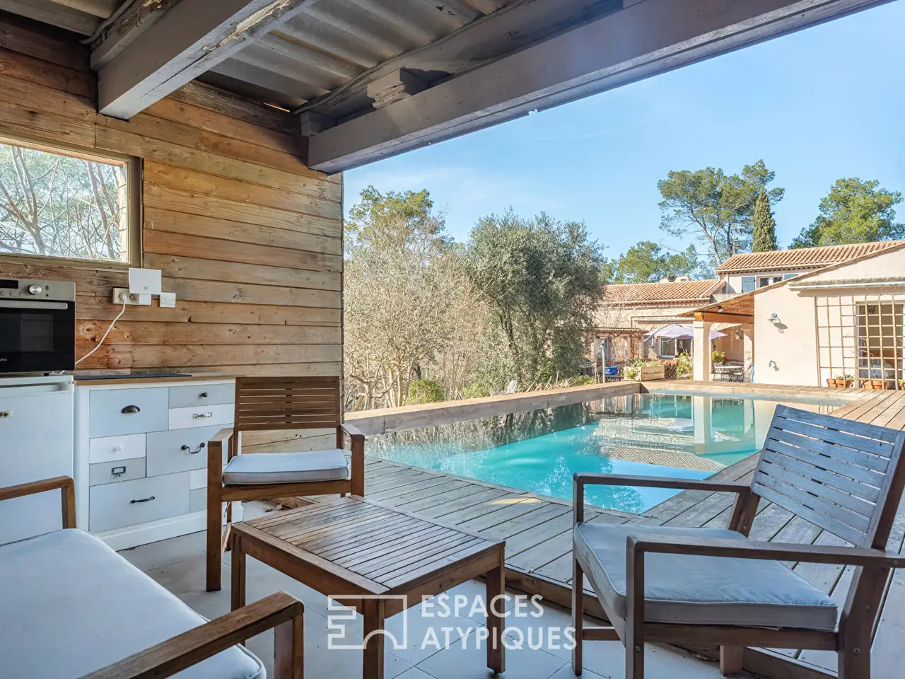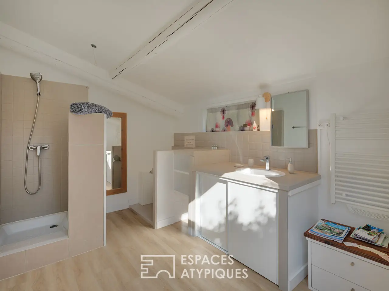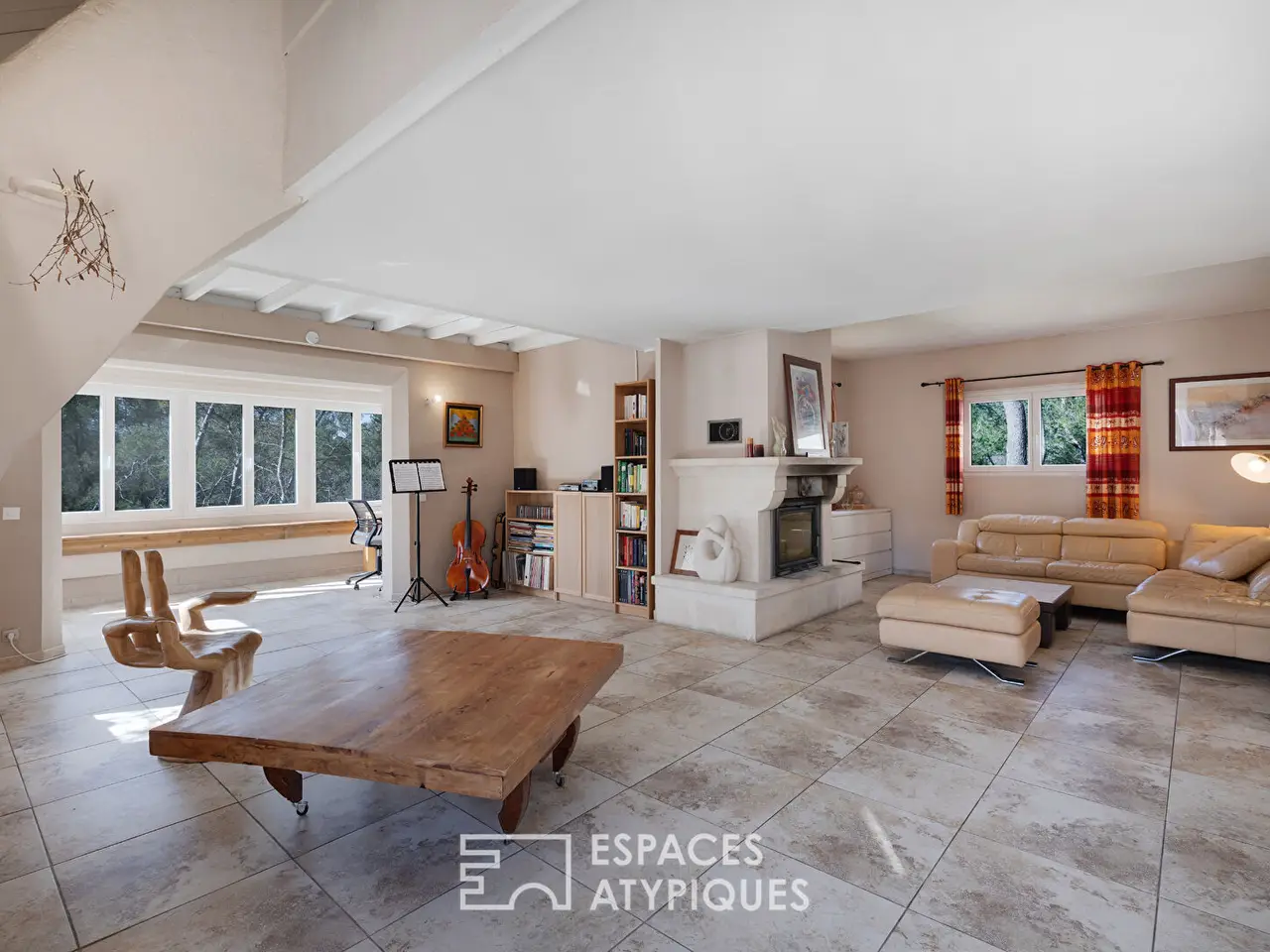 Gites and guest rooms in a green setting Nestled in the heart of a peaceful and green environment, this architect-designed house from the 70s seduces with its unique character, its generous volumes and its enchanting setting. Built on a vast plot of 5,000 sqm, it has approximately 282 sqm of living space, divided between a main house and an independent apartment, ideal for receiving family and friends or for a seasonal rental project. As soon as you arrive, the charm operates thanks to a harmonious and functional design. The entrance hall opens onto a spacious living room bathed in light, offering nearly 80 sqm of reception space decorated with an insert fireplace. The American kitchen, fully fitted and equipped, extends into a laundry room with direct access to the carport, combining comfort and practicality. This level also accommodates a separate shower room with toilet as well as three en suite bedrooms, with refined decoration, two of which benefit from independent access via the terrace, to receive in complete privacy. Upstairs, an elegant library leads to a sumptuous 63 sqm master bedroom including a dressing room, a bathroom with shower and bathtub, a toilet, a private terrace as well as two additional rooms, in a row, to be converted into a bedroom or office. The garden level houses an independent 57 sqm apartment, composed of a living room with open kitchen, two bedrooms, a shower room with toilet and a laundry room. The exterior, in perfect harmony with its natural environment, invites relaxation and serenity. An 80 sqm terrace leads to a wooden solarium, where an elegant mosaic masonry swimming pool (9×4 m) and its pool house are integrated. An isolated wooden shed completes this wellness area. The garden, carefully maintained and decorated with medicinal species and fruit trees, provides a soothing and authentic atmosphere. This property is distinguished by its unique architecture, its vast volumes and its multiple possibilities. A true haven of peace, in a calm and bucolic environment, this property is the ideal place for a main residence, secondary residence or a tourist project. ENERGY CLASS: C (175kWh/m2/year) / CLIMATE CLASS: A (5 kg CO2/m2/year) Estimated average amount of annual energy expenditure for standard use, established from 2021 energy prices: between EUR2,950 and EUR4,040 REF. 11274 Additional information * 8 rooms * 6 bedrooms * 3 bathrooms * 4 shower rooms * Outdoor space : 5002 SQM * Parking : 4 parking spaces * Property tax : 3 854 € Energy Performance Certificate Primary energy consumption c : 175 kWh/m2.year High performance housing