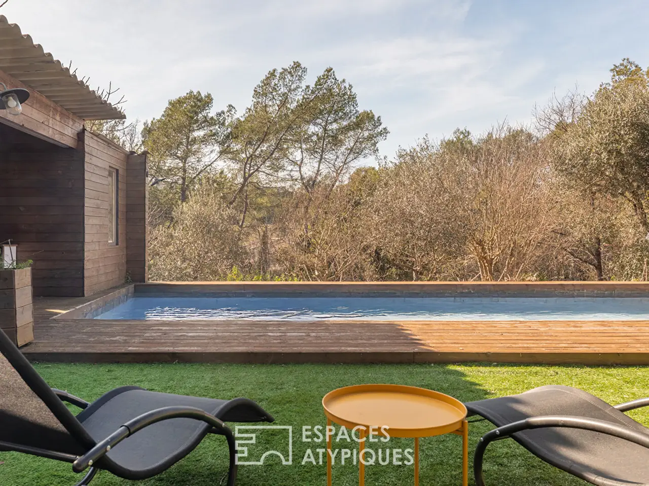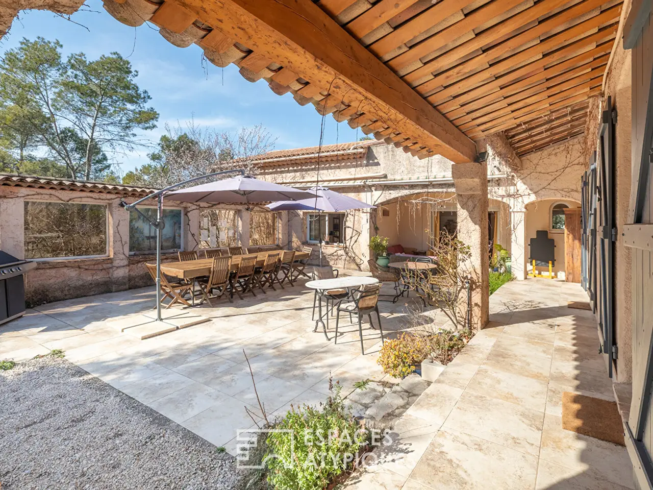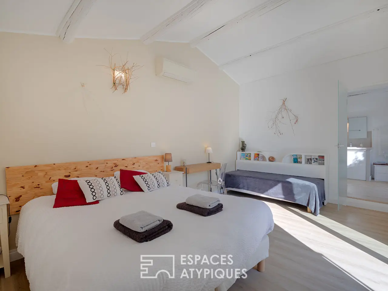 Gites and guest rooms in a green setting Nestled in the heart of a peaceful and green environment, this architect-designed house from the 70s seduces with its unique character, its generous volumes and its enchanting setting. Built on a vast plot of 5,000 sqm, it has approximately 282 sqm of living space, divided between a main house and an independent apartment, ideal for receiving family and friends or for a seasonal rental project. As soon as you arrive, the charm operates thanks to a harmonious and functional design. The entrance hall opens onto a spacious living room bathed in light, offering nearly 80 sqm of reception space decorated with an insert fireplace. The American kitchen, fully fitted and equipped, extends into a laundry room with direct access to the carport, combining comfort and practicality. This level also accommodates a separate shower room with toilet as well as three en suite bedrooms, with refined decoration, two of which benefit from independent access via the terrace, to receive in complete privacy. Upstairs, an elegant library leads to a sumptuous 63 sqm master bedroom including a dressing room, a bathroom with shower and bathtub, a toilet, a private terrace as well as two additional rooms, in a row, to be converted into a bedroom or office. The garden level houses an independent 57 sqm apartment, composed of a living room with open kitchen, two bedrooms, a shower room with toilet and a laundry room. The exterior, in perfect harmony with its natural environment, invites relaxation and serenity. An 80 sqm terrace leads to a wooden solarium, where an elegant mosaic masonry swimming pool (9×4 m) and its pool house are integrated. An isolated wooden shed completes this wellness area. The garden, carefully maintained and decorated with medicinal species and fruit trees, provides a soothing and authentic atmosphere. This property is distinguished by its unique architecture, its vast volumes and its multiple possibilities. A true haven of peace, in a calm and bucolic environment, this property is the ideal place for a main residence, secondary residence or a tourist project. ENERGY CLASS: C (175kWh/m2/year) / CLIMATE CLASS: A (5 kg CO2/m2/year) Estimated average amount of annual energy expenditure for standard use, established from 2021 energy prices: between EUR2,950 and EUR4,040 REF. 11274 Additional information * 8 rooms * 6 bedrooms * 3 bathrooms * 4 shower rooms * Outdoor space : 5002 SQM * Parking : 4 parking spaces * Property tax : 3 854 € Energy Performance Certificate Primary energy consumption c : 175 kWh/m2.year High performance housing
